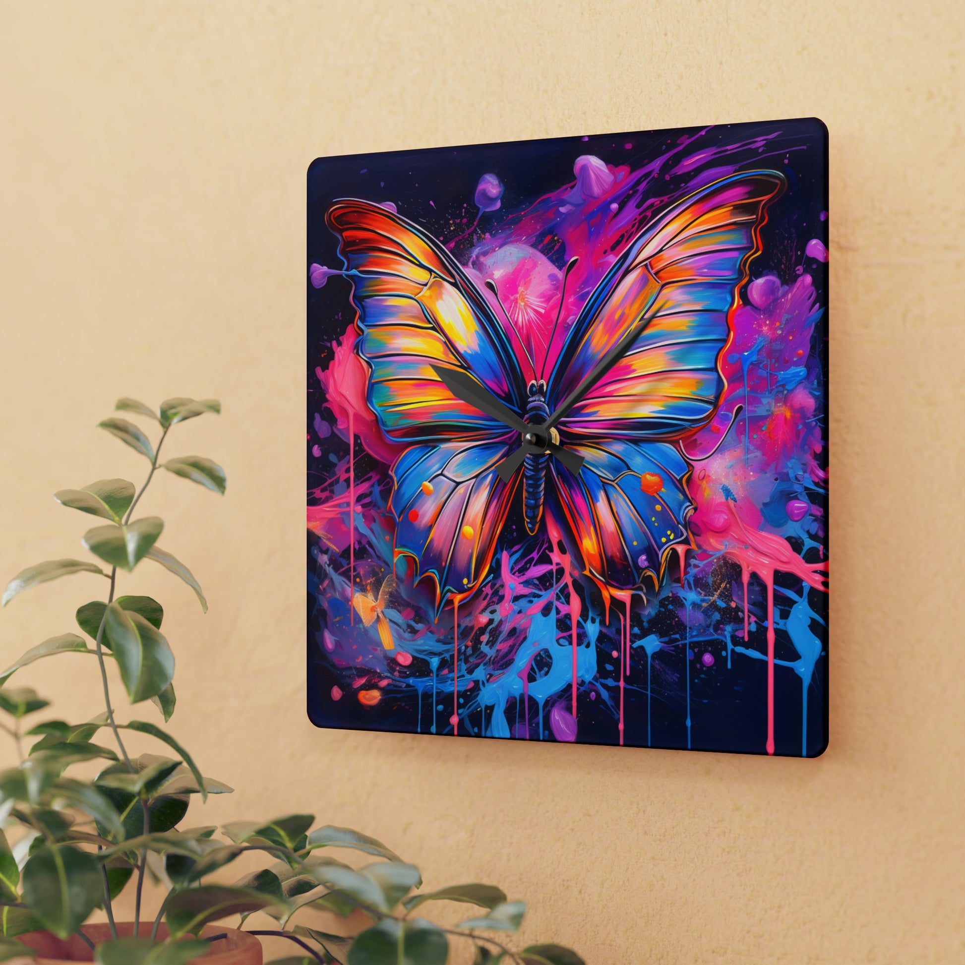 Acrylic Wall Clock Pink Butterfly Flair 3
