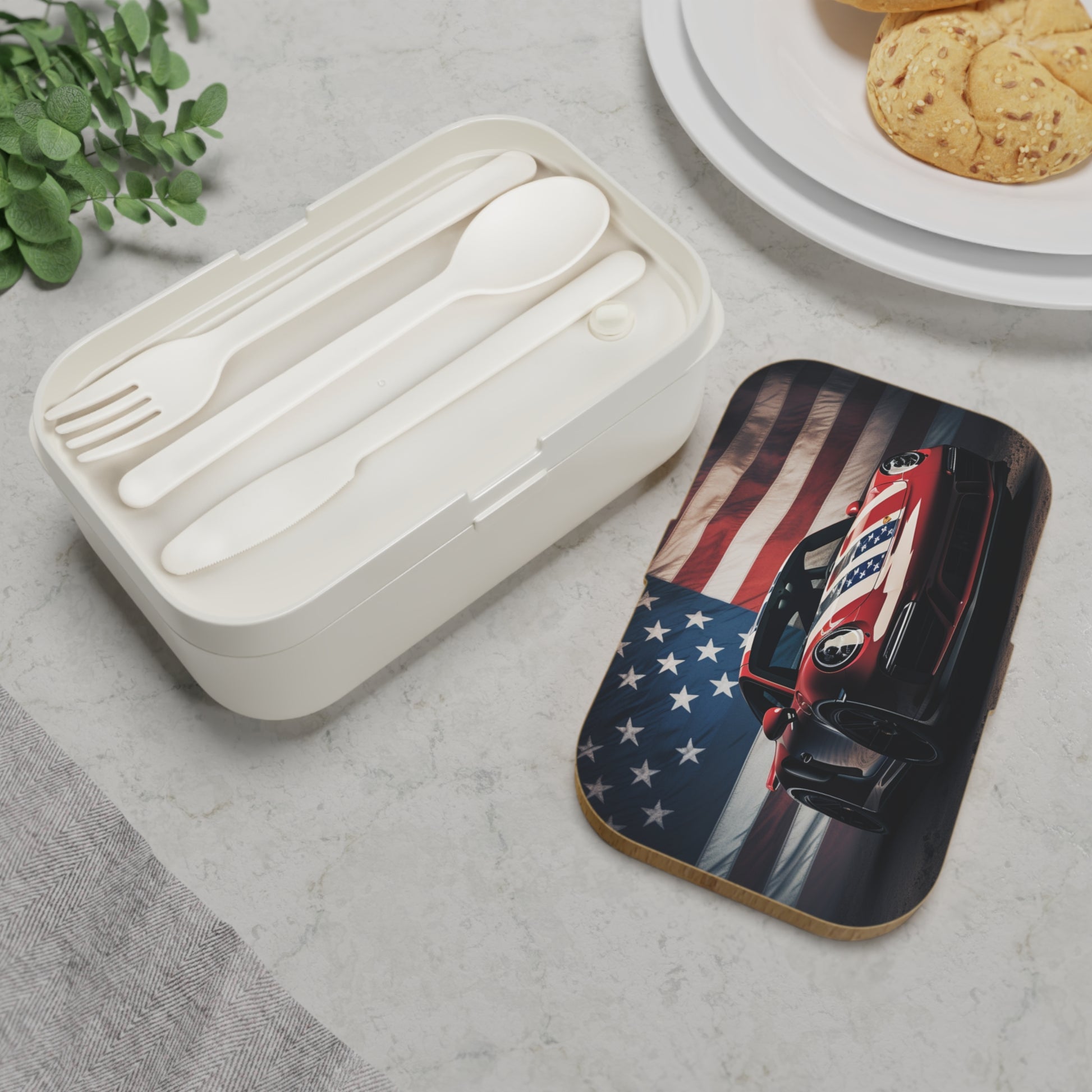 This stylish American Flag Background Porsche 3 Bento Lunchbox is perfect for taking meals on the go! The triple-layer design packs lunch essentials like sandwiches and sides in one convenient container. Made of durable, food-safe plastic, it's as handy as it is fashionable. #bentobox #lunchbox #foodstorage #bentolunch #lunchonthego #porsche #americanflag #mealprepping #convenientcontainer #durableplastic #foodsafe #portablesnack