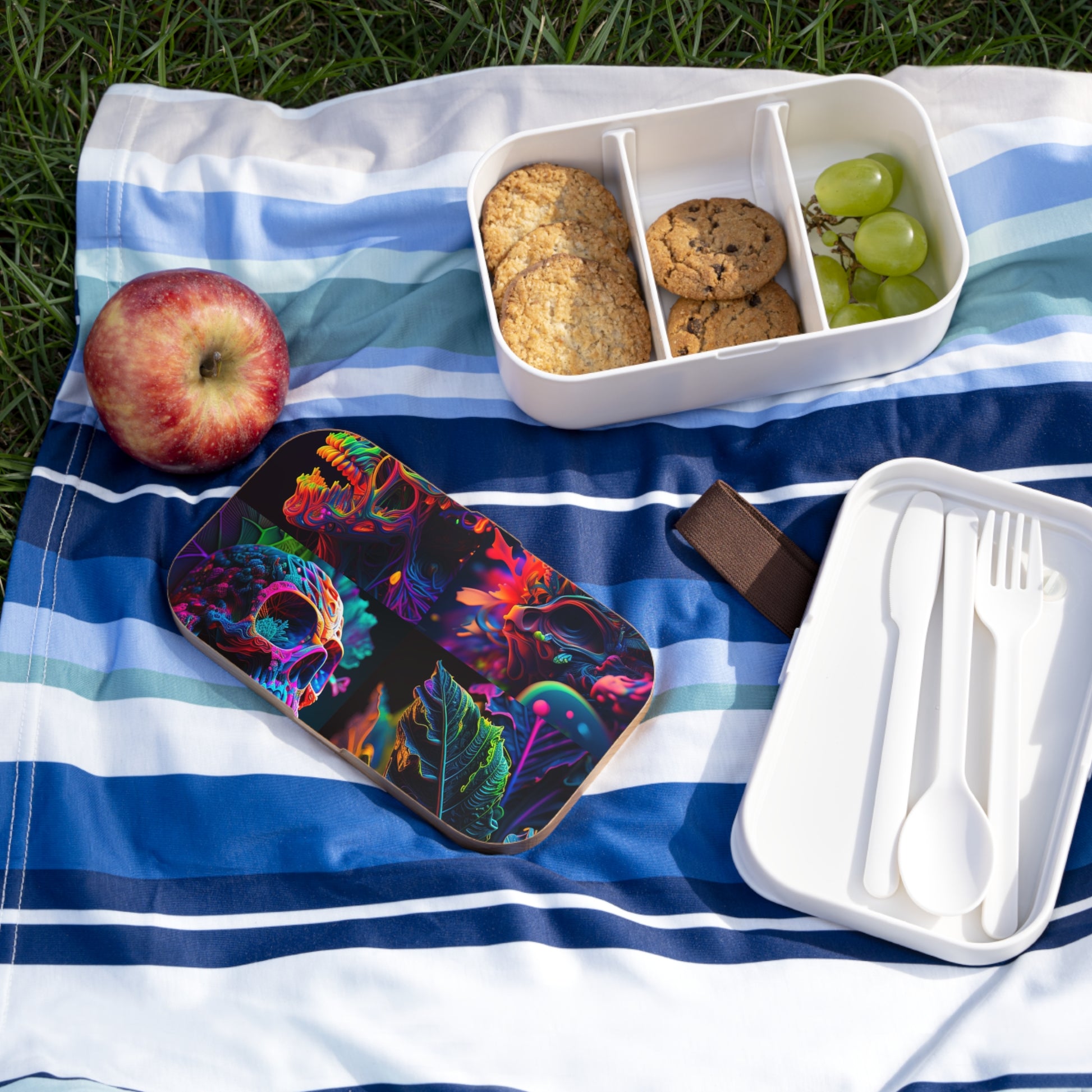 Our brightly colored Florescent Skull Death 5 Bento Lunch Box is perfect for both kids and adults who want to upgrade their lunch game. The bamboo shoot-style case offers extra compartments for snacks and utensils. The leak-proof and built-in food trays make it easy to carry and store food in a fresh and organized way. With Florescent Skull Death 5 you’ll be sure your lunch will remain safe and stylish! #BentoBox #FlorescentSkullDeath5 #LunchBox #Compartments #Snacks #Utensils #LeakProof #OrganizedLunch #Stylish #Safe #MealPreparation #KitchenAccessories