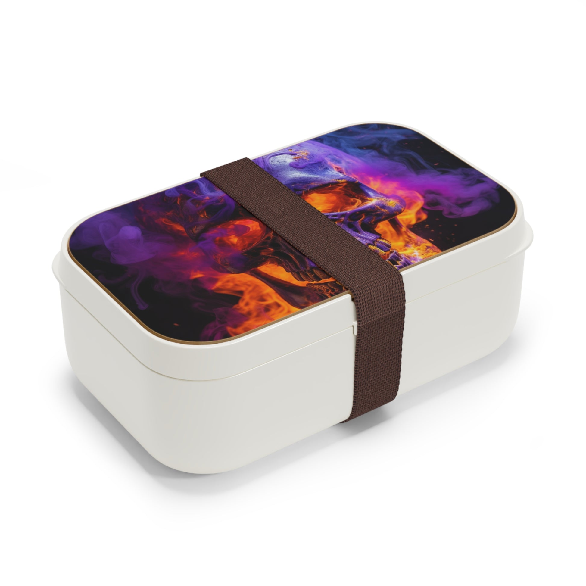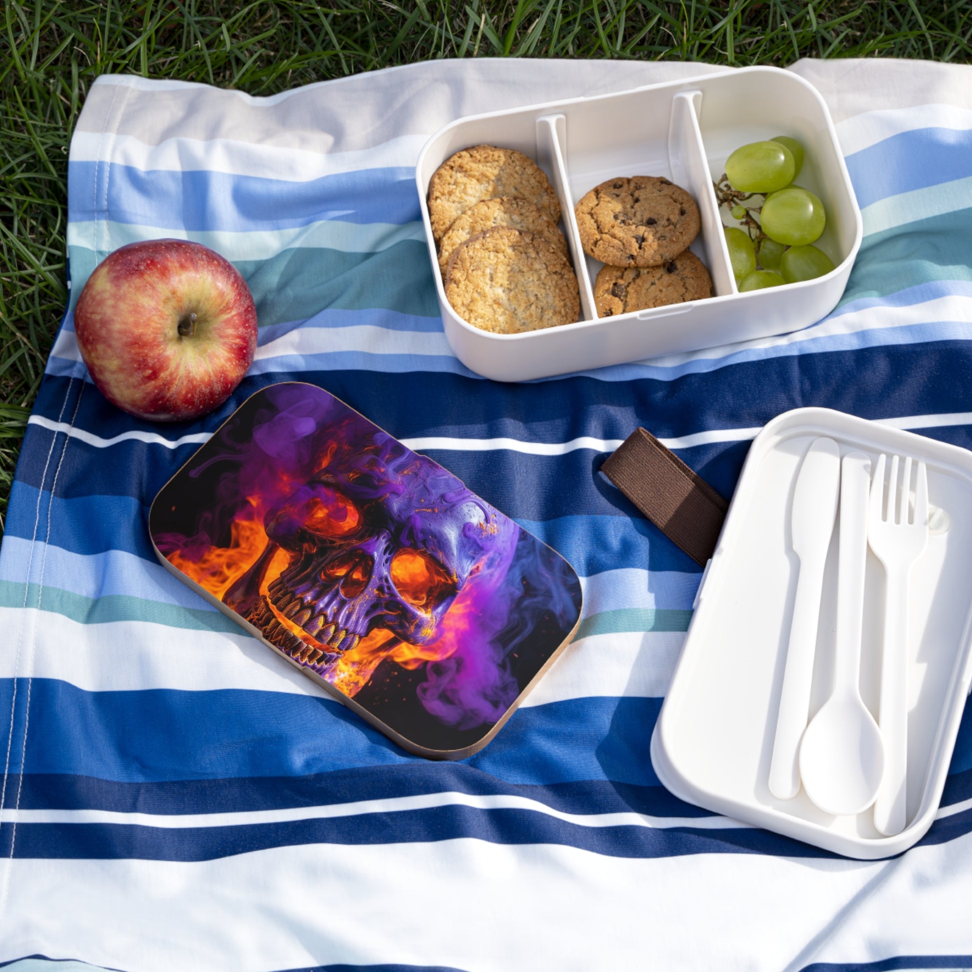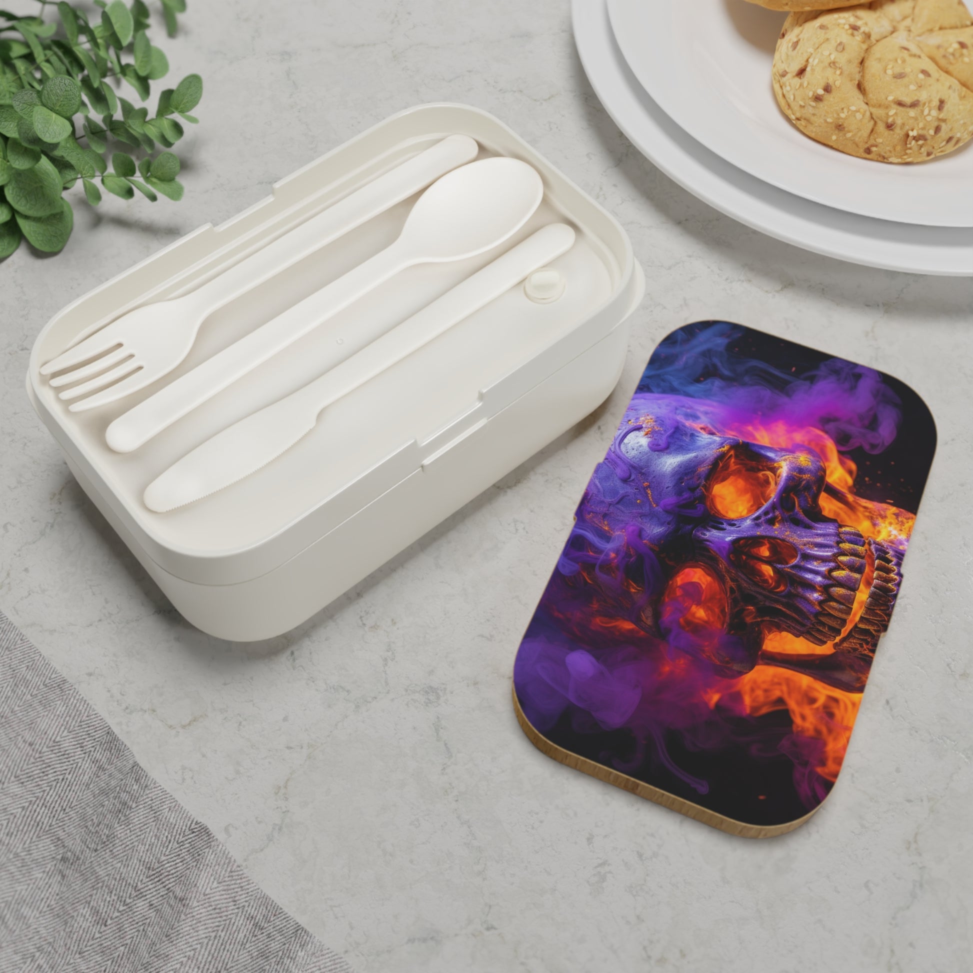 This Bento Lunch Box, Macro Skull 1, will make your meal look ghoulishly good! Made from high-grade stainless steel and plastic, it's perfect for bringing your lunch with you anywhere. It's also easy to clean so you can enjoy your lunch without worrying about mess. #bentobox #lunchbox #mealplanning #stainlesssteel #lunchprep #portability #ecofriendly #durability #leakproof #dishwashersafe #lunchtime