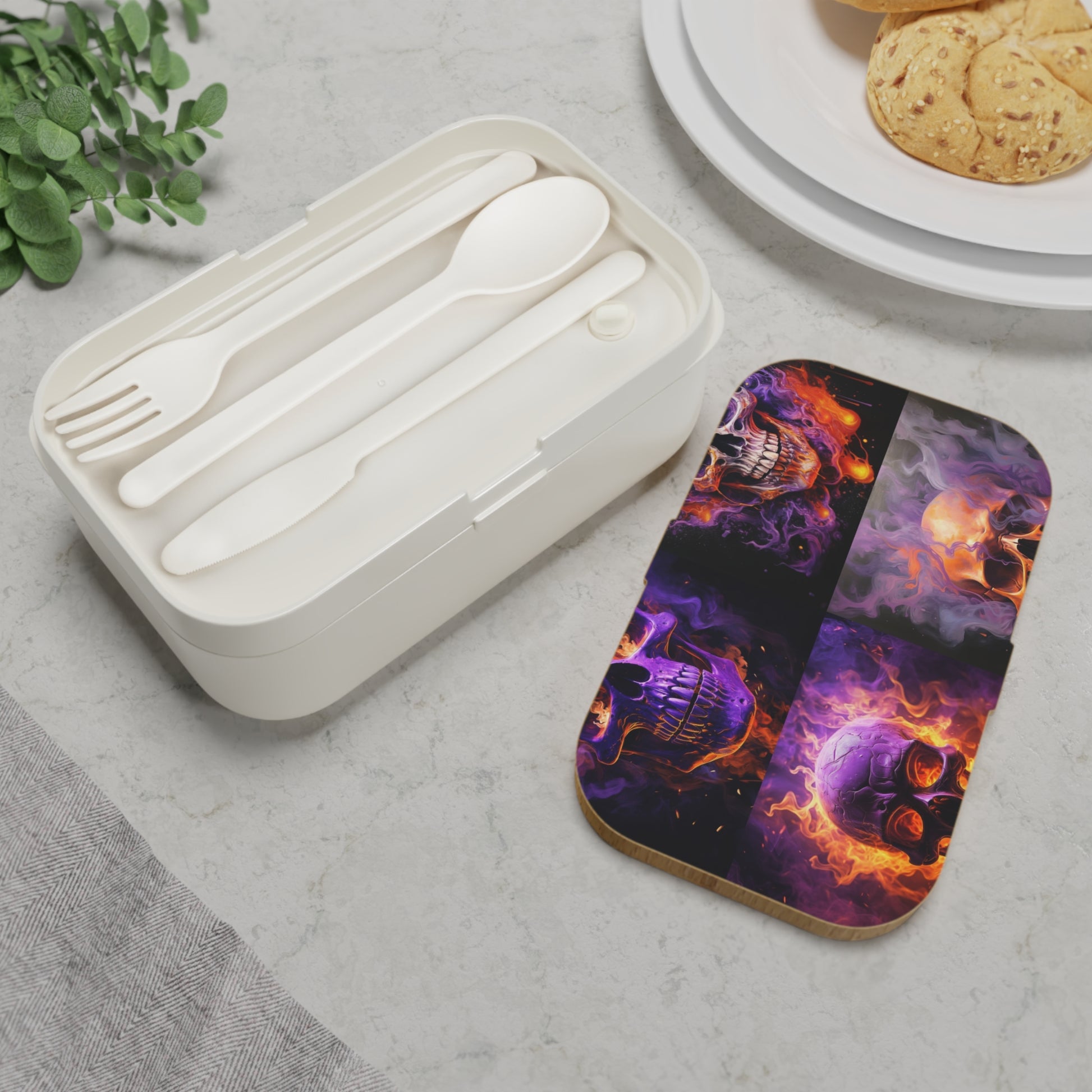 The beautifully designed Skull Flames 5 Bento Lunch Box allows you to carry your meals in style. This lunchbox has an insulated interior with two leak-proof durable dividers and an easy-to-use clasp for superior sealing. It’s made of BPA free material and comes in a vibrant black and red color. Perfect for taking your meals to school, office, or anywhere else. #bento #lunchbox #portableseating #durableeviction #foodonthego #blackandred #skullflames #BPAfree #insulation #sealing #leakproof #mealtimemadness