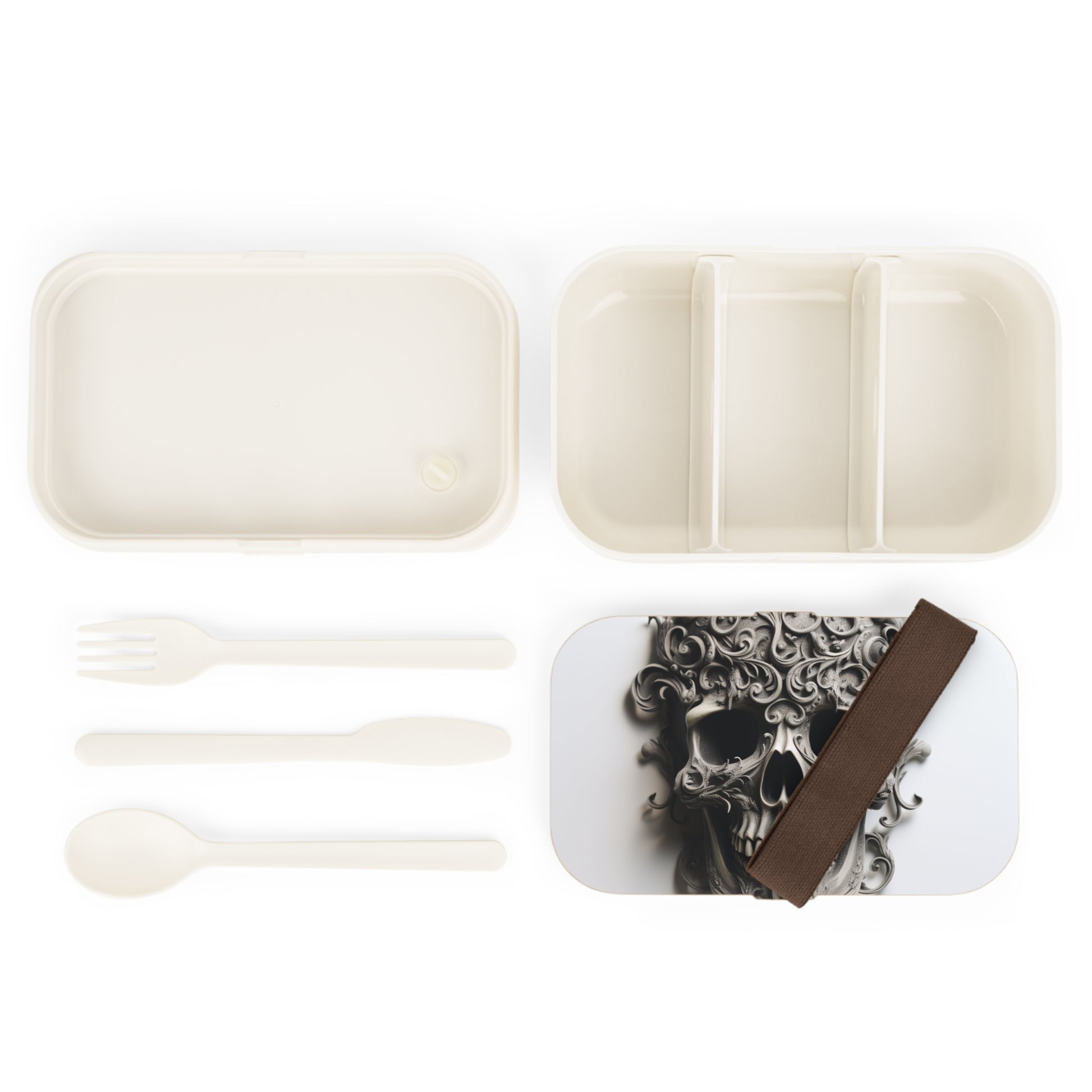 This stylish Skull Treble Clef 2 Bento Lunch Box is ideal for meal prepping your food for school, work, or travel. It features an airtight seal to keep your meals secure, 4 separate compartments to enjoy a variety of flavor combinations, and an ergonomic and easy-grip handle for convenience. Its sleek design, secure lid, and super cute skull and treble clef decorations make it the perfect lunch box for foodies. #bento #lunchbox #mealprep #convenient #travel #ergonomic #trebleclef #skull #airtight #multiplecompartments #flavorcombo #easygrip