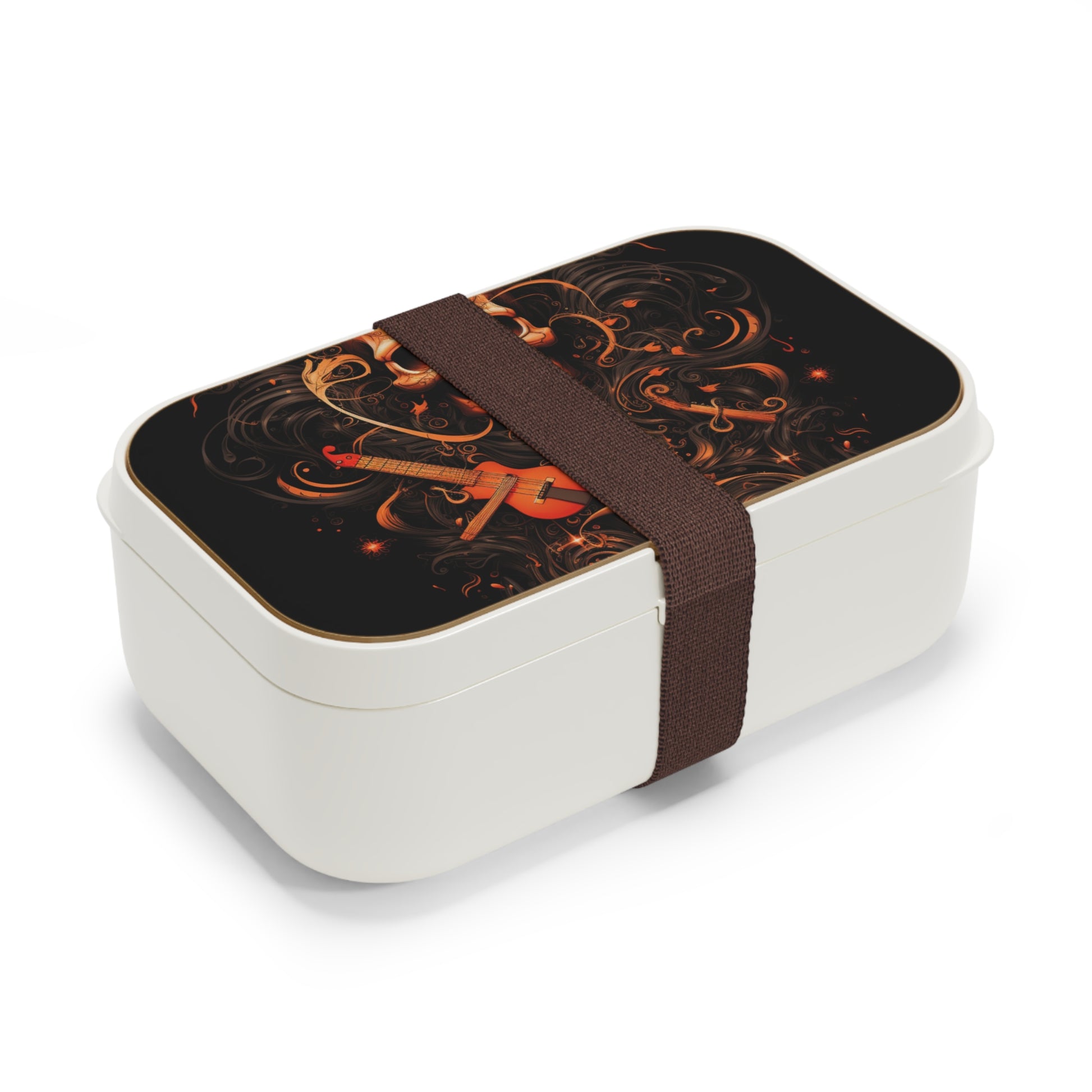 Introducing the Skull Treble Clef 4 Bento Lunch Box. It features four compartments to separate snacks, and makes your bento style lunches easier than ever. Perfectly sized for kids and adults alike, this vibrant lunch box is perfect for keeping food hot while out and about. Food-grade safe materials keep food healthy and fresh! #bentobox #lunchbox #skullthemed #tastefullygothic #vibrantcolors #trebleclef #durable #portable #safe #reusablelunch #ontherunlunchbox #healthylocations