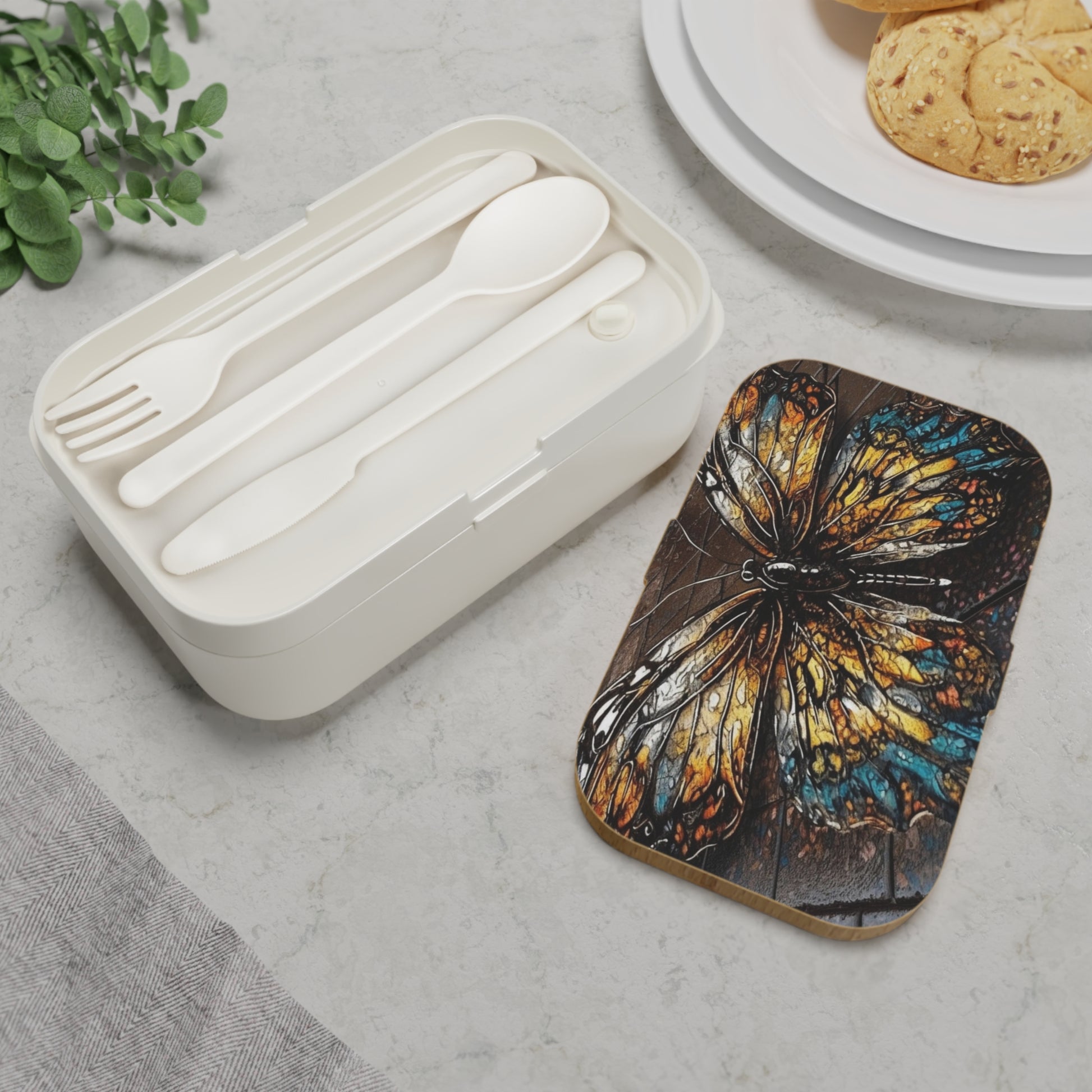 This stylish bento box is perfect for bringing lunch or a light snack on the go. It features two main compartments separated by sealed walls, for the ideal balance of moist and dry ingredients. This leak-proof design will make sure your lunch doesn't make a mess! The lid is shaped like a winged butterfly to look stylish and playful. Plus, its all-in-one design means no need to carry separate containers. #bentobox #onthergo #lightweight #leakproof #waterbutterflystreet1# compartmentalized #packedlunch #balancedmeals #portable #stylish