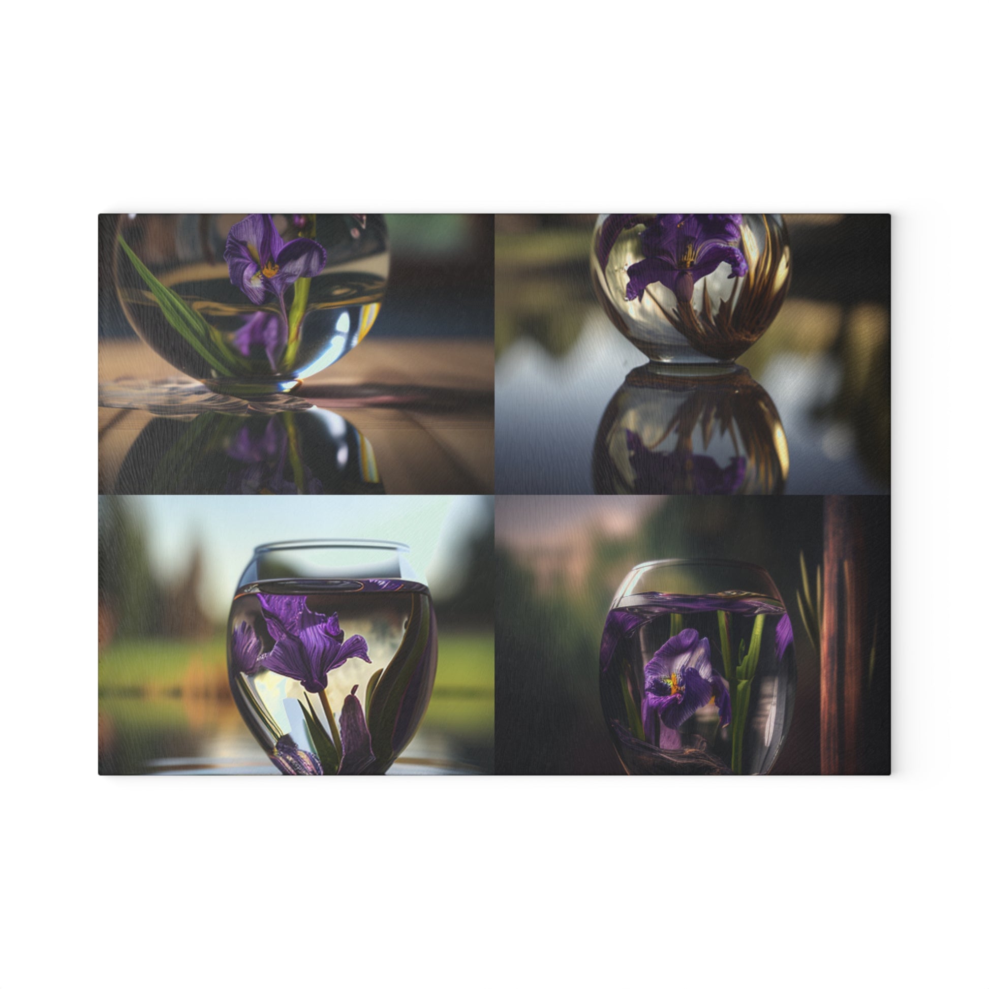 This elegant glass cutting board is perfect for cutting, chopping and preparing your favorite meals. The Glass board features Purple Iris in a Vase with a durable 5 in. design. It's easy to clean and made with scratch-resistant glass with a non-slip base. #CuttingBoard #Elegant #KitchenTools #FoodPrep #ScratchResistant #Kitchenware #Glassboard #PurpleIris #Vase #5In #NonSlip #Durable
