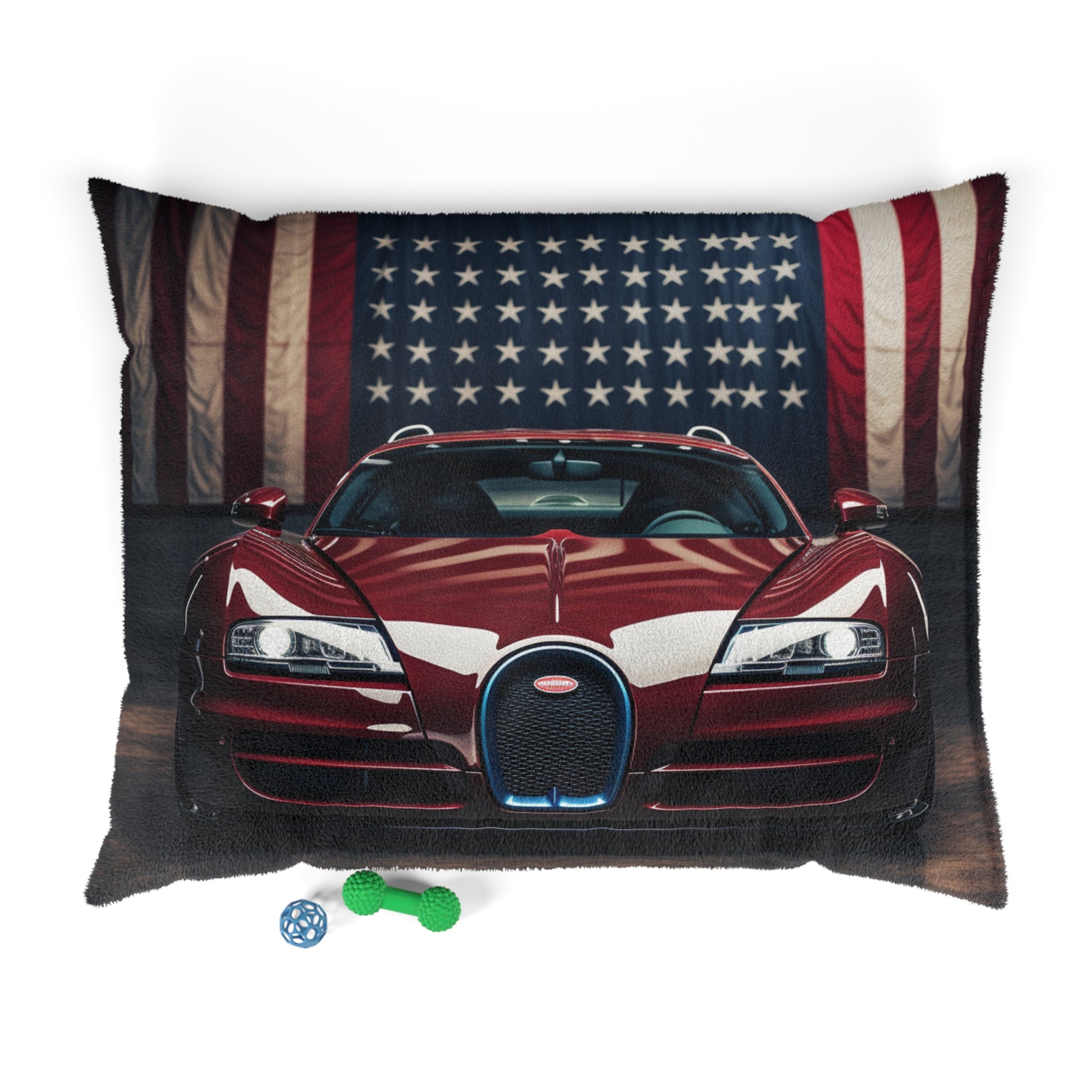This American Flag Background Bugatti pet bed is more than just a comfy place to lay! Crafted with premium materials to keep its shape and guarantee lump-free comfort, this stunning bed will give your pet's sleeping spot an edge! #petbed #americanflag #comfort #durability #style #luxury #bugatti #dog #cat #shreddedfoam #soothing #premium