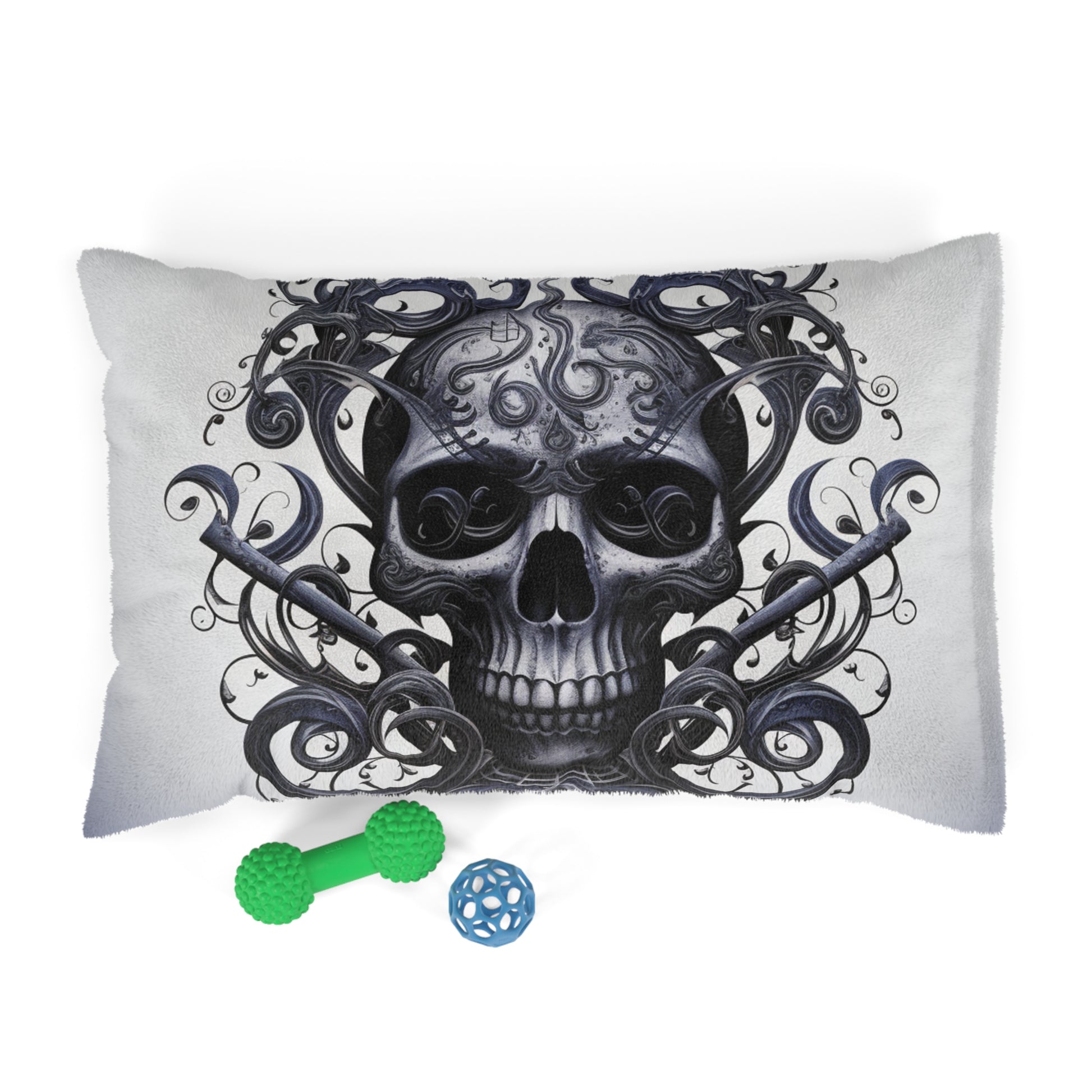 When comfort is key, Skull Treble Clef 1 is the perfect bed for your treasured pet. Filled with extra padding, this bed makes your loved one feel safe and secure. Measuring 30 x 30 inches, it's the perfect size for medium to large pets. Crafted with a cute skull and treble clef design, it adds style to your pet's lounge space. #petbed #comfortable #mediumsized #padding #safety #stylsih#lounge #lovedone #skull #trebleclef #petspace #mediumtopet #security