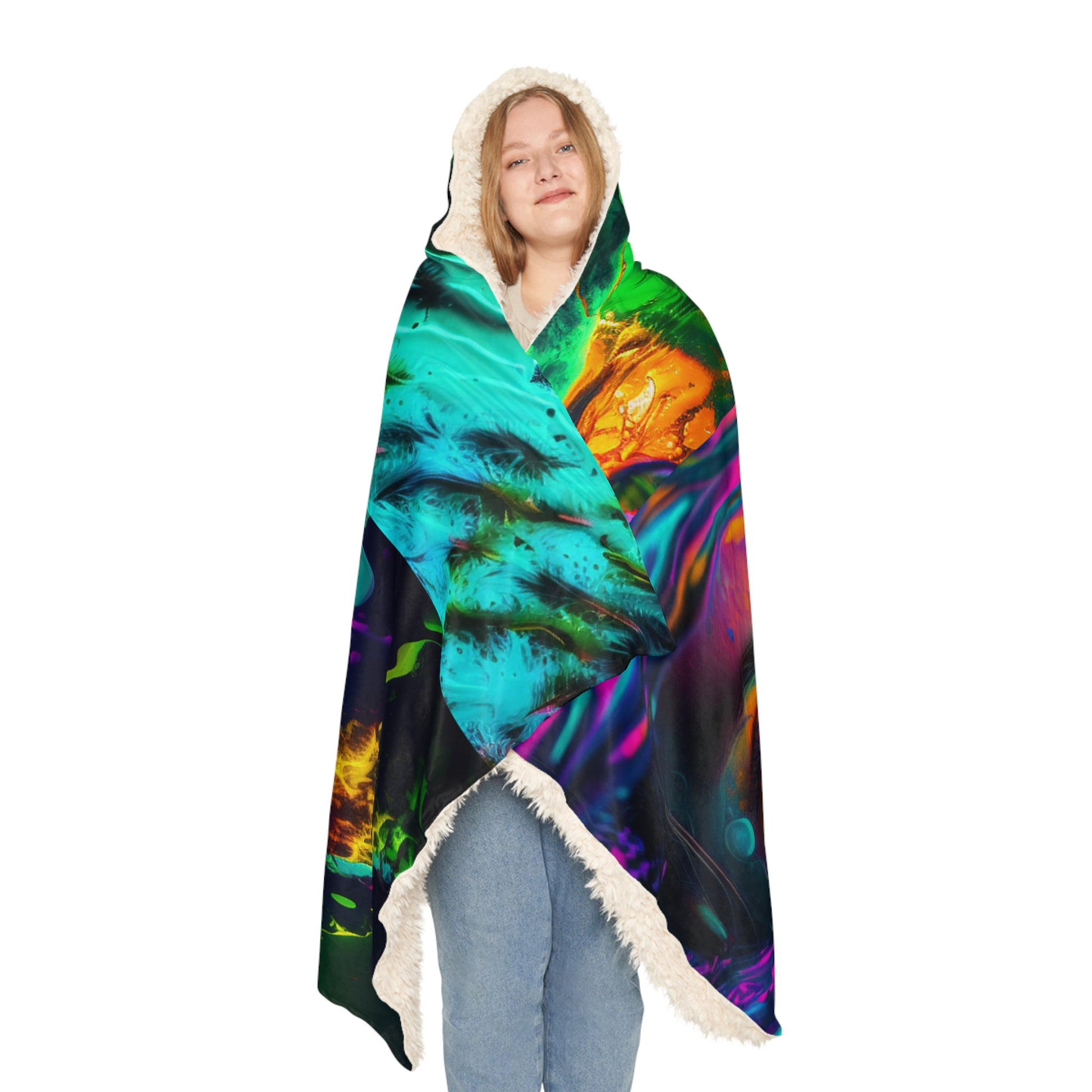 The Florescent Glow 5 Snuggle Hooded Blanket is sure to keep you cozy and comfortable all winter long. Crafted with extra fluffy premium fleece and warming sherpa on the inside, you'll never want to take it off. Each one features a large hood that provide even more warmth and an extra snug fit, while the colorful all-over design adds an extra-lively touch. #SnuggleHoodedBlanket #FlorescentGlow #PremiumFleece #Sherpa #Warmth #Cozy #Comfortable #Style #Design #AllWinterLong #ExtraSnugFit