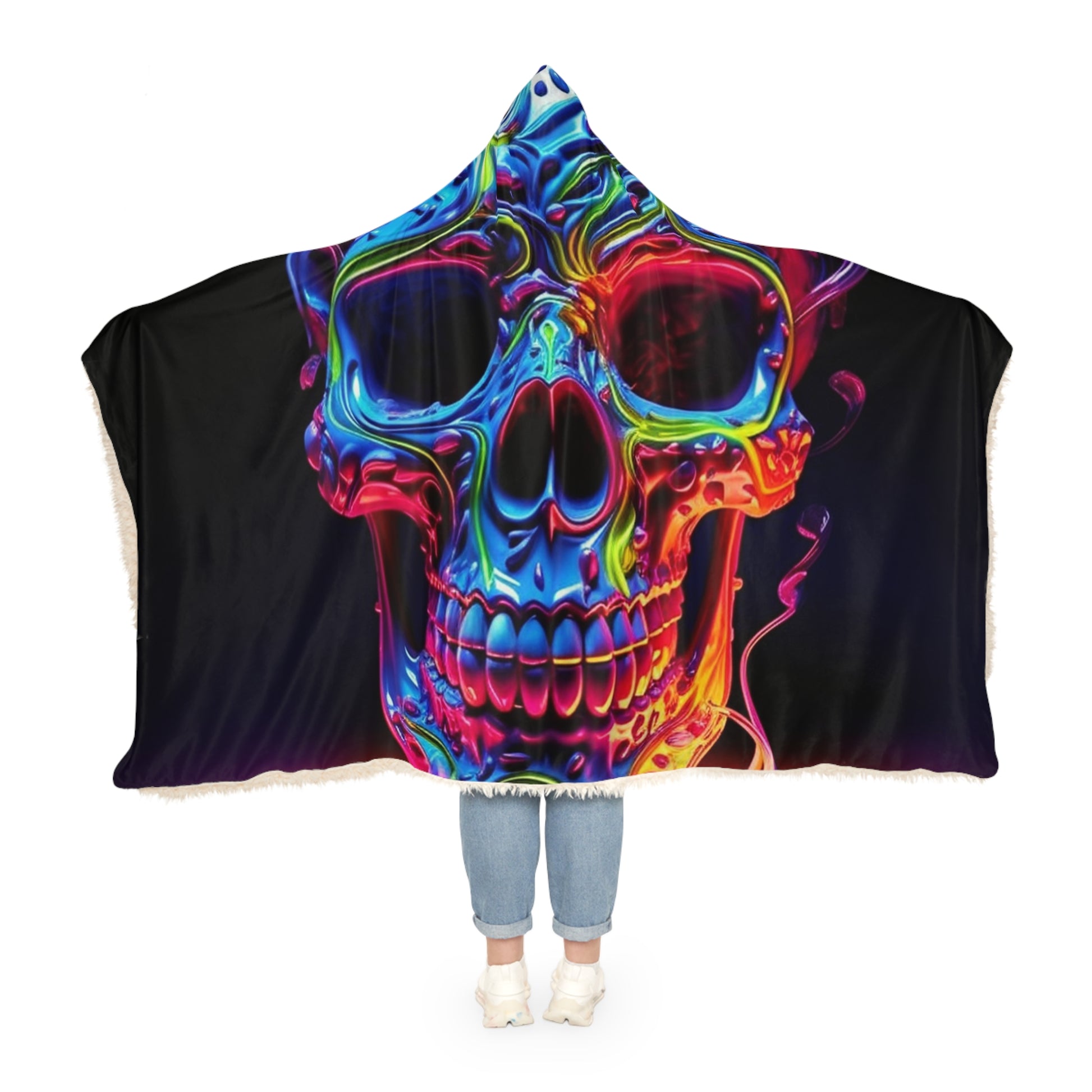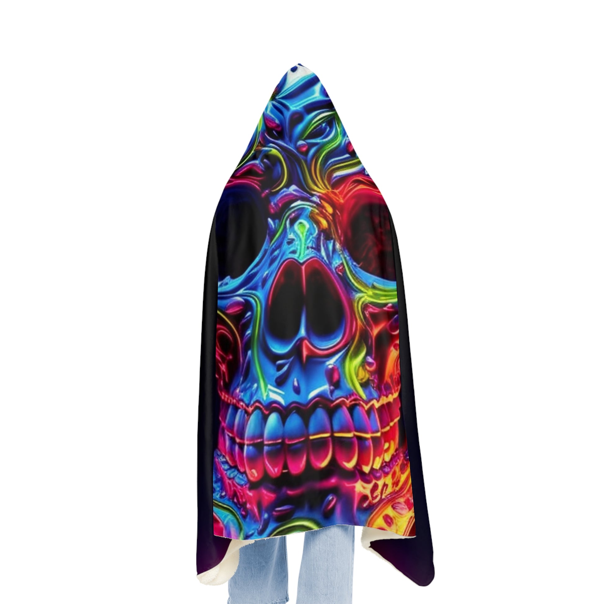 This Macro Skull Color 3 Snuggle Hooded Blanket is perfect for relaxing at home. It's 180x150cm size and weight of 1.25kg will keep you feeling extra cozze. Its hoodie design will keep you extra warm and secure. Made from cotton and terry cloth that will not shrink or fade with wash. Get ready to wrap yourself up in this ultimate comfort. #hoodieblanket #cozze #snuggle #macroskull #comfortblanket #terrycloth #warmth #softblanket #lovelyblanket #relaxingblanket #winterblanket