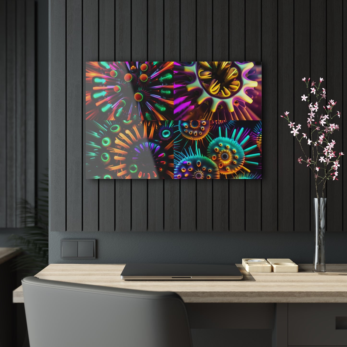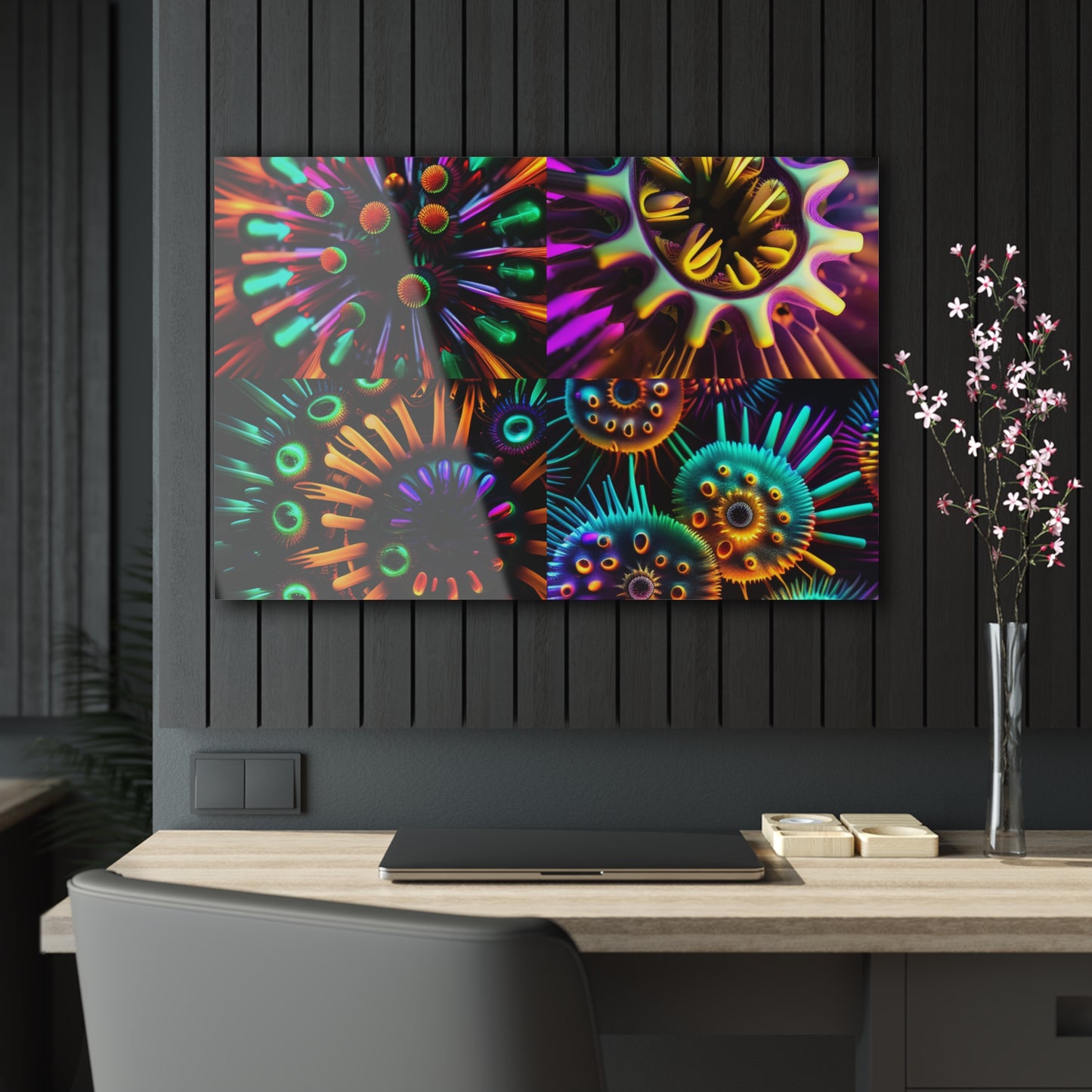This vibrant, neon colored Acrylic Prints print will add a pop of individuality to any room! Printed on premium canvas with a glossy finish, Neon Macro is sure to leave your guests in awe. Float mount and wall hang hardware included; frame not included. Designed to last for years, this unique and contemporary art piece brings clarity and sensationalism. #neon#macro#acrylic#prints#art#colorful#decor#home#interior#style#modern