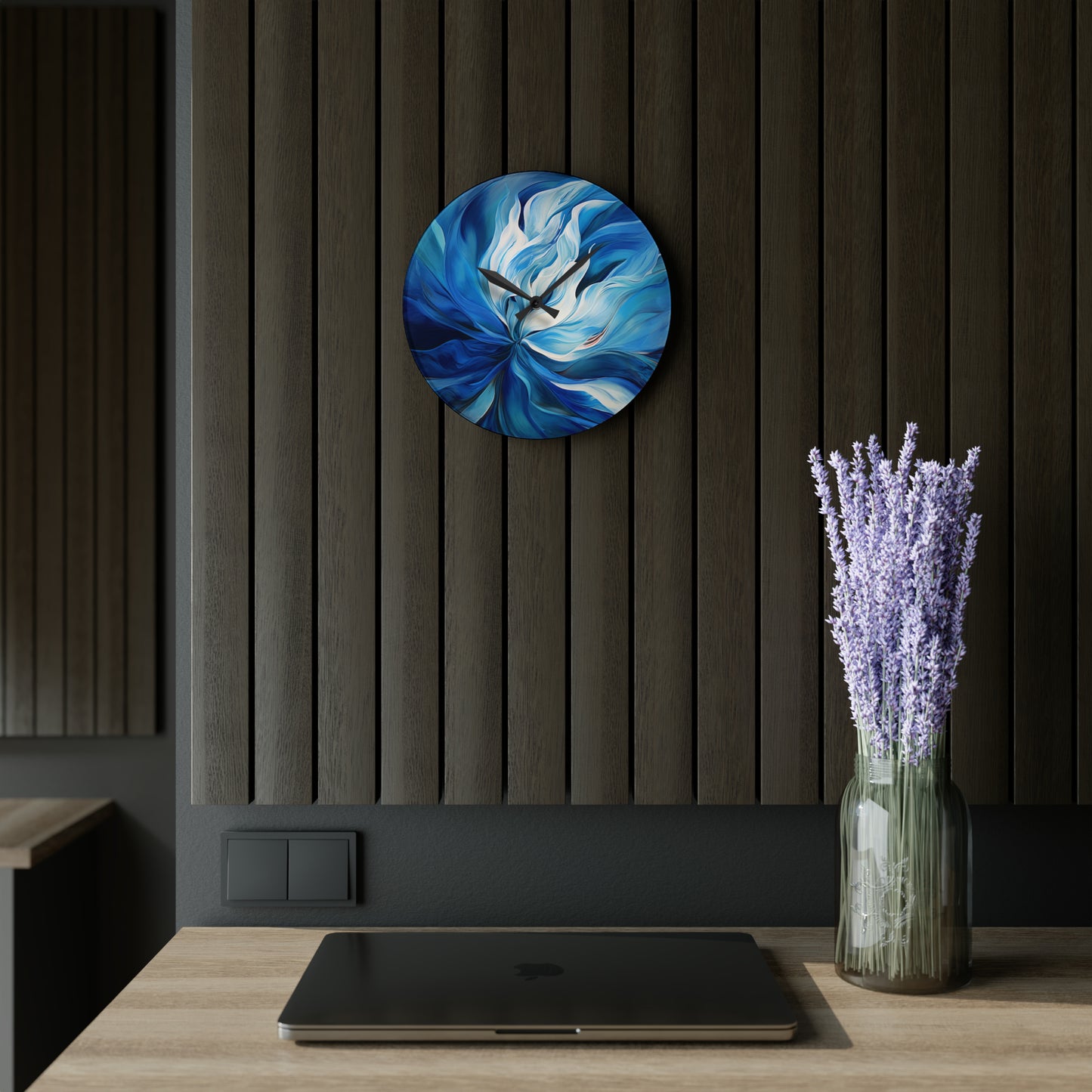 Acrylic Wall Clock Blue Tluip Abstract 1