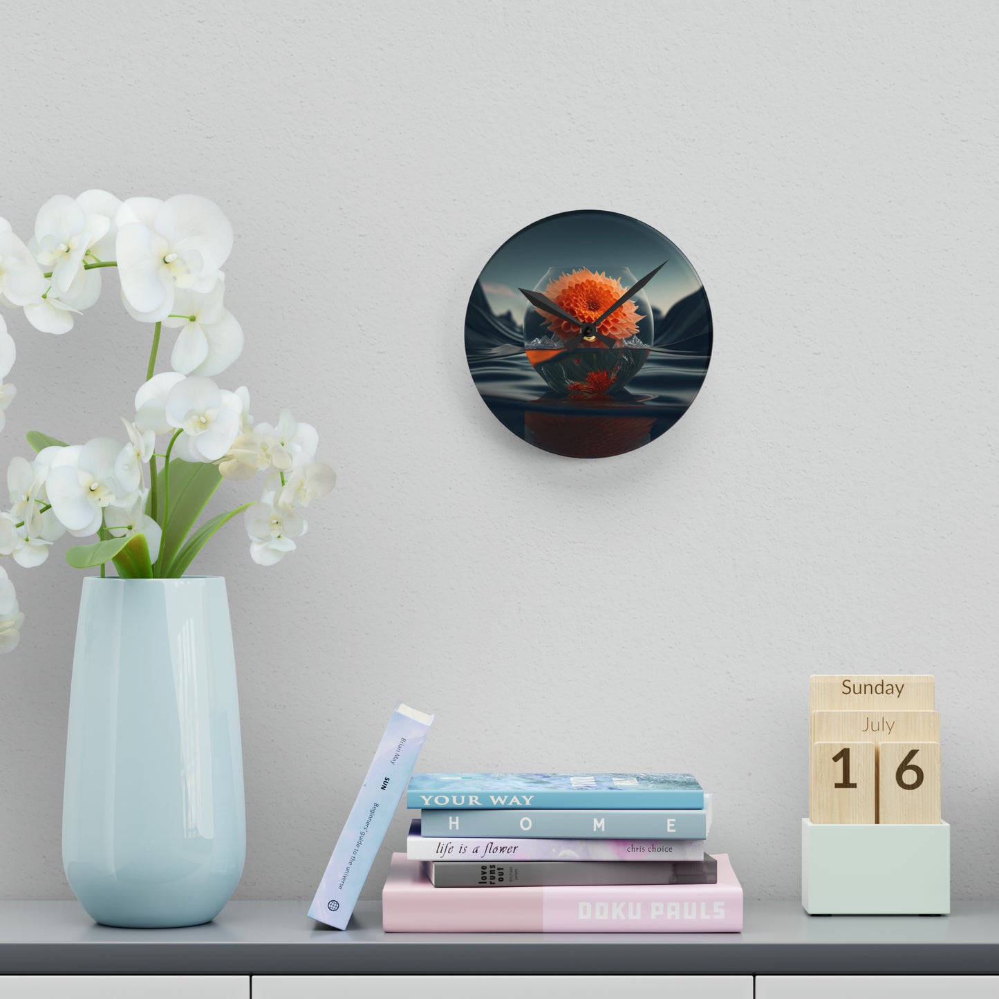 Acrylic Wall Clock Dahlia Orange 3