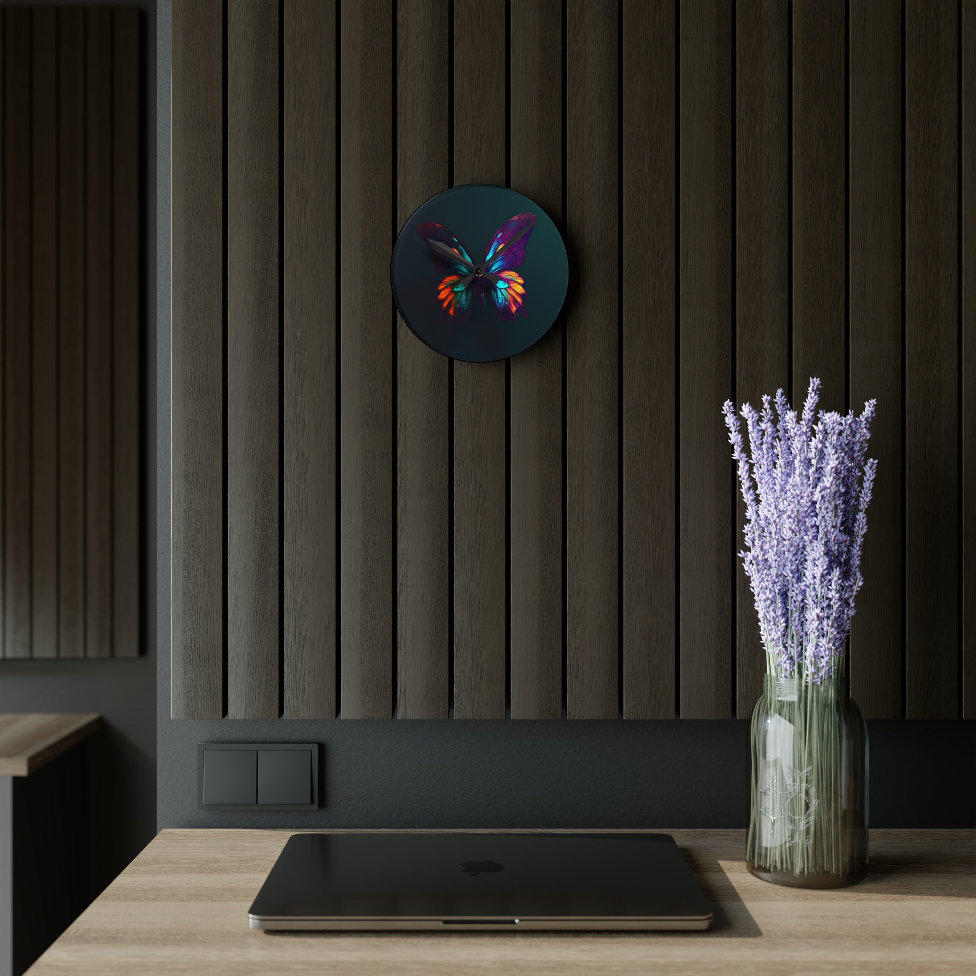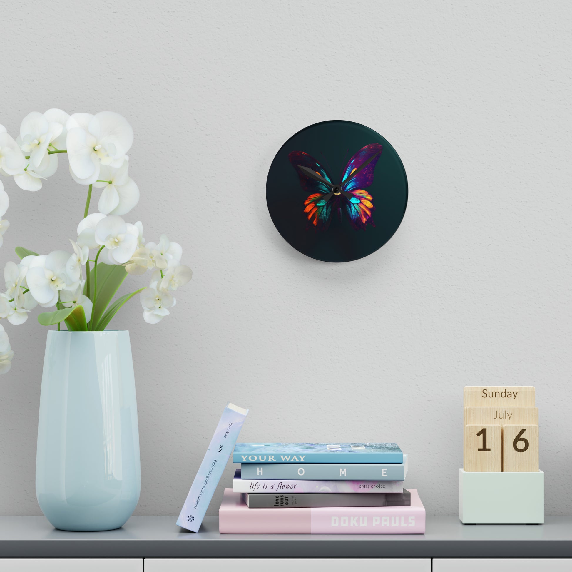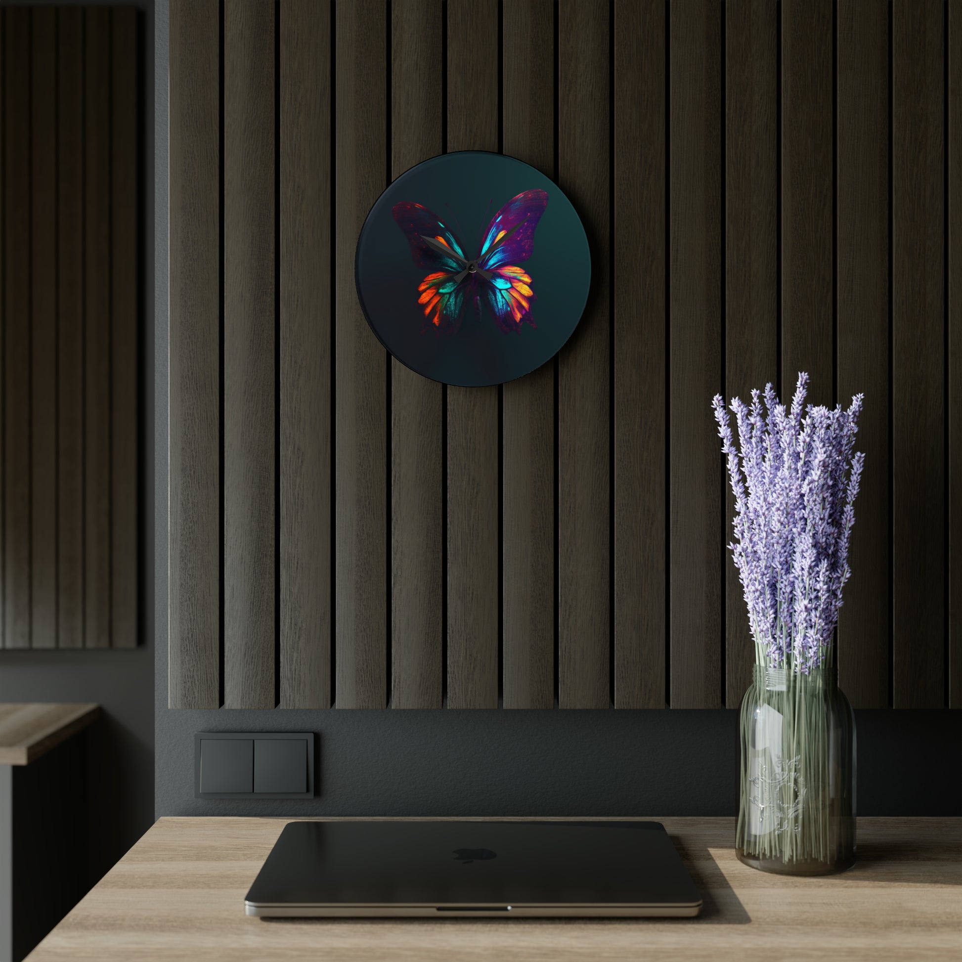 Acrylic Wall Clock Hyper Colorful Butterfly Macro 4