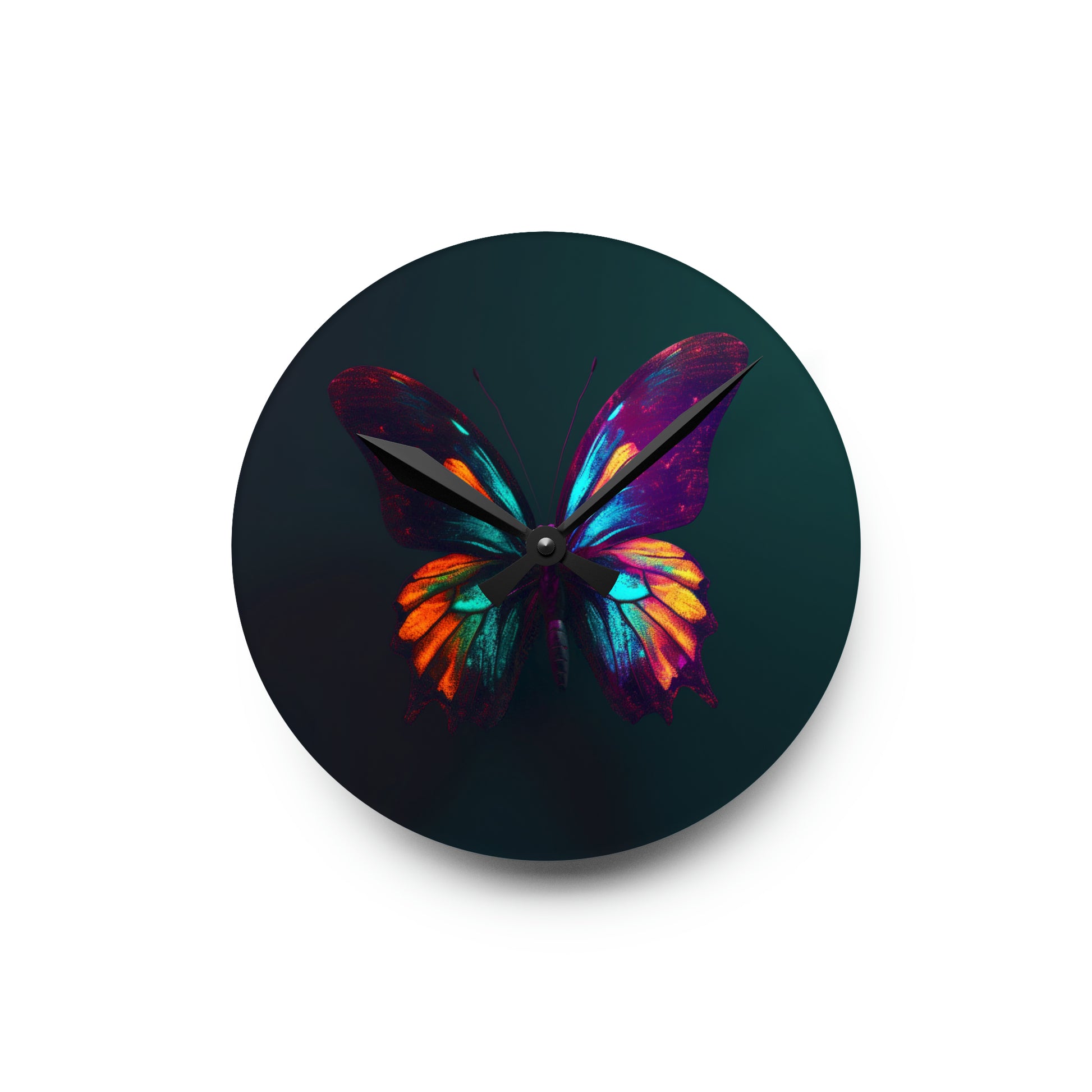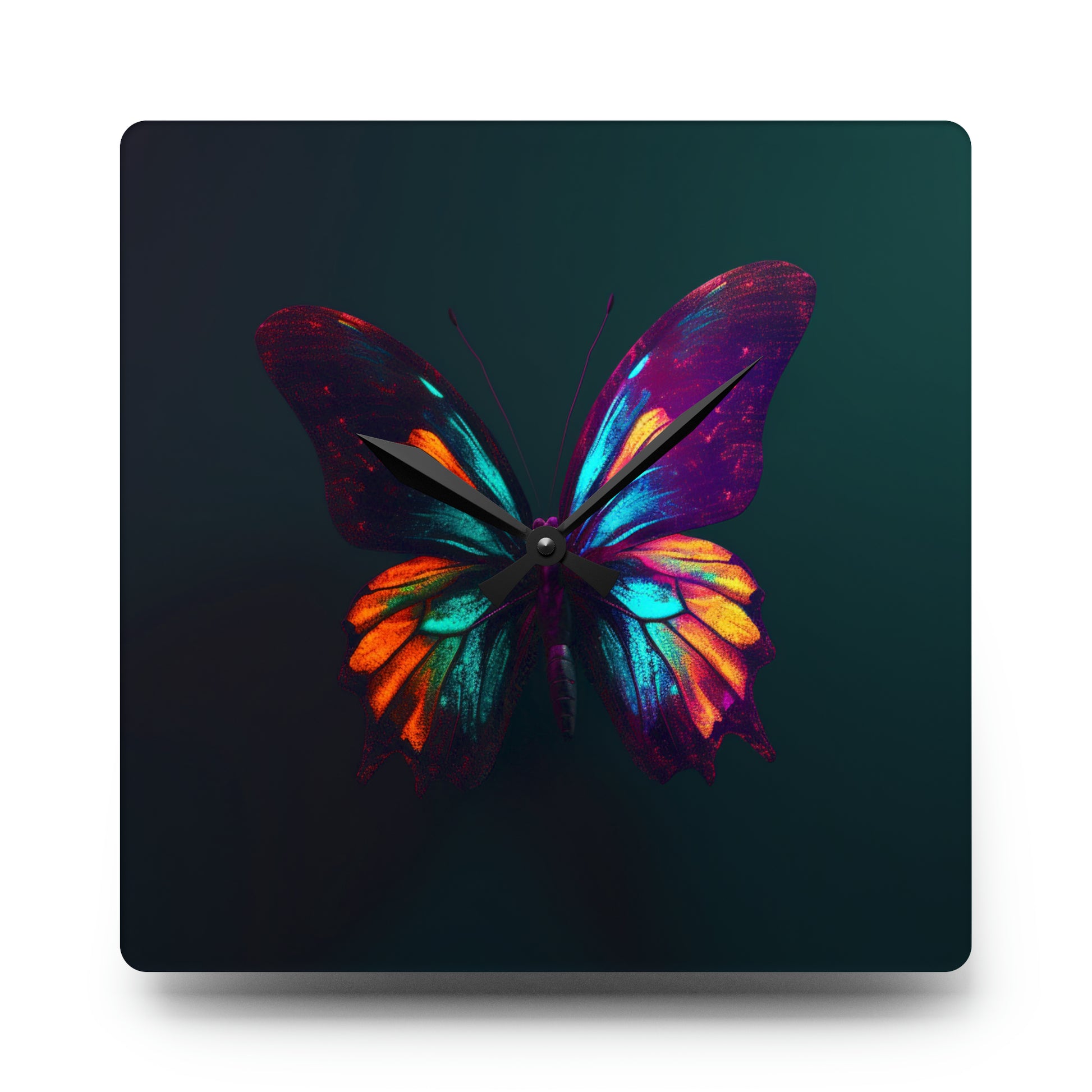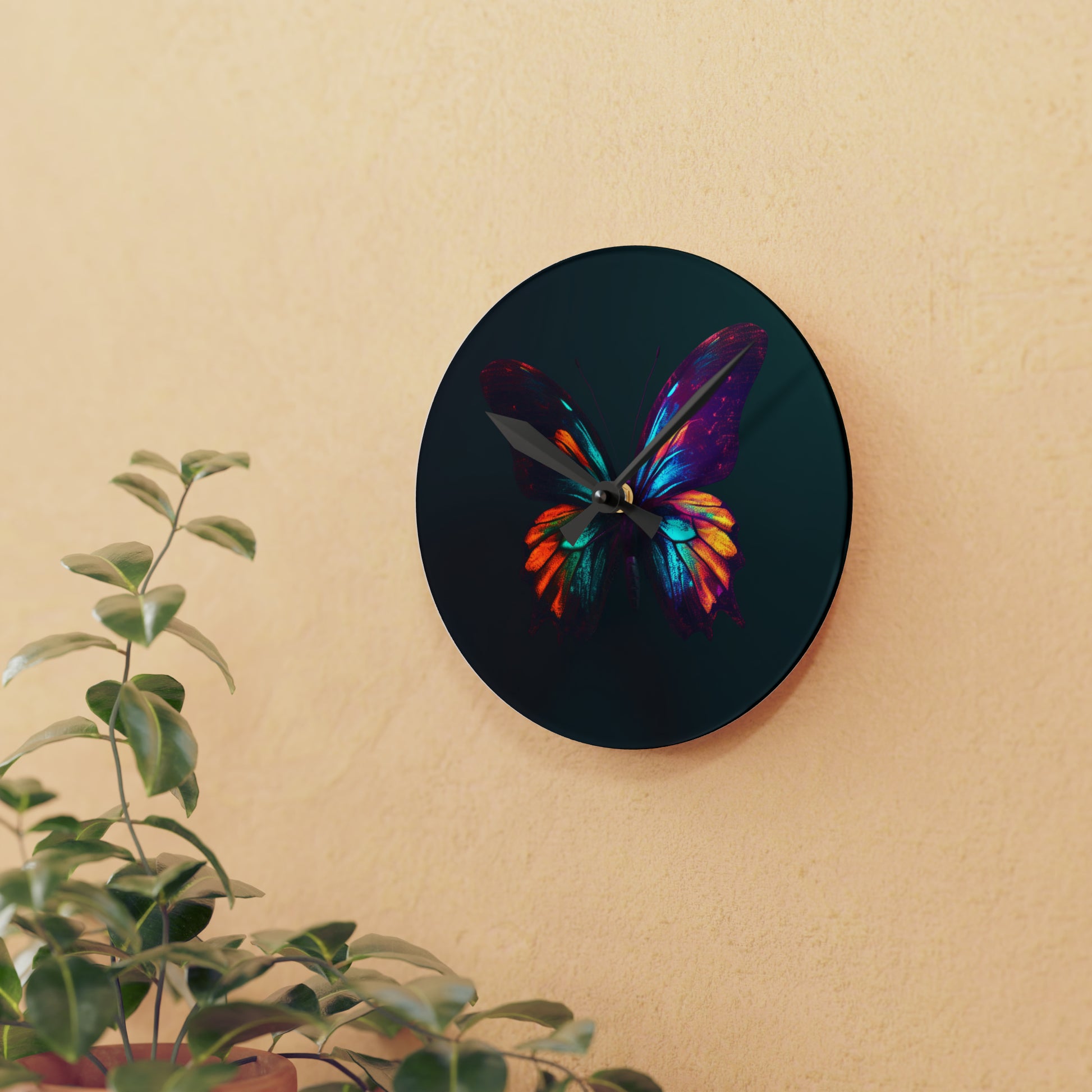 Acrylic Wall Clock Hyper Colorful Butterfly Macro 4