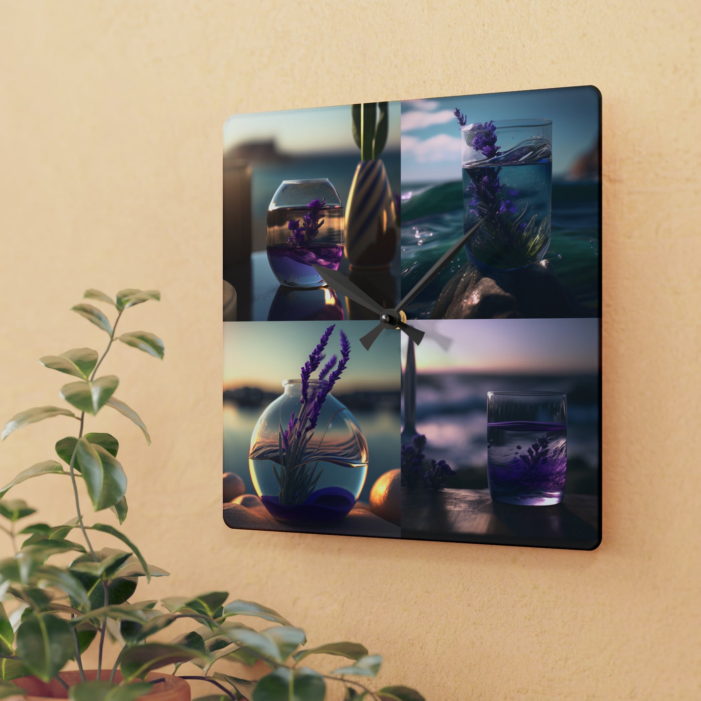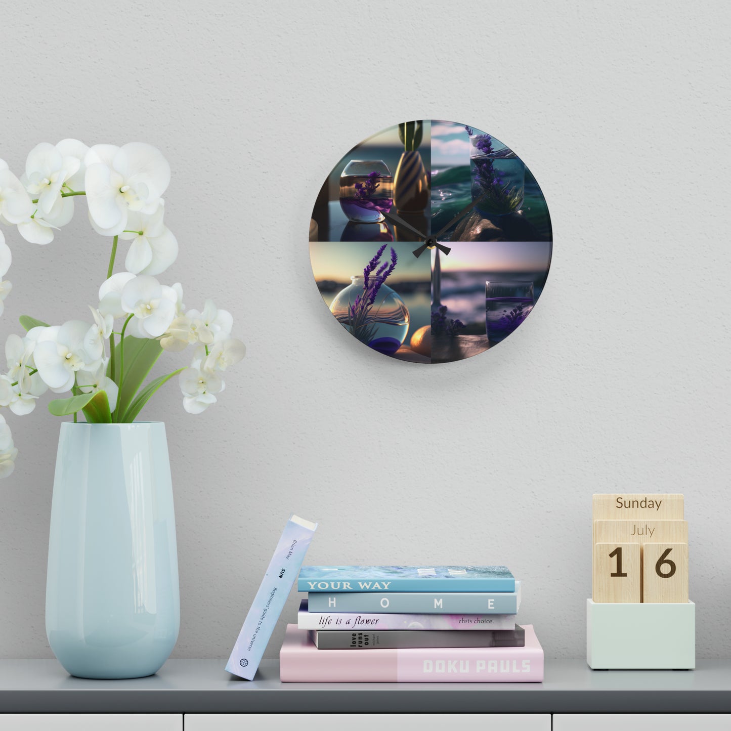 Acrylic Wall Clock Lavender in a vase 5