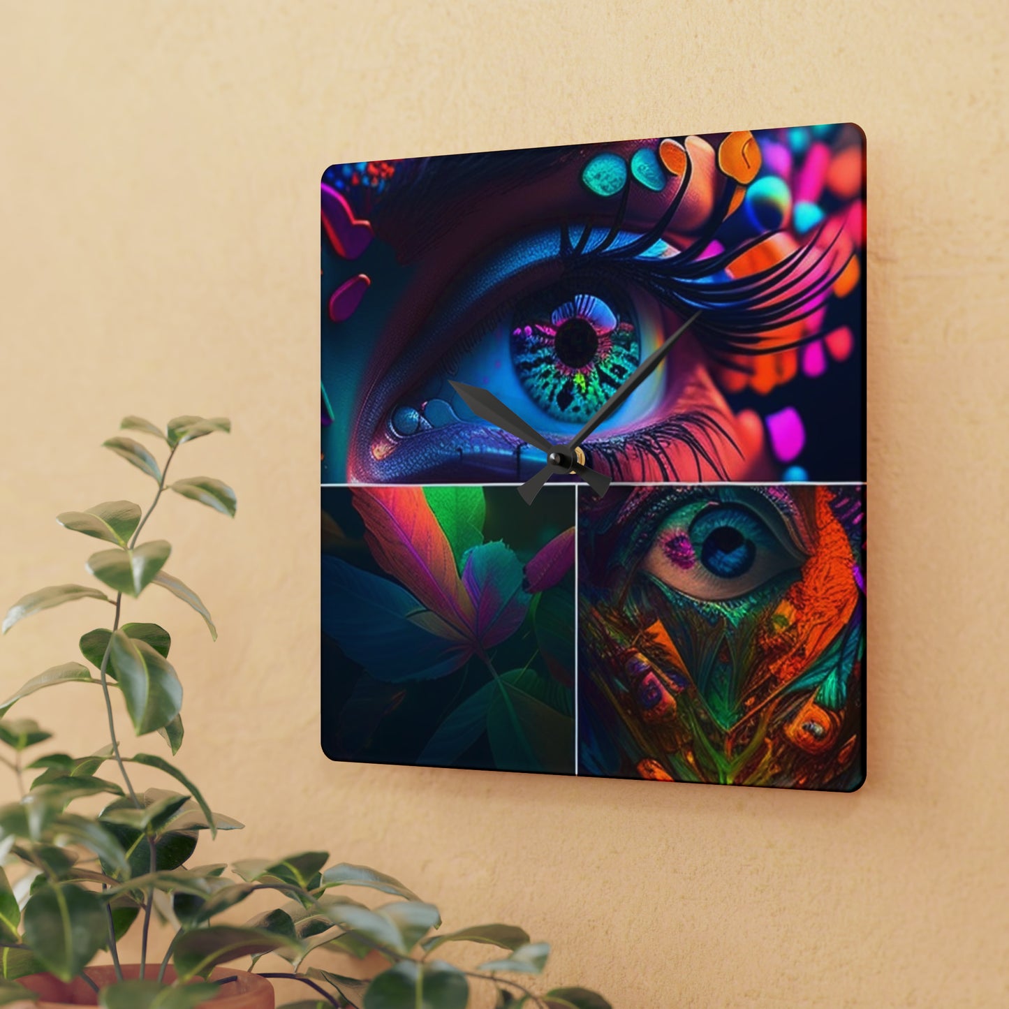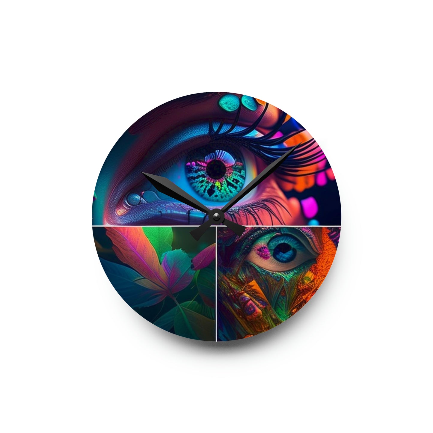 These clocks come in two shapes (round and square) and two sizes. Each clock has a keyhole at the back for easy hanging on a wall. They're made from an acrylic material that looks like glass but is more durable and sturdy.