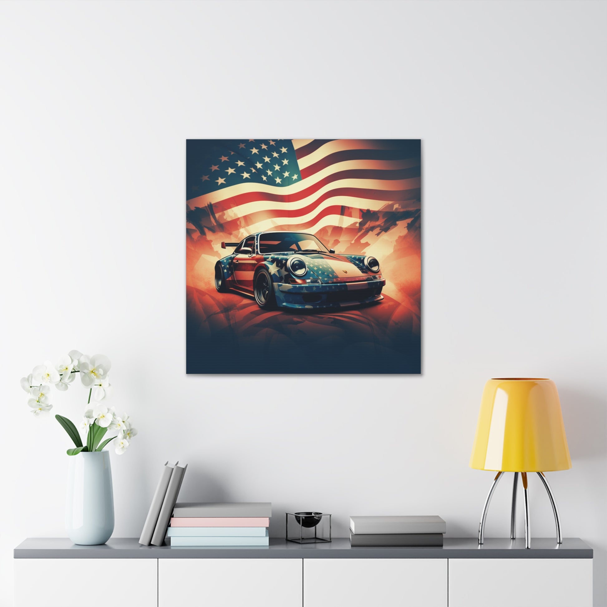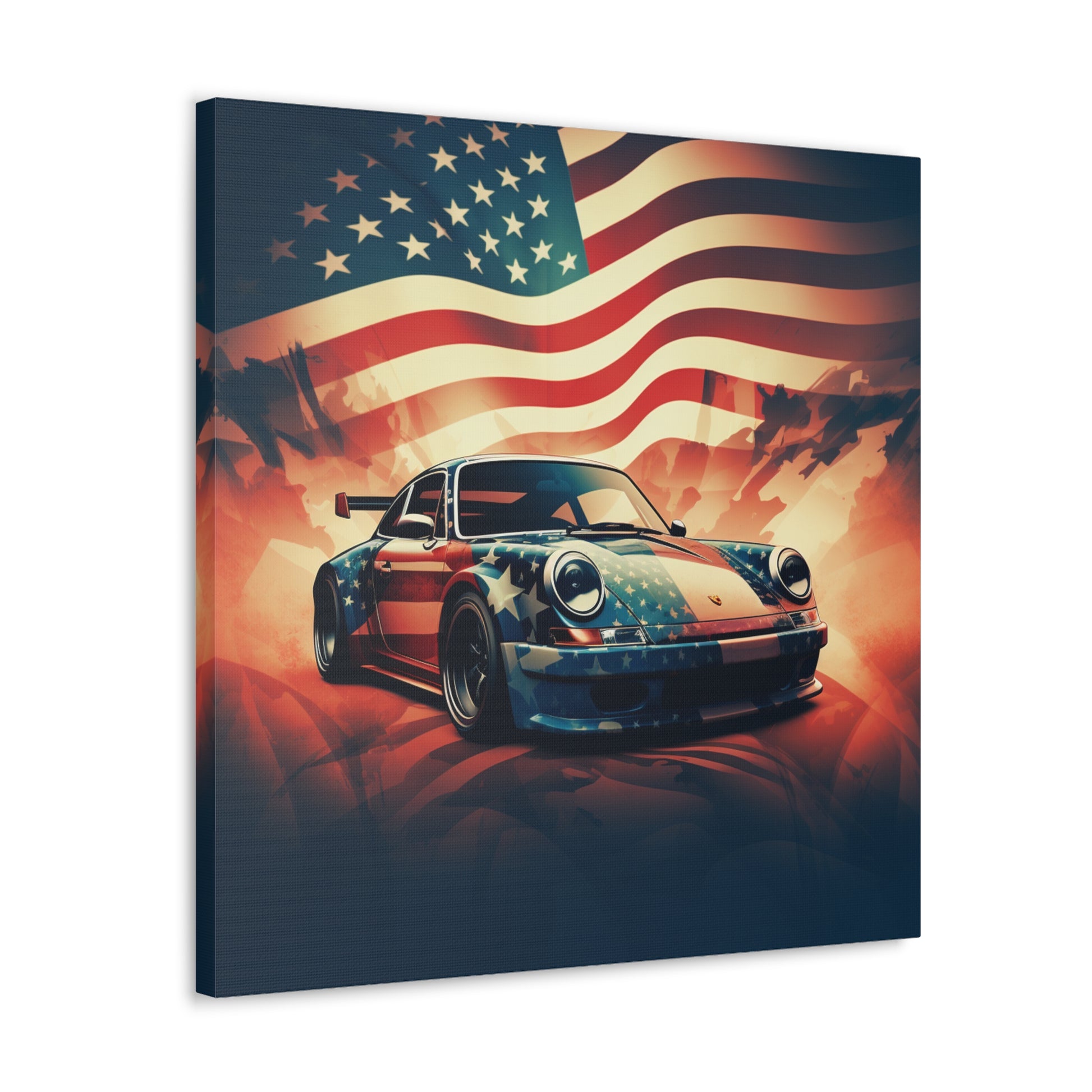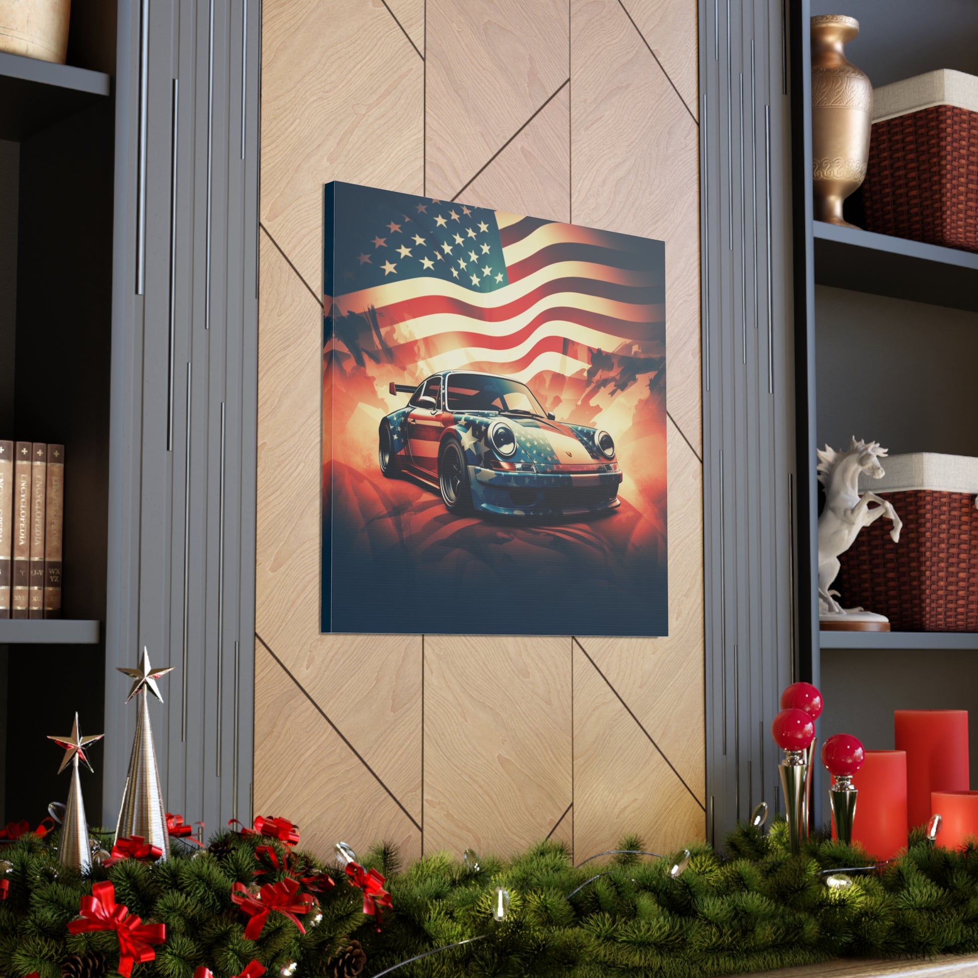 Canvas Gallery Wraps Abstract American Flag Background Porsche 4