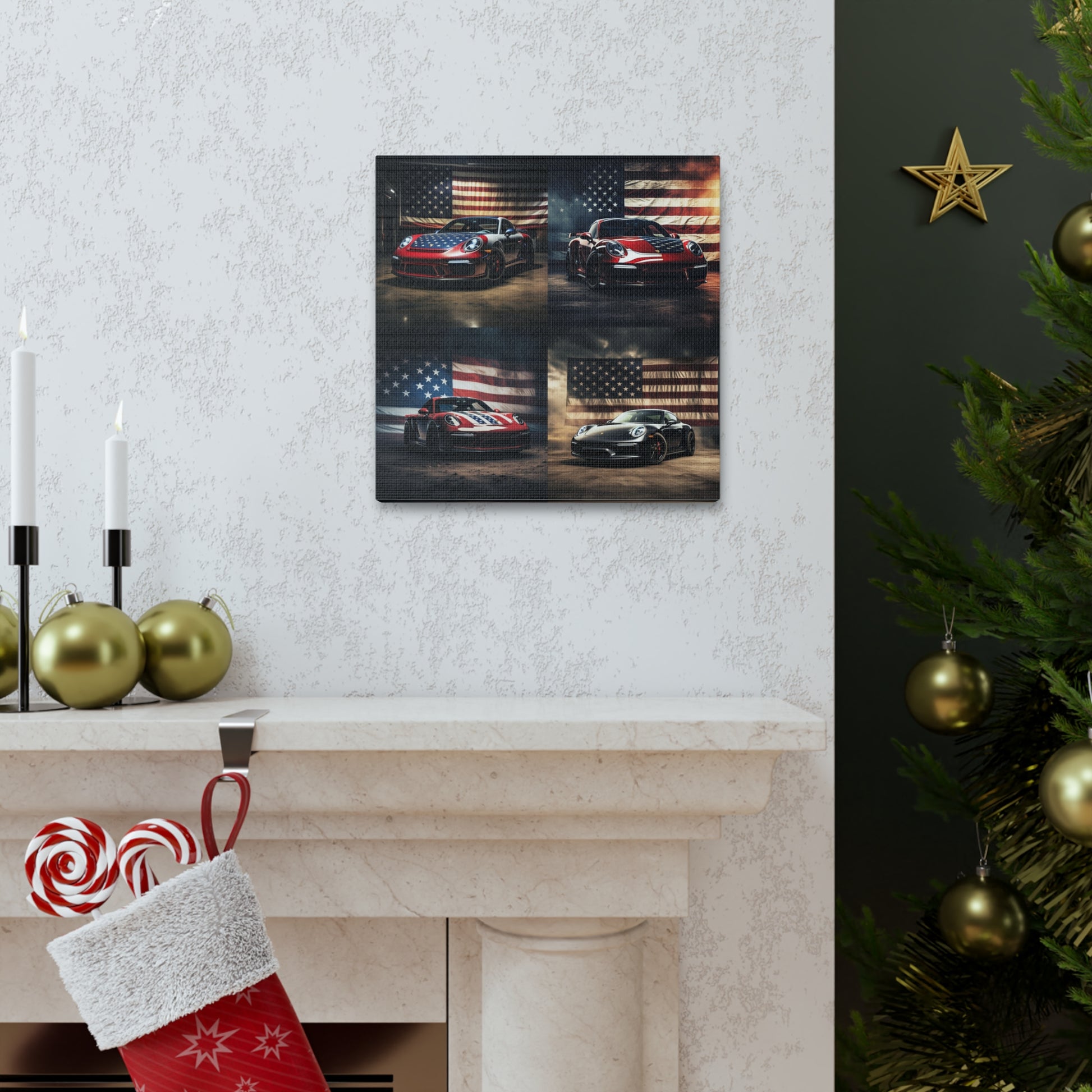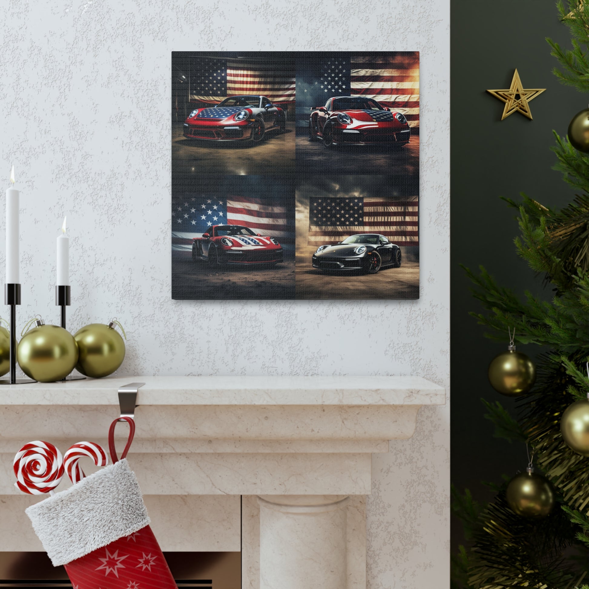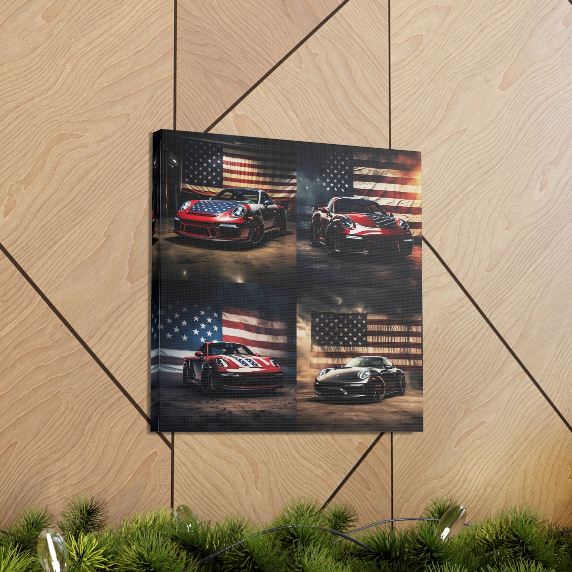 Canvas Gallery Wraps American Flag Background Porsche 5