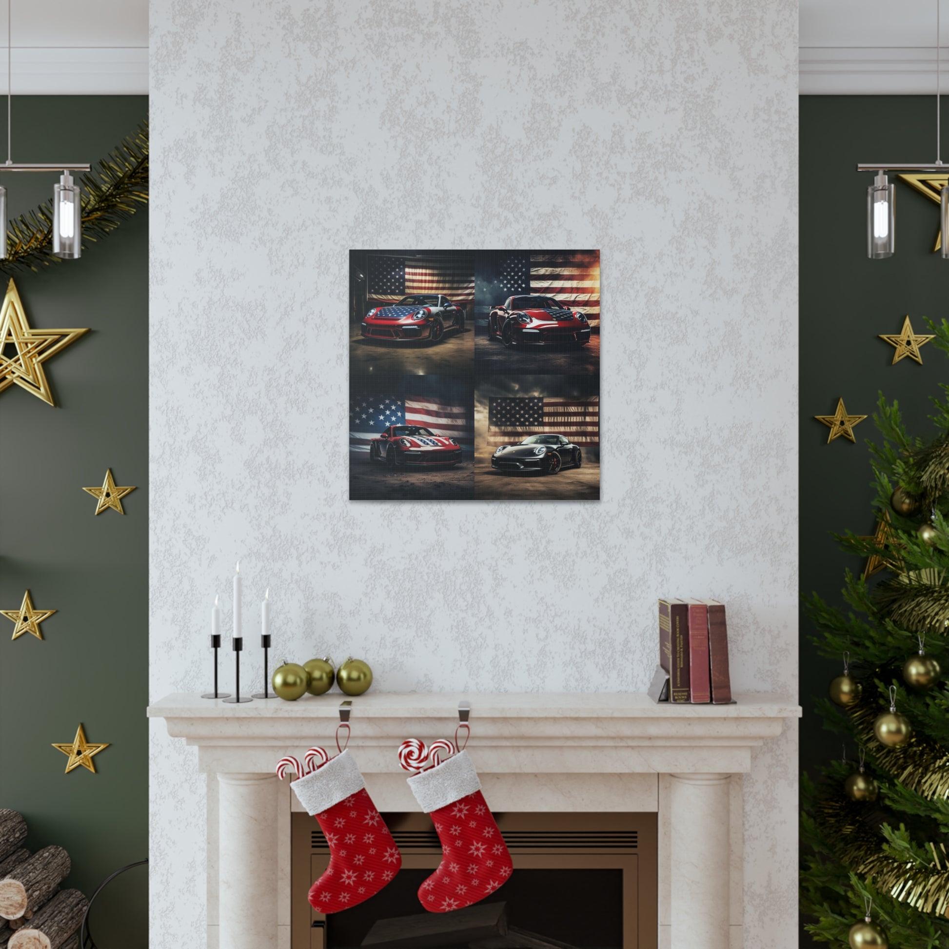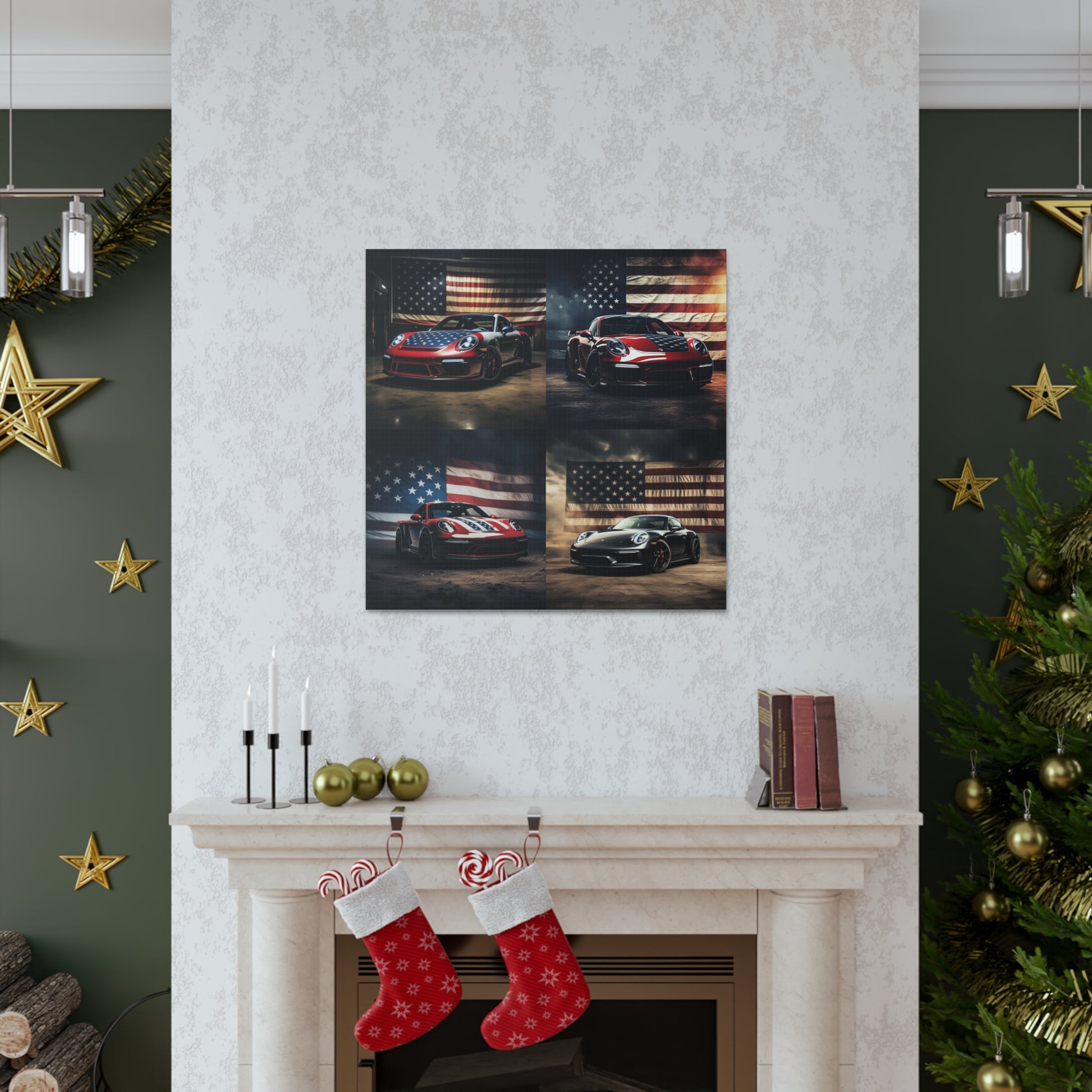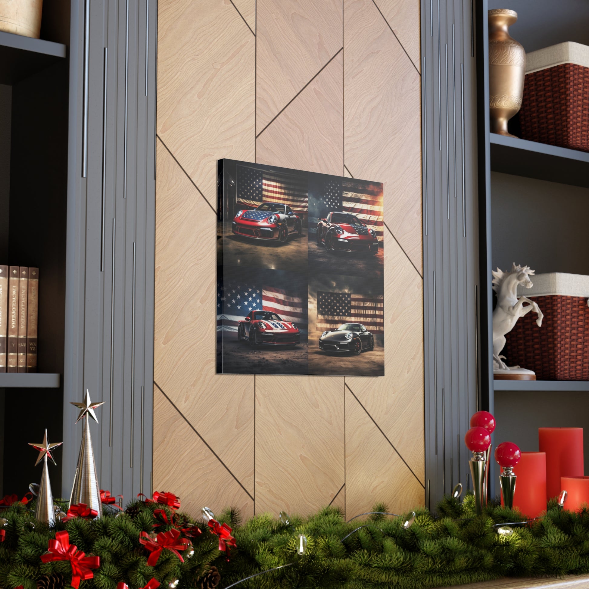 Canvas Gallery Wraps American Flag Background Porsche 5