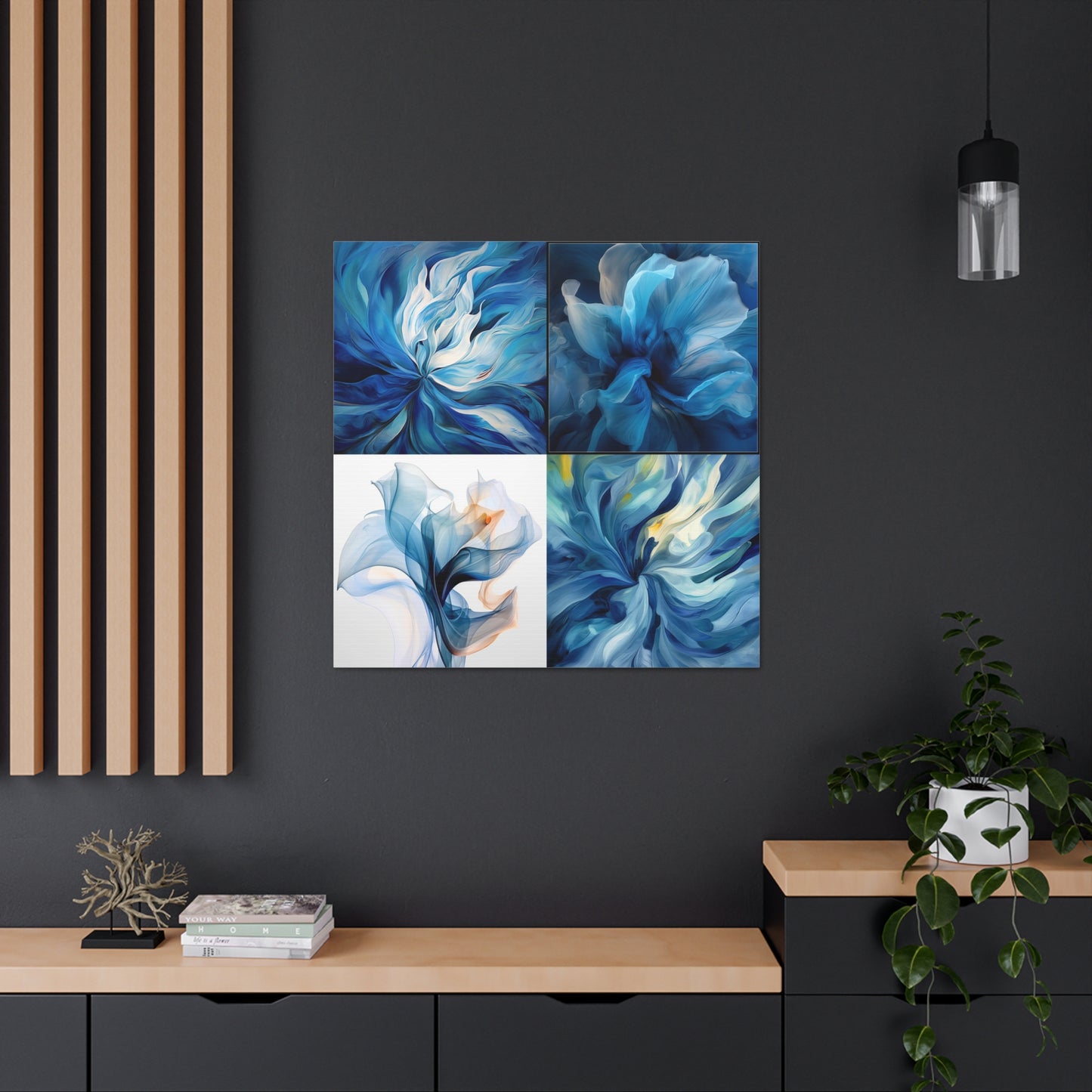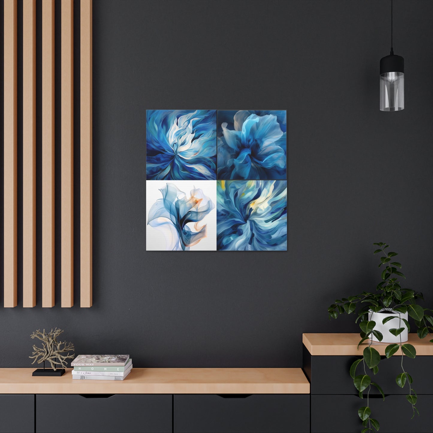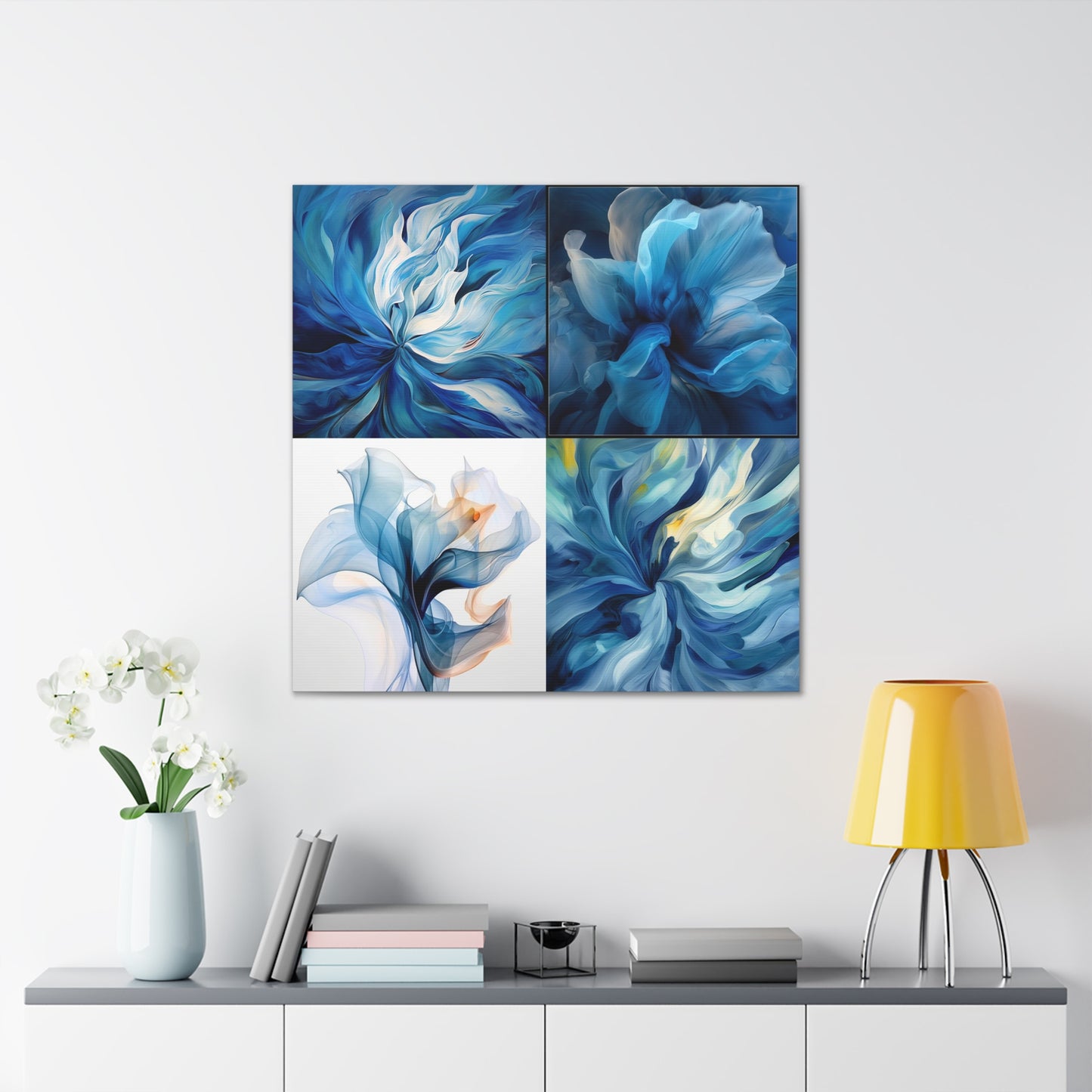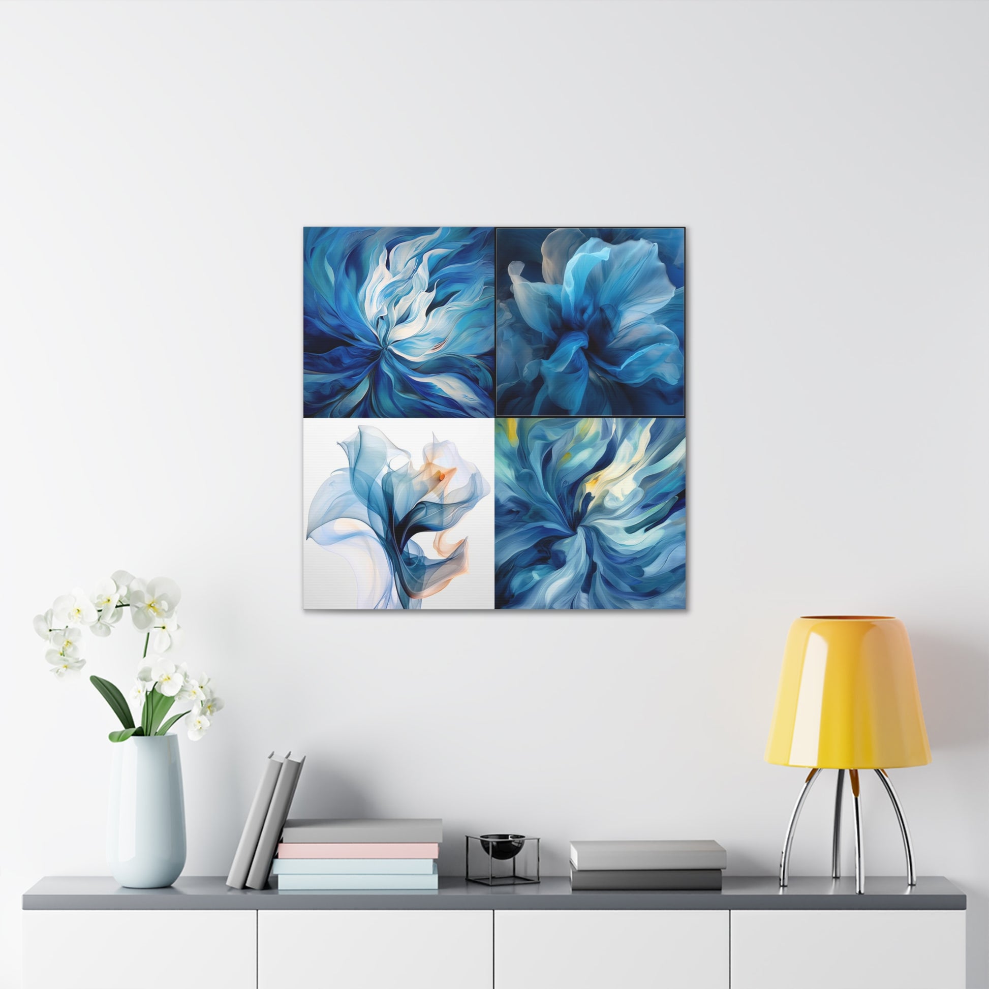 This beautiful abstract design features multiple shades of blue that come together to form a dreamy masterpiece. The Blue Tulip Abstract 5 Canvas Gallery Wrap is sure to add a sense of style and sophistication to any room of your home. Printed on ultralight archival canvas, this high-resolution artwork is finished with a protective UV coating to ensure it will last for years to come. #abstractart #canvaswraps #bluetulip #wallart #interiors #modernart #decor #artwork #styleguide #homerenovation #wallaccessories #canvasprints #homedesign