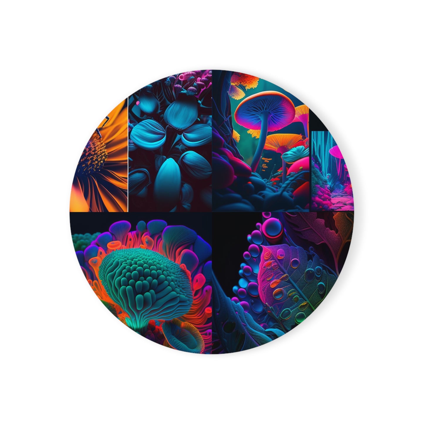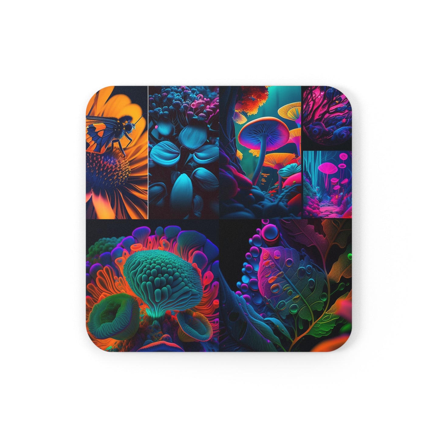Bring a touch of the sea into your home with the Macro Reef Florescent 5 cork coaster. Its vivid desig features bright coral and oceanic greens, making a perfect addition to your bar or kitchen. Not just stylish, but uniquely practical. Cork backing offers a waterproof and heat resistant bottom layer, protecting surfaces from spills and condensation. #coaster #corkback #seaside #decor #cheerful #durable #coastalstyle #modern #home #oceanic #waterproof #heatresistant