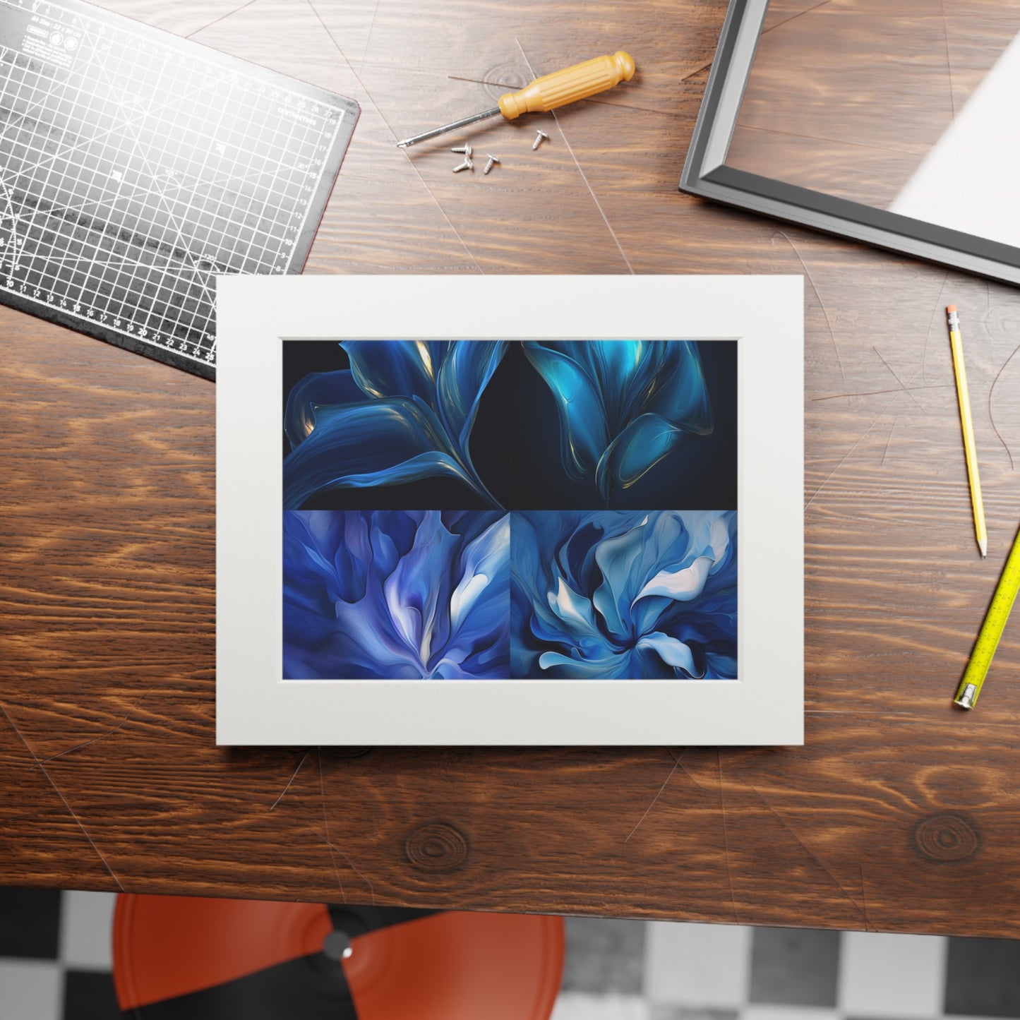 Fine Art Prints (Passepartout Paper Frame) Abstract Blue Tulip 5