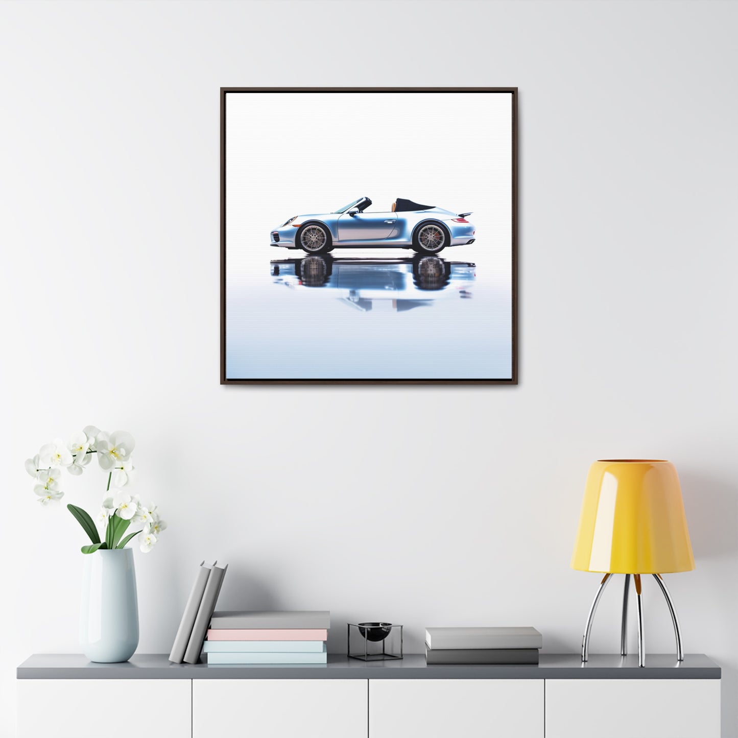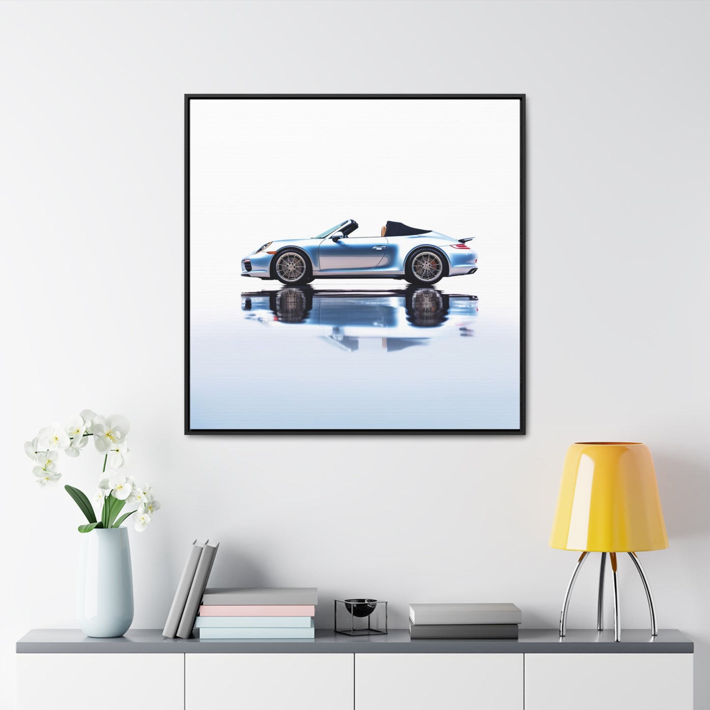This speedster on water canvas wrap was inspired by the endless runs of the Porsche 911. Vibrant colors, sharp lines, and careful details create the perfect wall-worthy art piece. With a square frame, this canvas wrap is sure to fit with any decor. Complete with an artwork of a Porsche 911 speedster on water. #CanvasWrap #Porsche911 #911Speedster #WallArt #SquareFrame #GalleryCanvas #SplashOfColor #SpeedOnWater #SpeedsterArt #VibrantColors #SharpLines