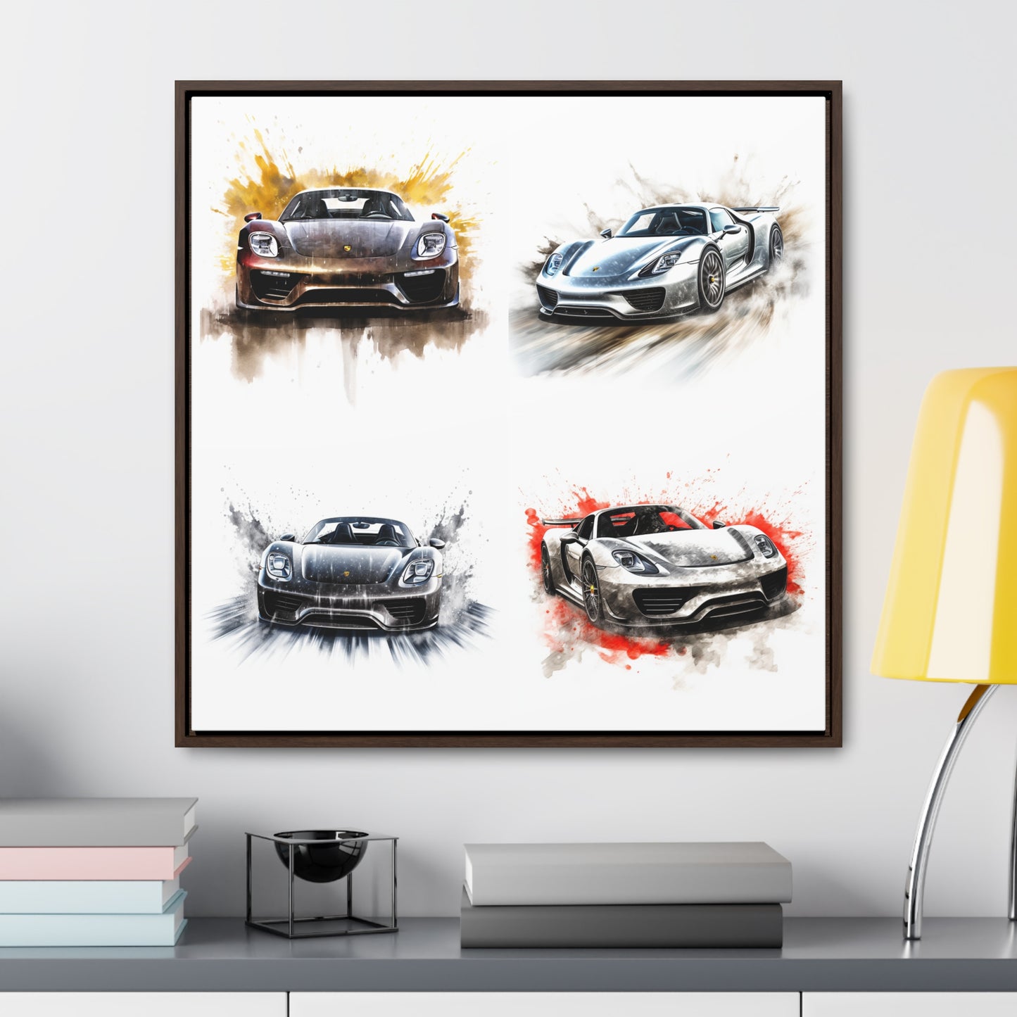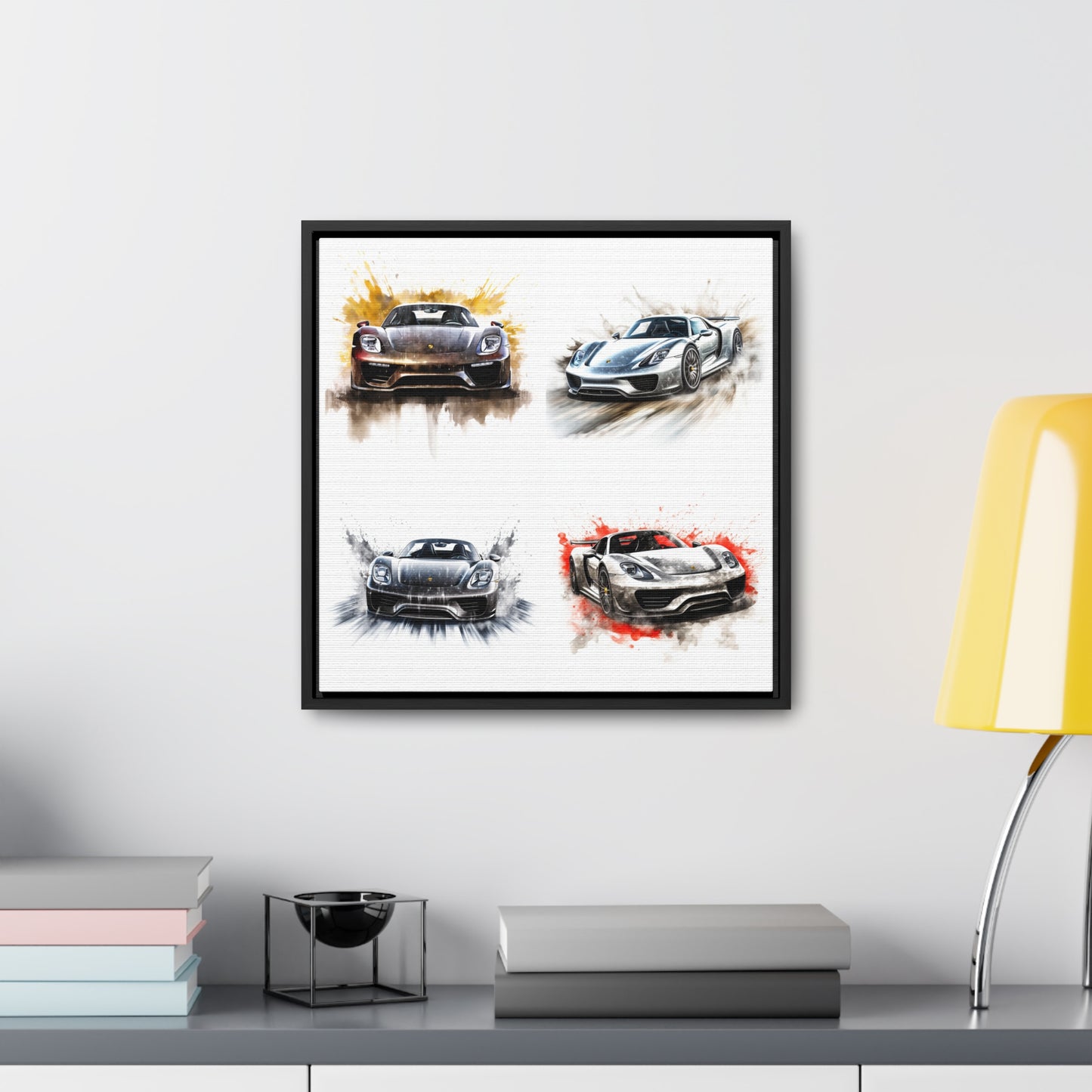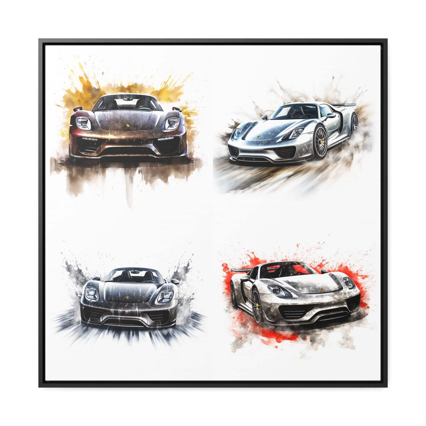 This 918 Spyder is a stunning work of art, printed on a gallery quality canvas wrap with a square canvas frame. The white background provides a perfect backdrop for the car driving quickly with water splashing. This canvas wrap will bring the thrilling energy of the 918 Spyder into your home. #canvas #wrap #art #modern #gallery #luxury #wallart #home #decor #interiordesign #driving