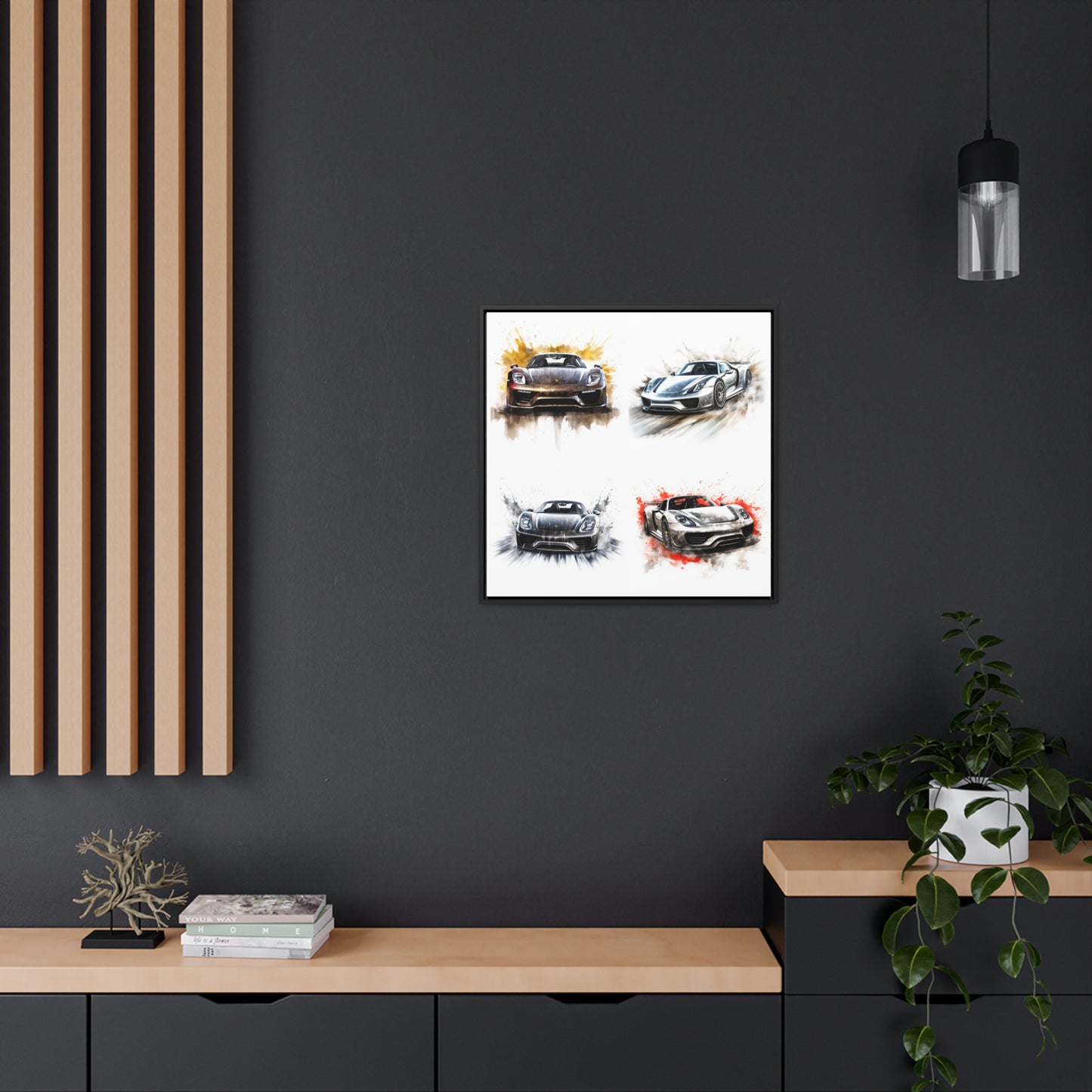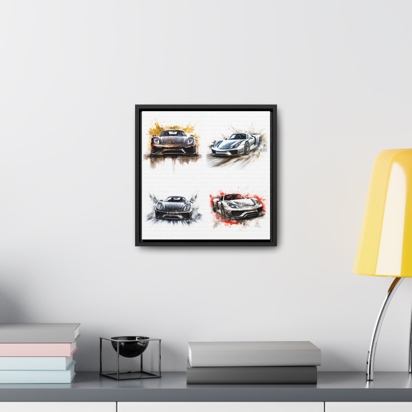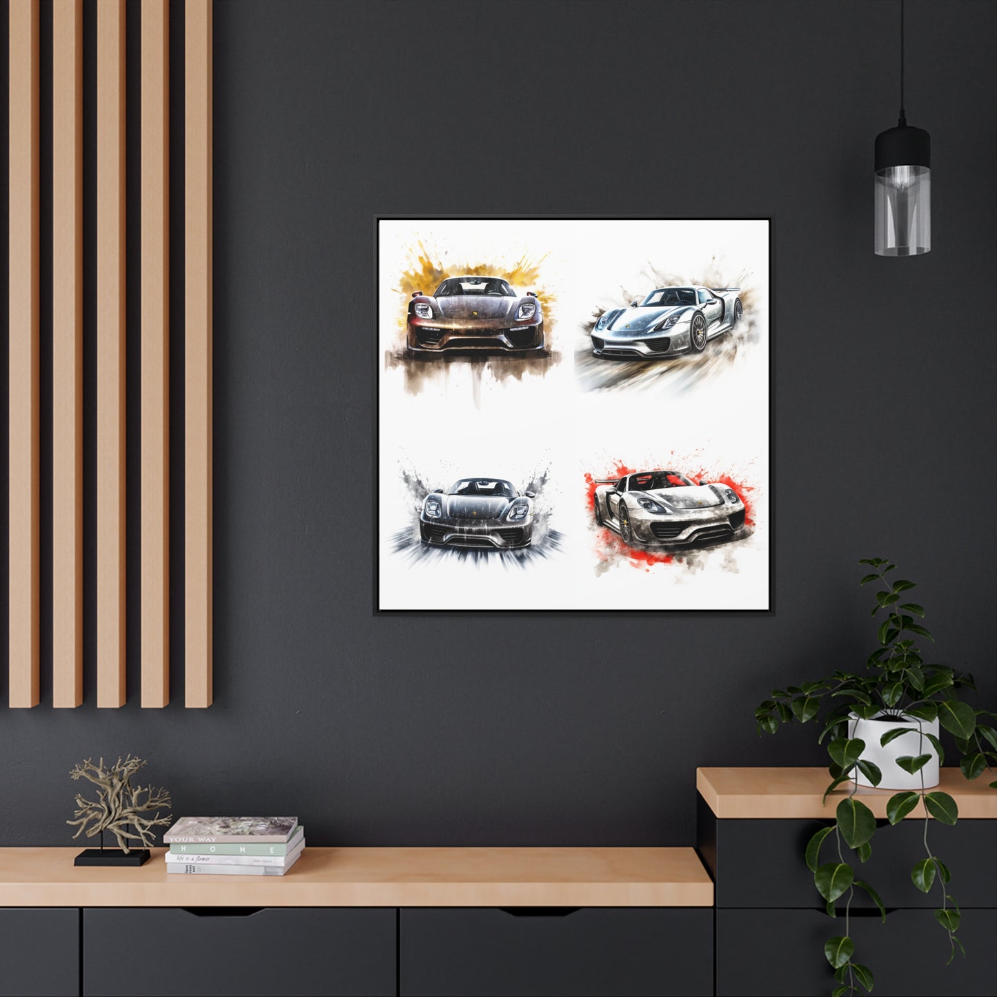 This 918 Spyder is a stunning work of art, printed on a gallery quality canvas wrap with a square canvas frame. The white background provides a perfect backdrop for the car driving quickly with water splashing. This canvas wrap will bring the thrilling energy of the 918 Spyder into your home. #canvas #wrap #art #modern #gallery #luxury #wallart #home #decor #interiordesign #driving