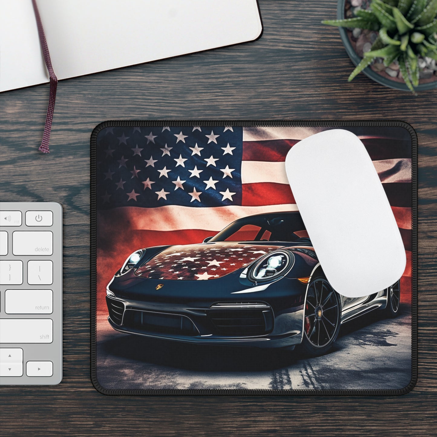 Gaming Mouse Pad Abstract American Flag Background Porsche 2