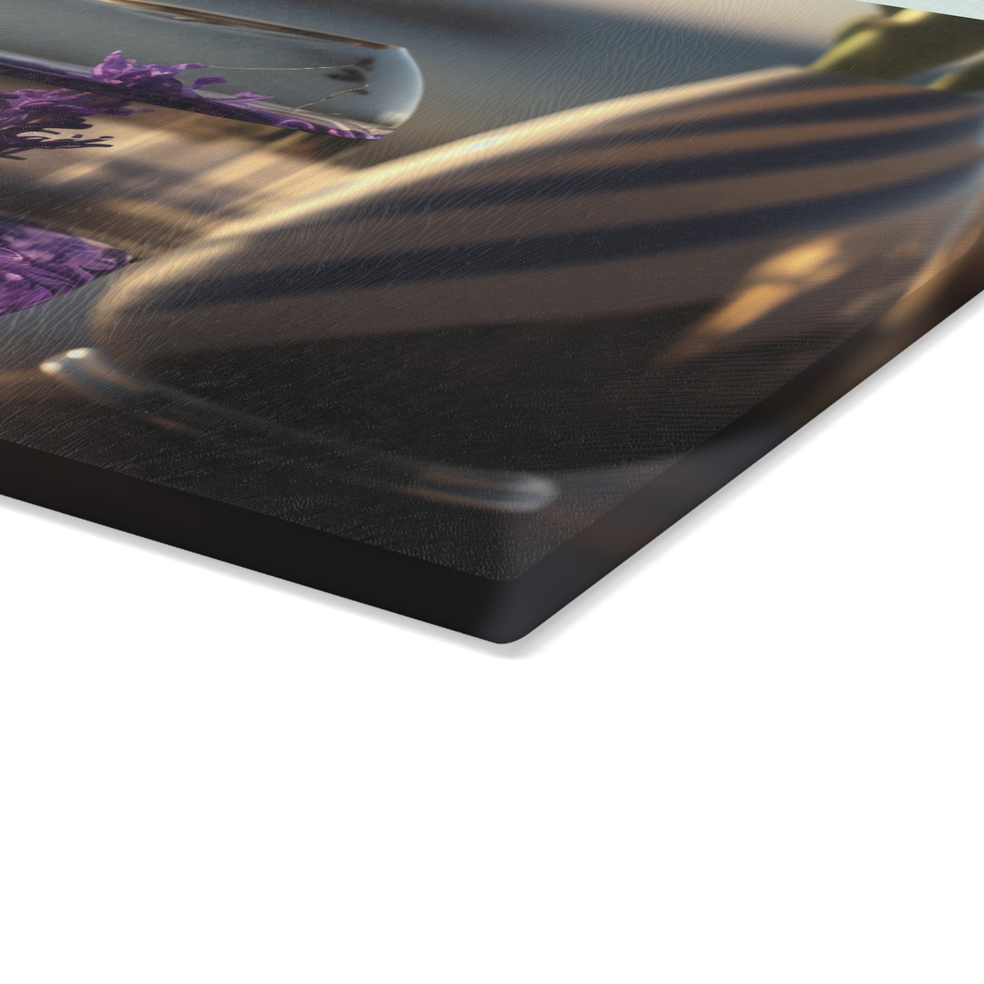 Achieve a rustic and modern look with the Lavender glass cutting board. Crafted of tempered glass this board is not only stylish but also extremely durable for all your cooking needs. Perfect for displaying favorite dishes or cutting ingredients, the board is designed to be beautiful and utilitarian for a never-ending kitchen style. #temperedglass #cookingneeds #lavender #rustic #cuttingboard #durable #kitchenstyle #modernlook #cookingutensils #temperedglassboard #utilitarian