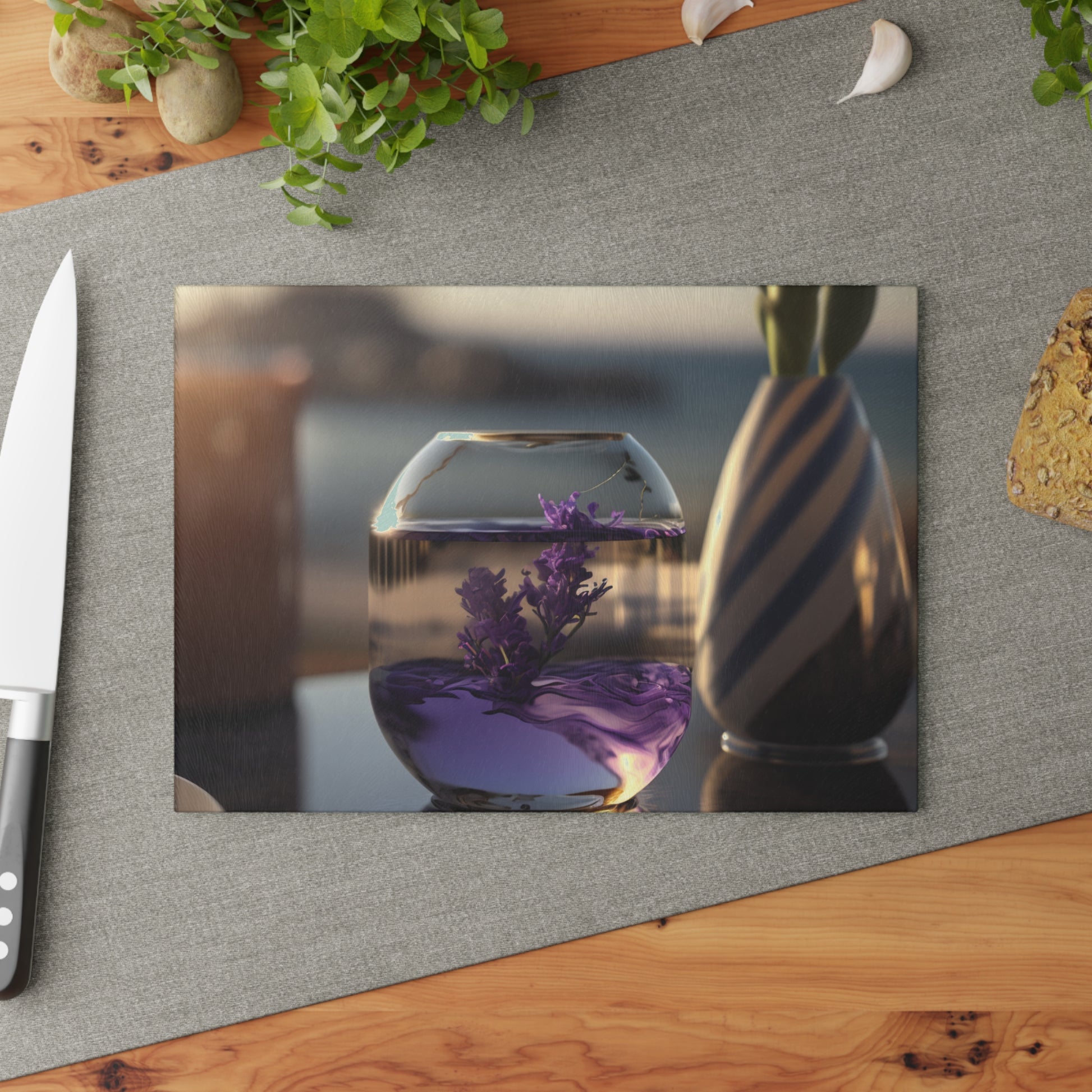 Glass Cutting Board Lavender in a vase 1