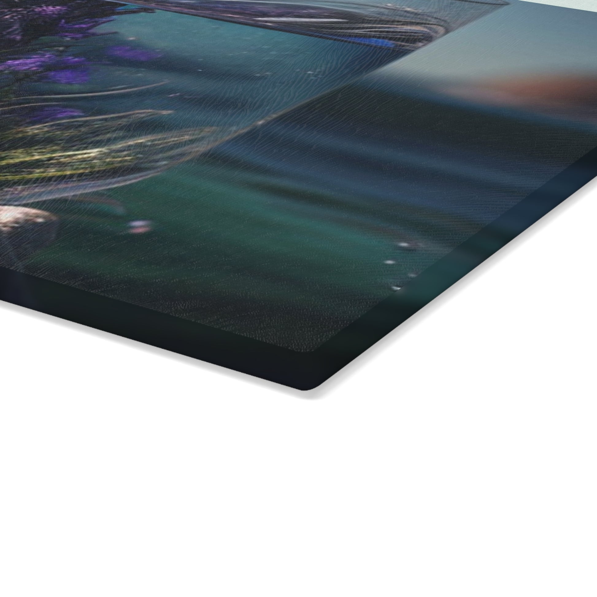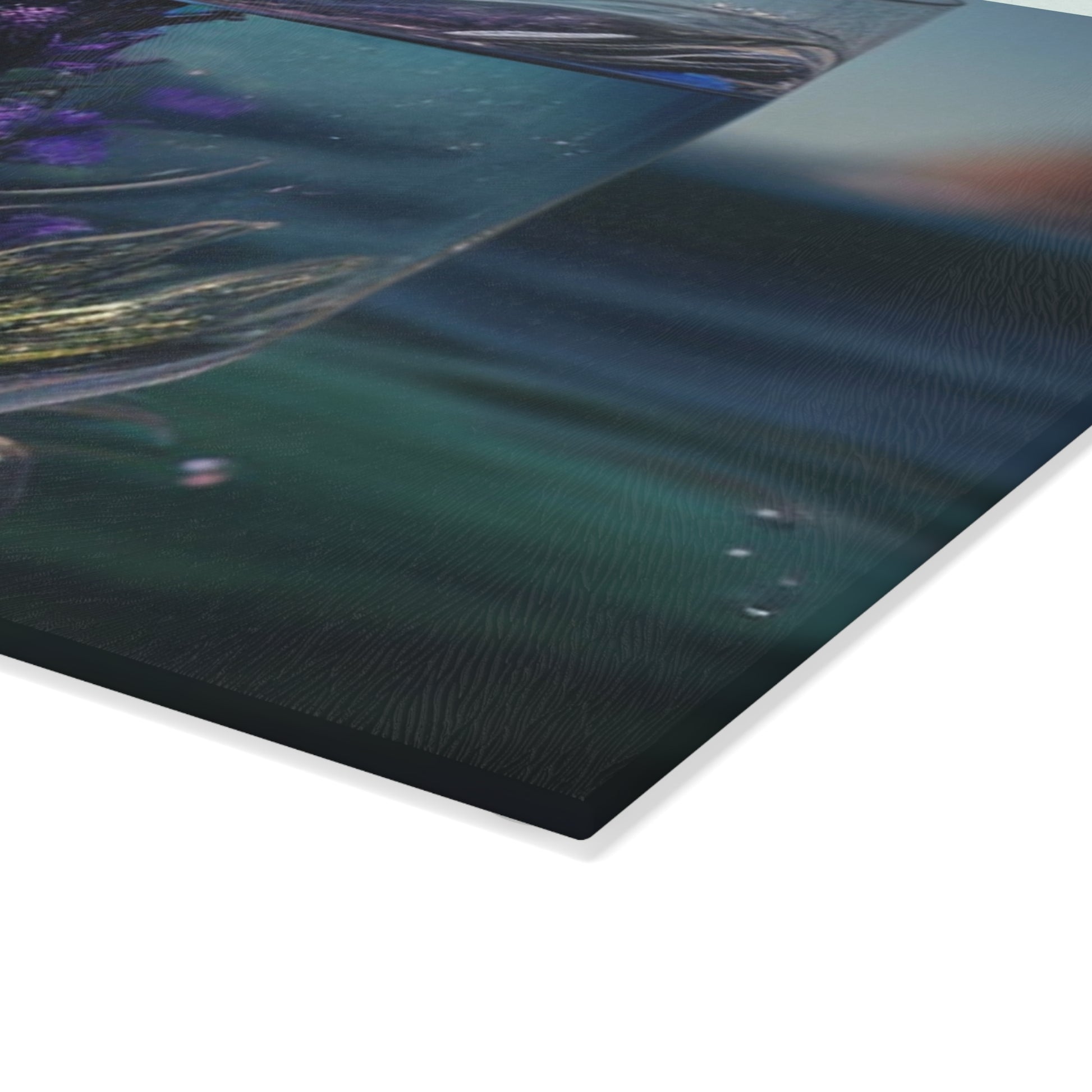 Enjoy preparing your meals with this beautiful Lavender in a Vase 2 Glass Cutting Board. Not only is it stylish, but it provides an extra layer of protection for your knife blades to help keep them sharp and smooth. Plus, it comes with a raised outer edge to catch any messes or liquids you may spill. #splashproof #innovative #durable #lowmaintenance #chefapproved #kitchenfunctional #easyslide #safetyfirst #longlasting #classicallydesigned #designsmart