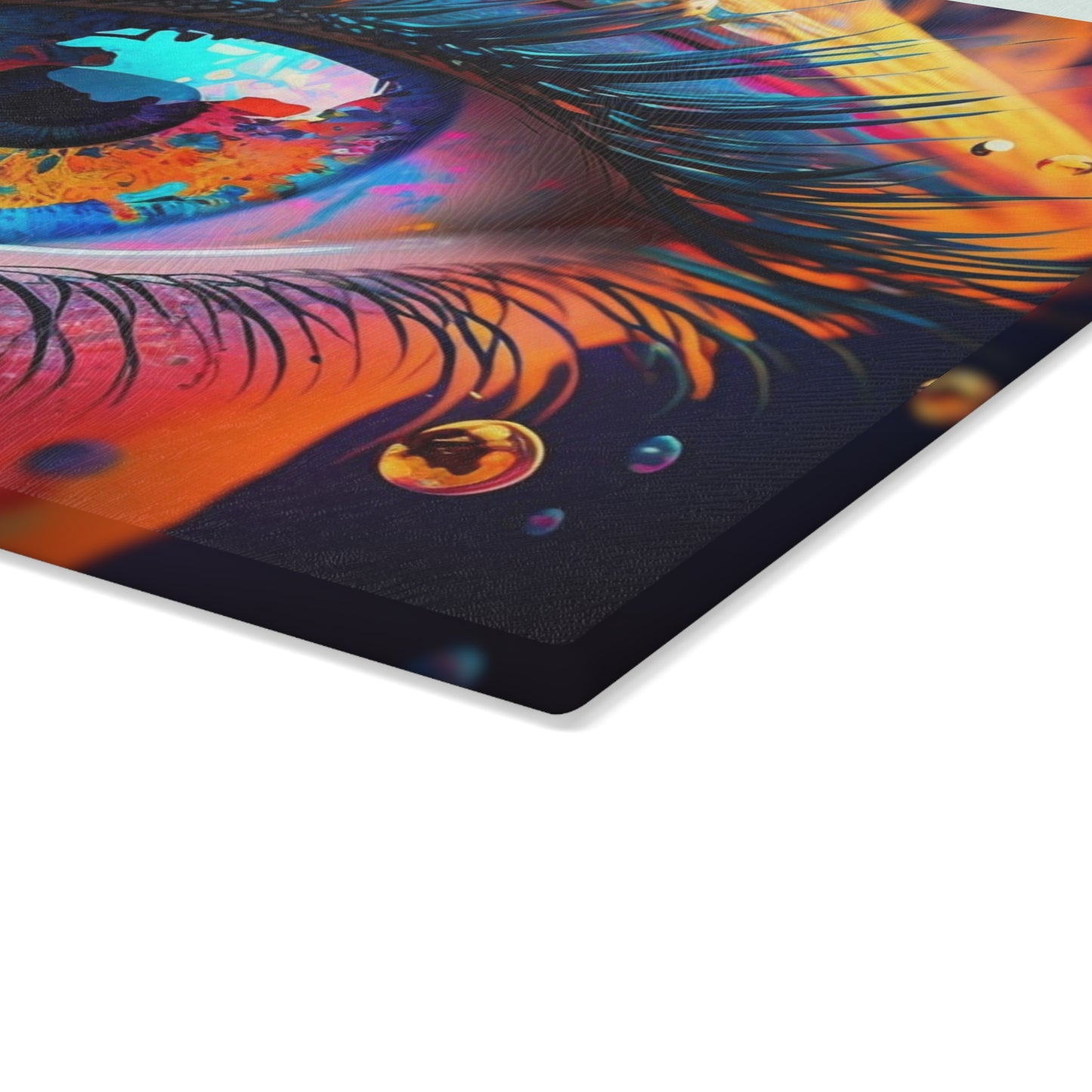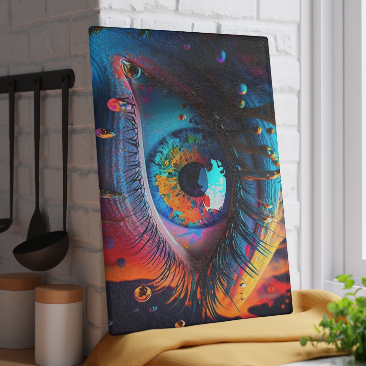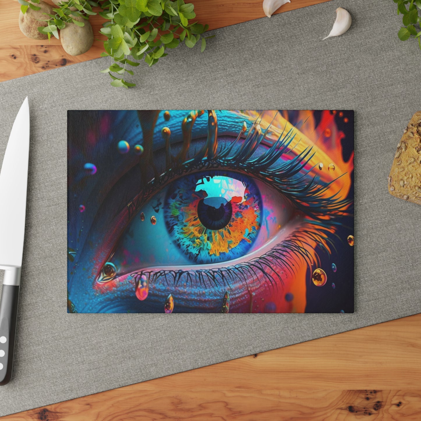 Macro Eye Photo 1 is a beautiful glass cutting board. Its chic, modern design adds style to any kitchen. Unlike plastic cutting boards, the glass is hygienic and odor-resistant. Its non-slip base provides a sturdy surface to cut and form food. #cuttingboard #glasscuttingboard #kitchenstyle #hygienic #photo1 #odorresistant #macroeye #cookingessentials #cookingsurface #nonslip #modernkitchen