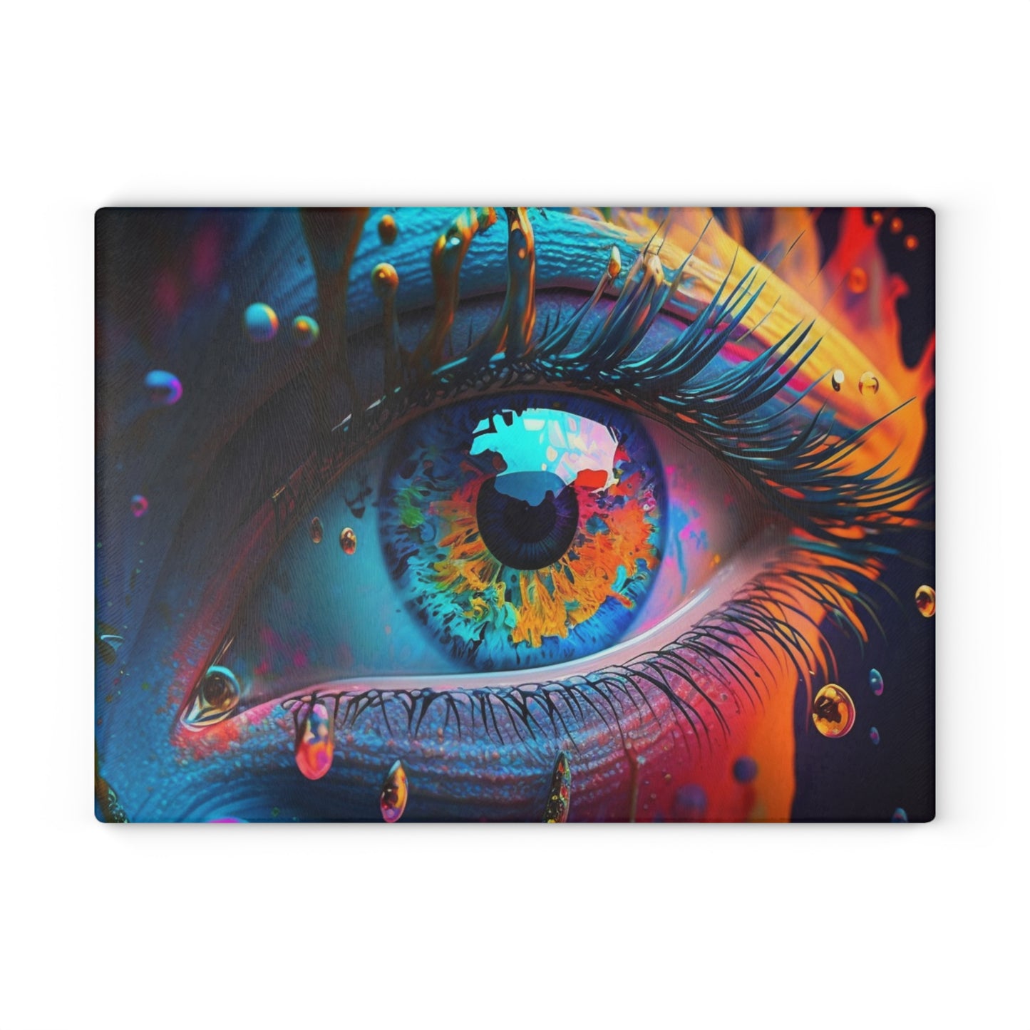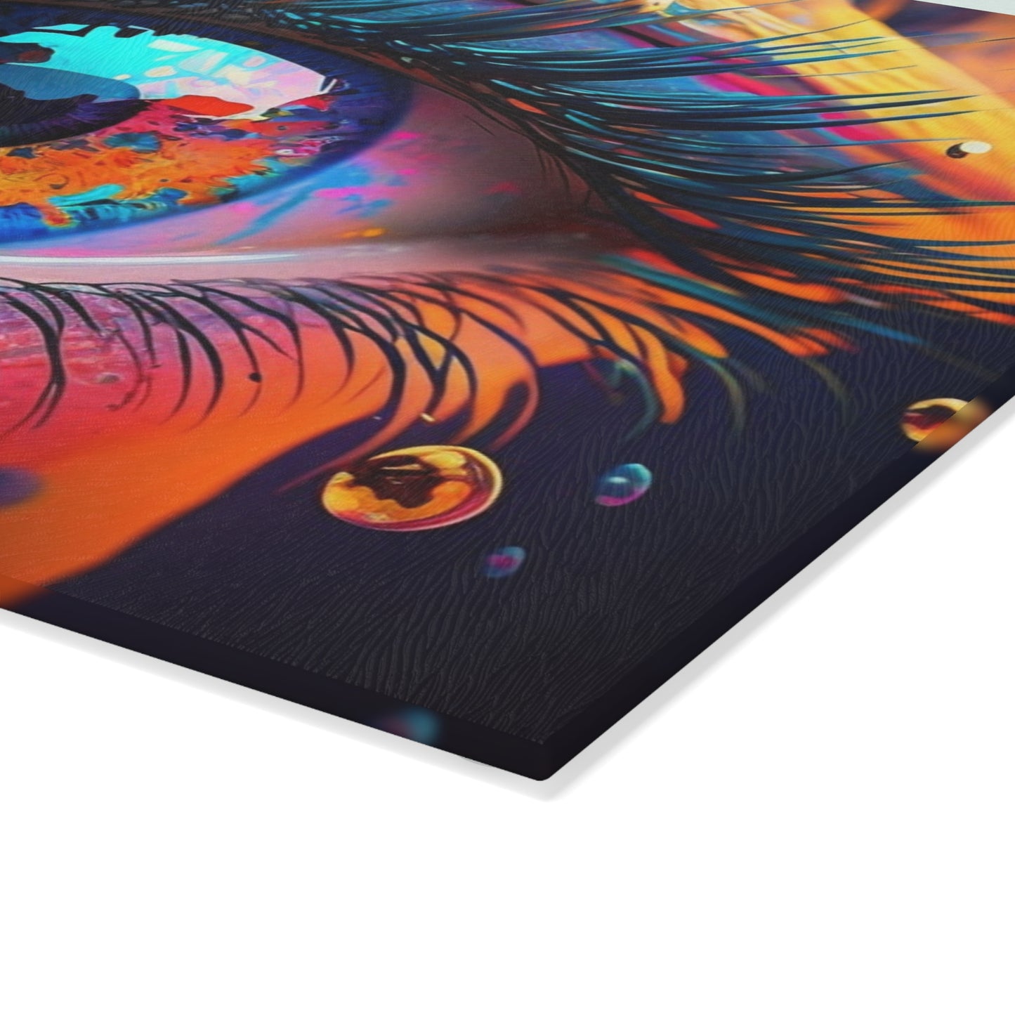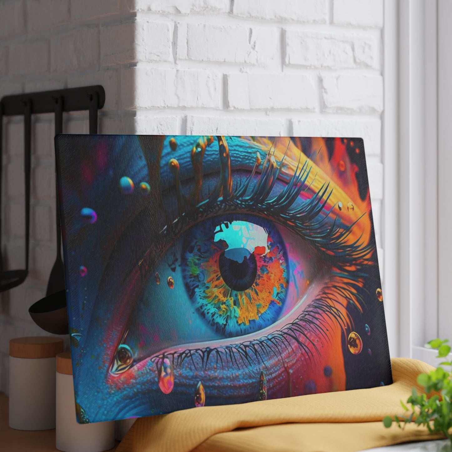Macro Eye Photo 1 is a beautiful glass cutting board. Its chic, modern design adds style to any kitchen. Unlike plastic cutting boards, the glass is hygienic and odor-resistant. Its non-slip base provides a sturdy surface to cut and form food. #cuttingboard #glasscuttingboard #kitchenstyle #hygienic #photo1 #odorresistant #macroeye #cookingessentials #cookingsurface #nonslip #modernkitchen