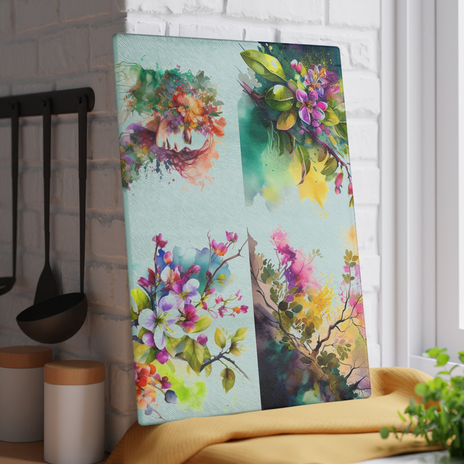 Glass Cutting Board Mother Nature Bright Spring Colors Realistic Watercolor 5