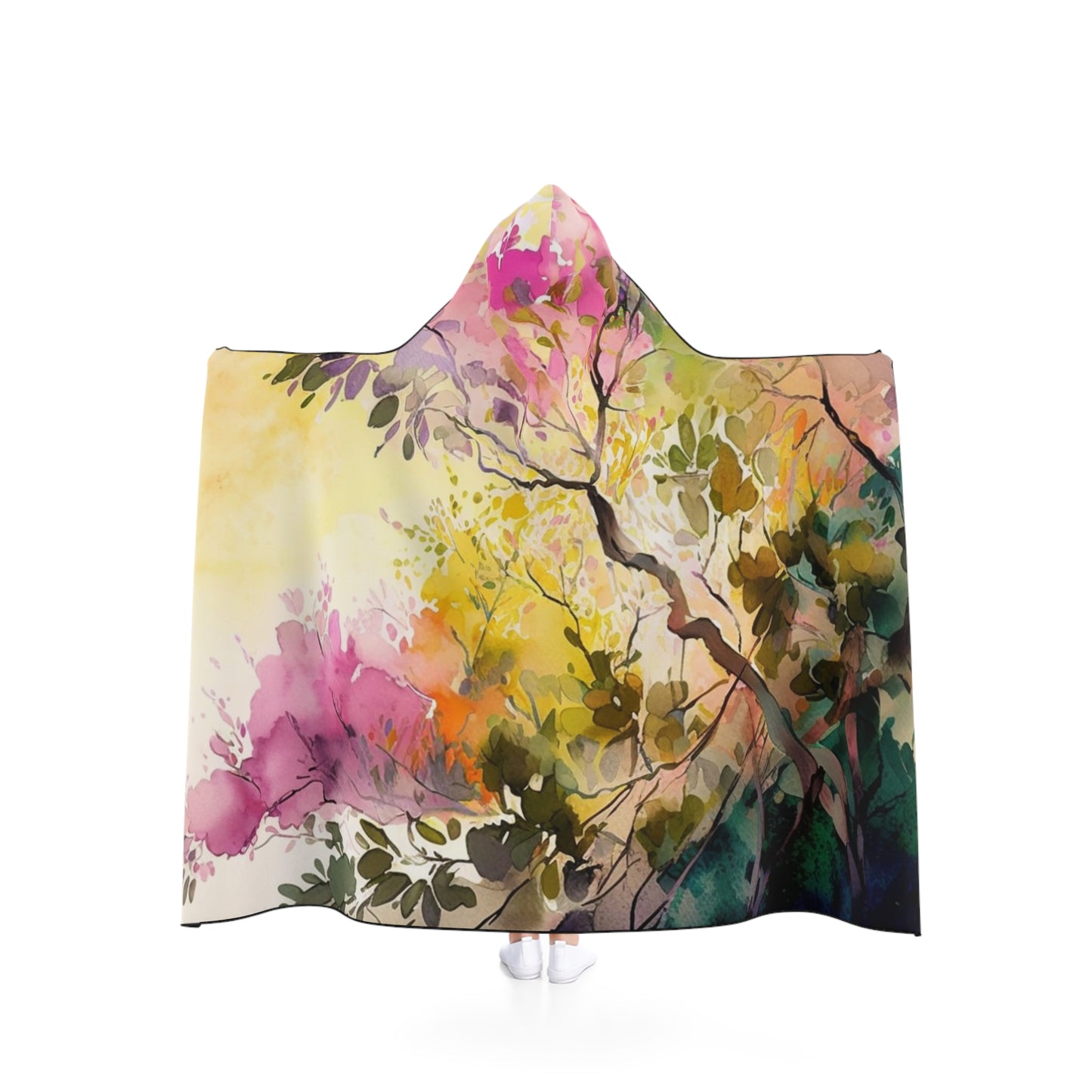 Hooded Blanket Mother Nature Bright Spring Colors Realistic Watercolor 2