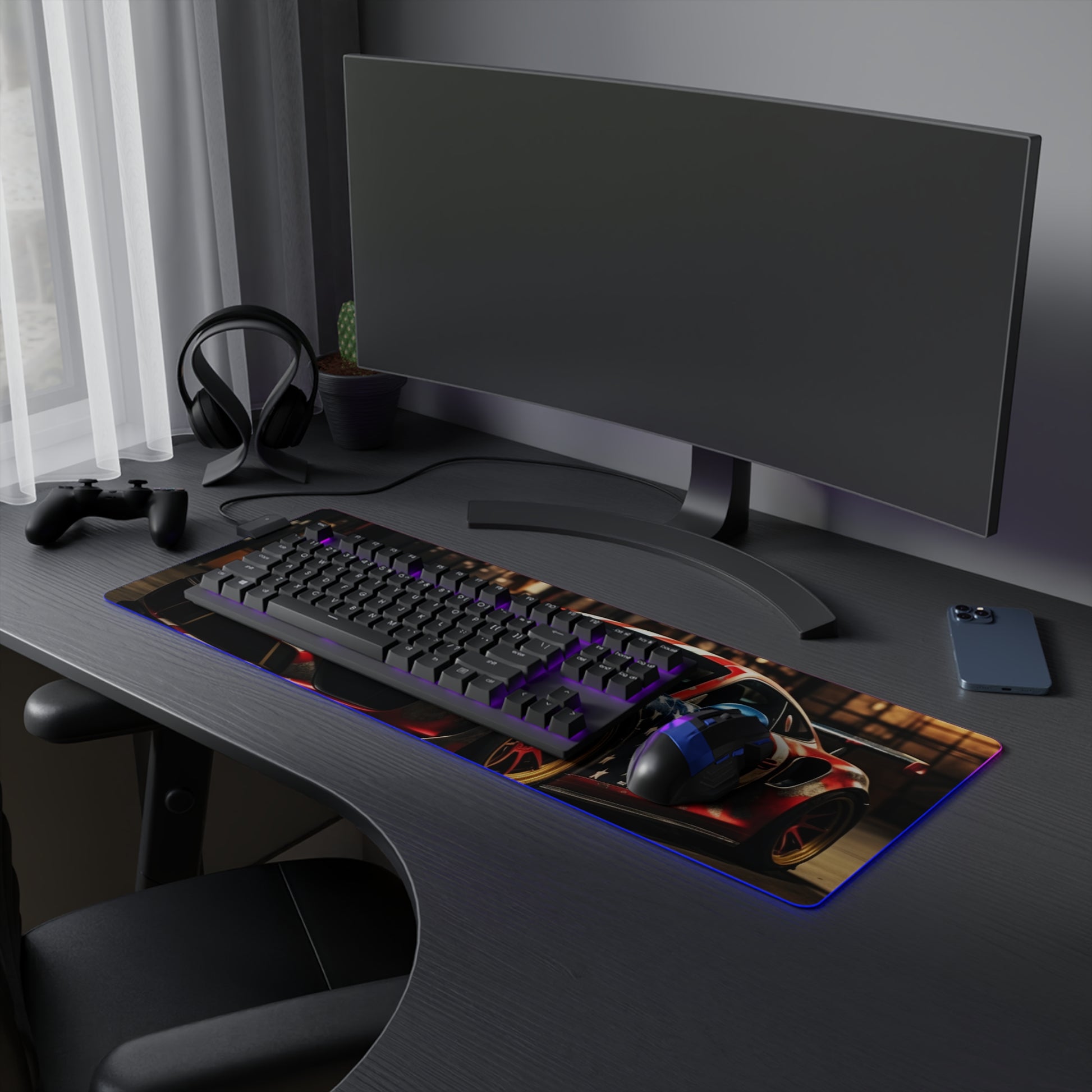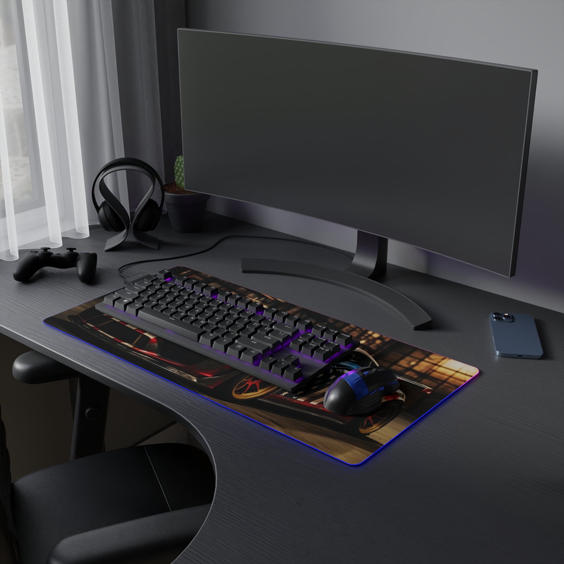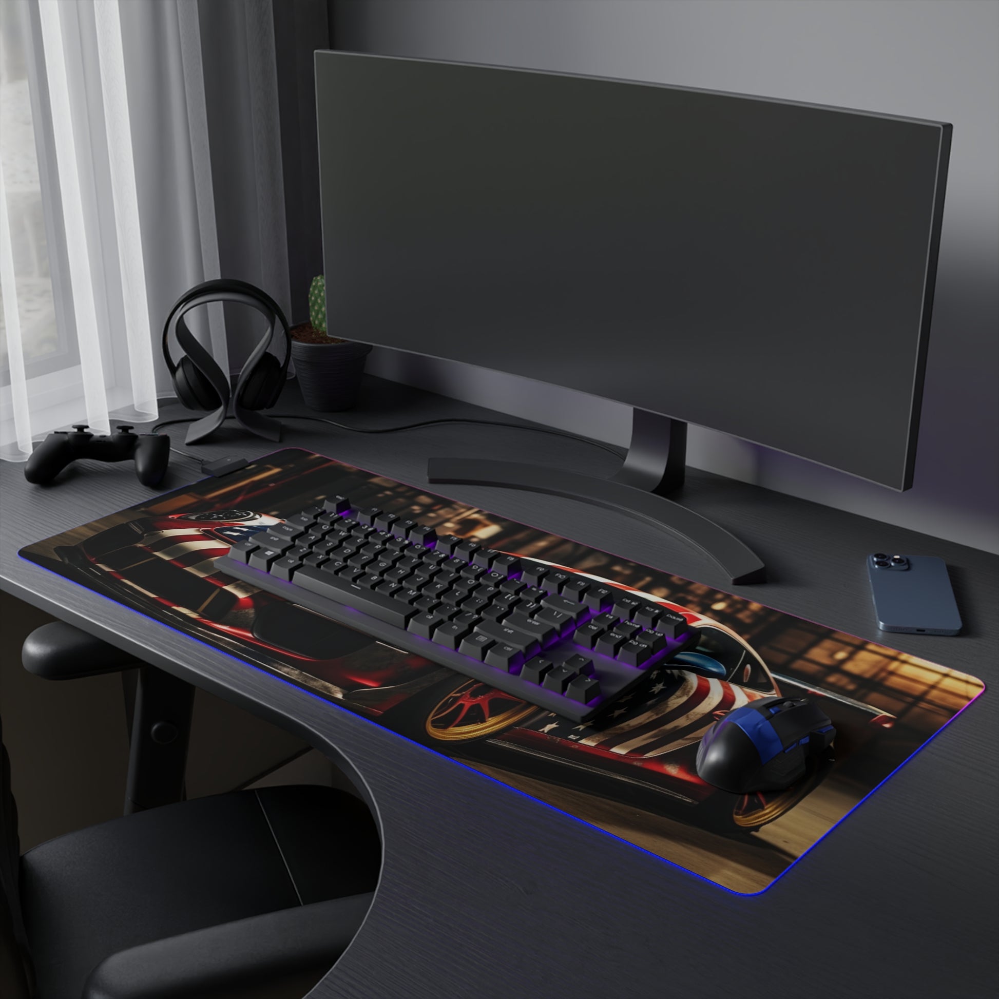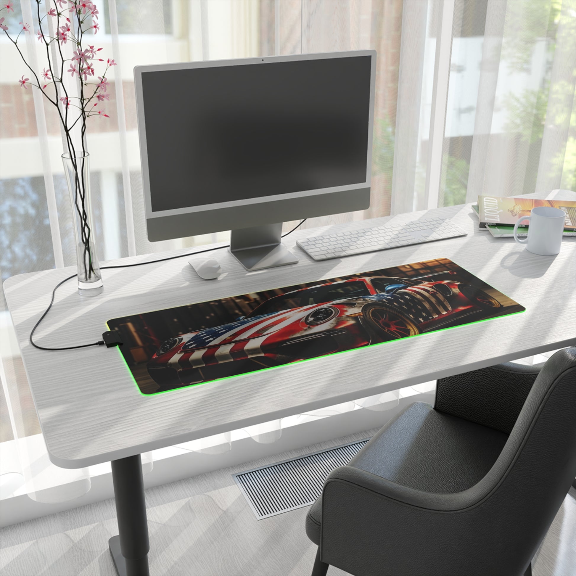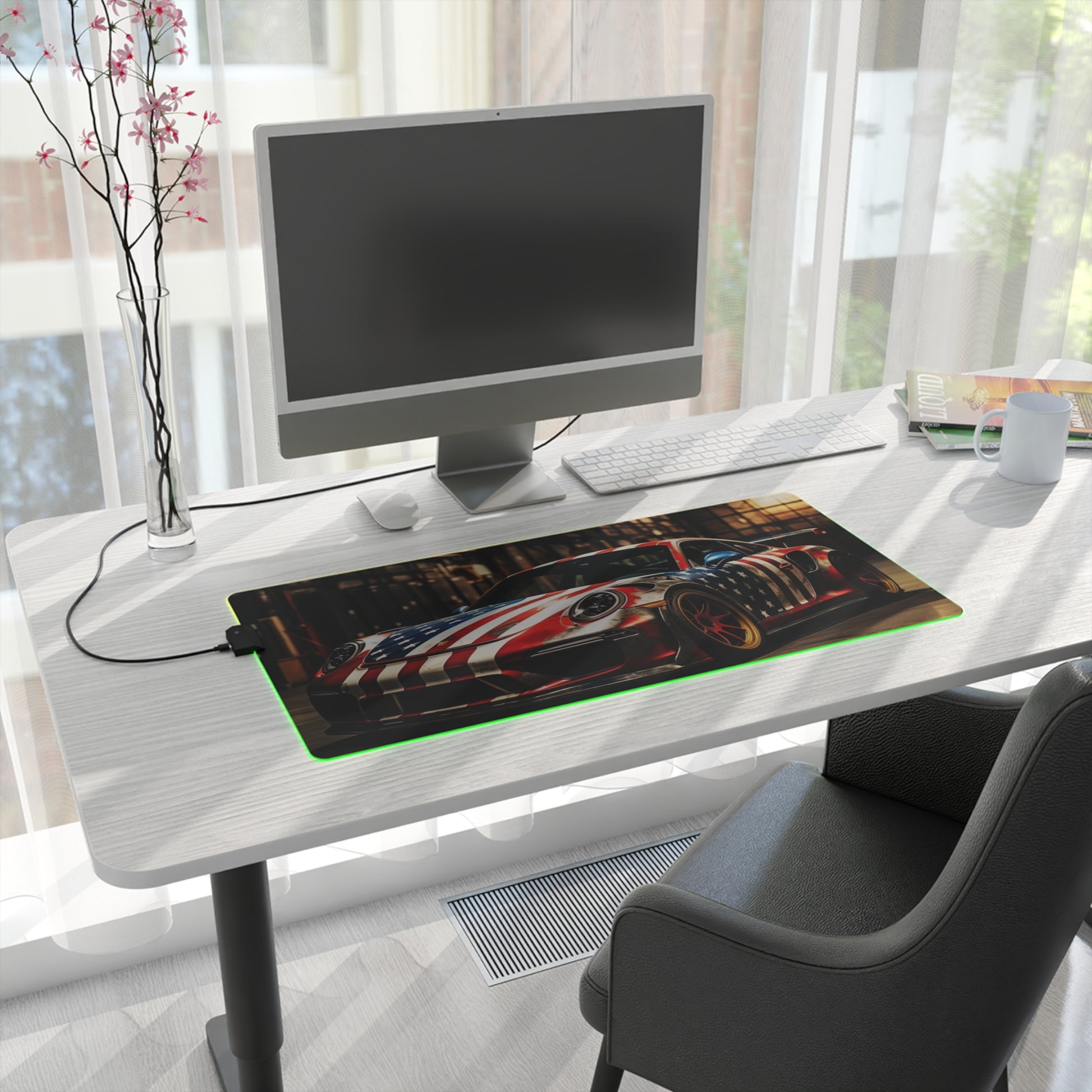 LED Gaming Mouse Pad American Flag Porsche 4
