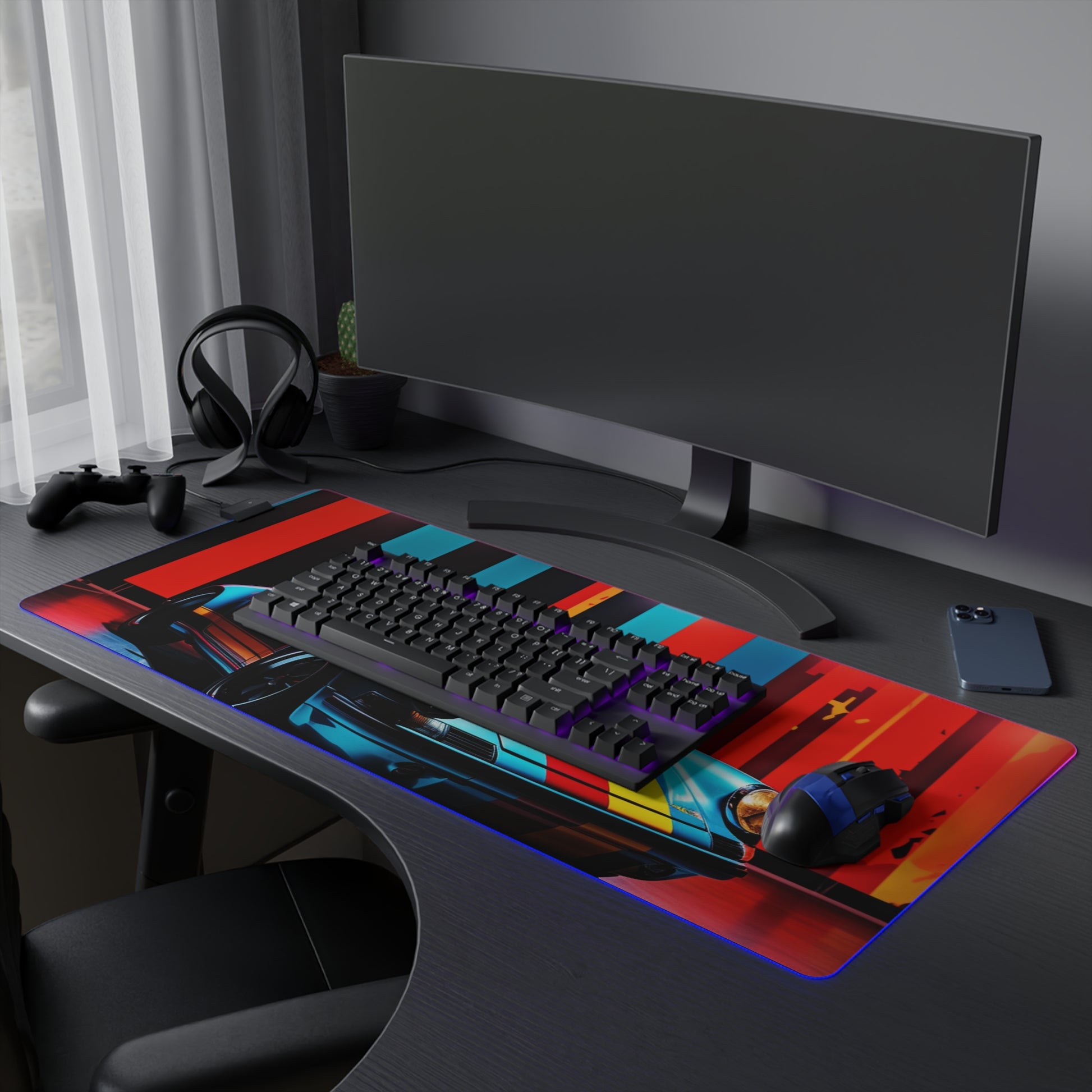 This LED Gaming Mouse Pad shines bright like a star with it's American Flag Porsche 3 style that illuminates your gaming experience. Its large surface area and soft cushion ensures precision and comfort for hours of epic gaming. Never worry about your mouse not tracking correctly with this state of the art gaming pad. #Gamers #LED #Lighting #AmericanFlag #Porsche #GameOn #LightUp #Macro #High quality #Racing #LEDPad