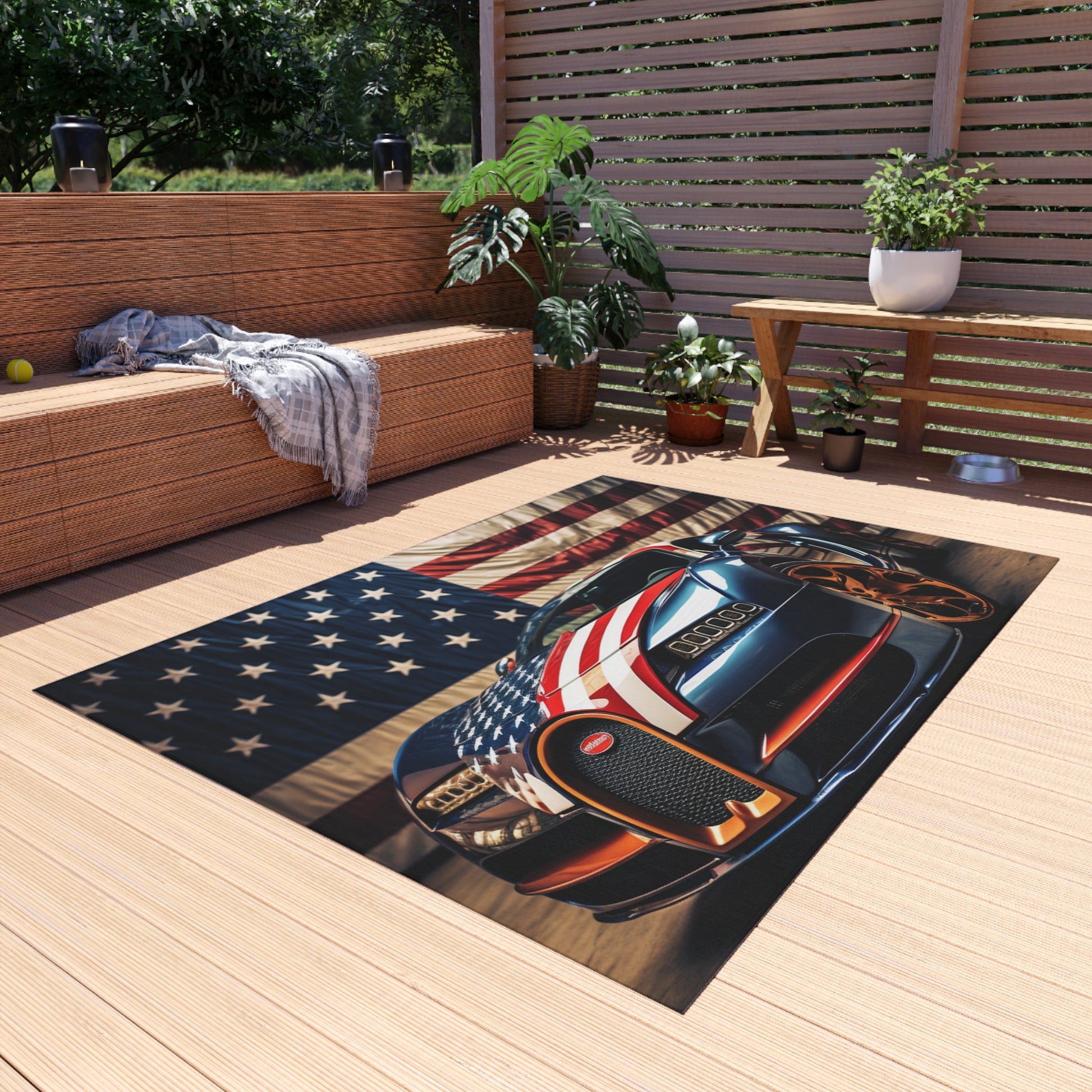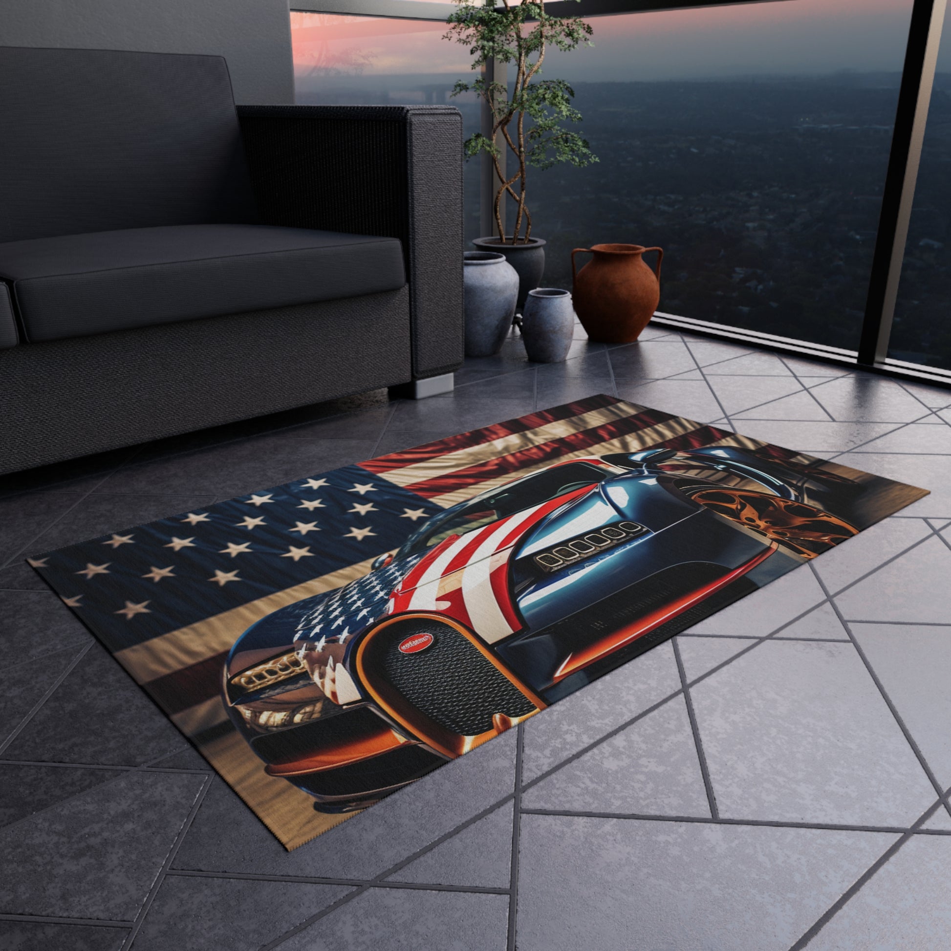 This Bugatti Flag American 4 Outdoor Rug is sure to make an eye-catching addition to your outdoor space. Made from durable but lightweight polyester, this soft and stylish rug is colorfast and weather resistant so it won’t fade in the sun. It even features an easy to clean surface, so you don’t have to worry about spills and stains. #PatioStyle #OutdoorDecor #Bugatti #FlagAmerican4 #OutdoorRug #Aesthetic #WeatherResistant #Colorfast #Polyester #Durable #Lightweight #EasyToClean