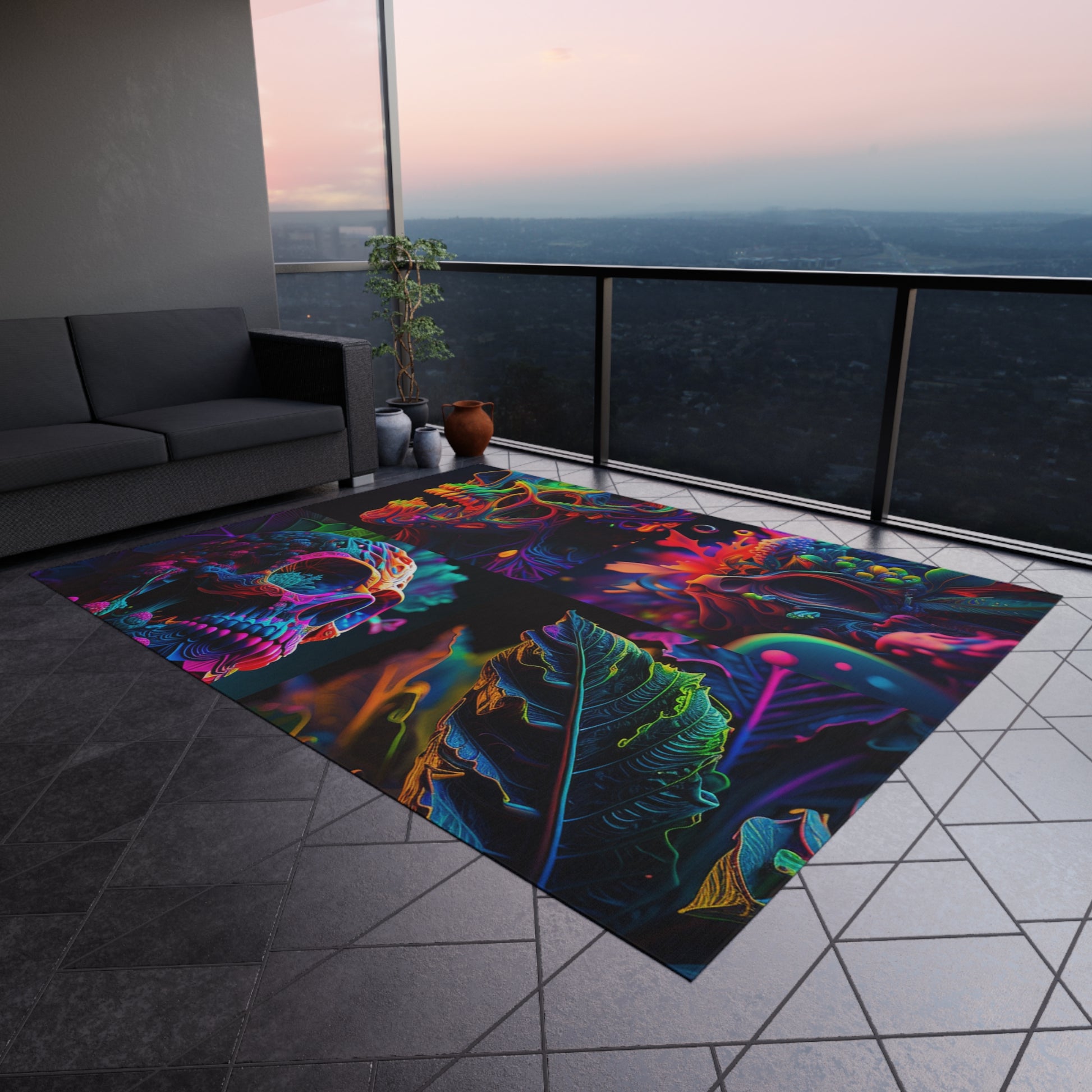 Outdoor Rug Florescent Skull Death 5
