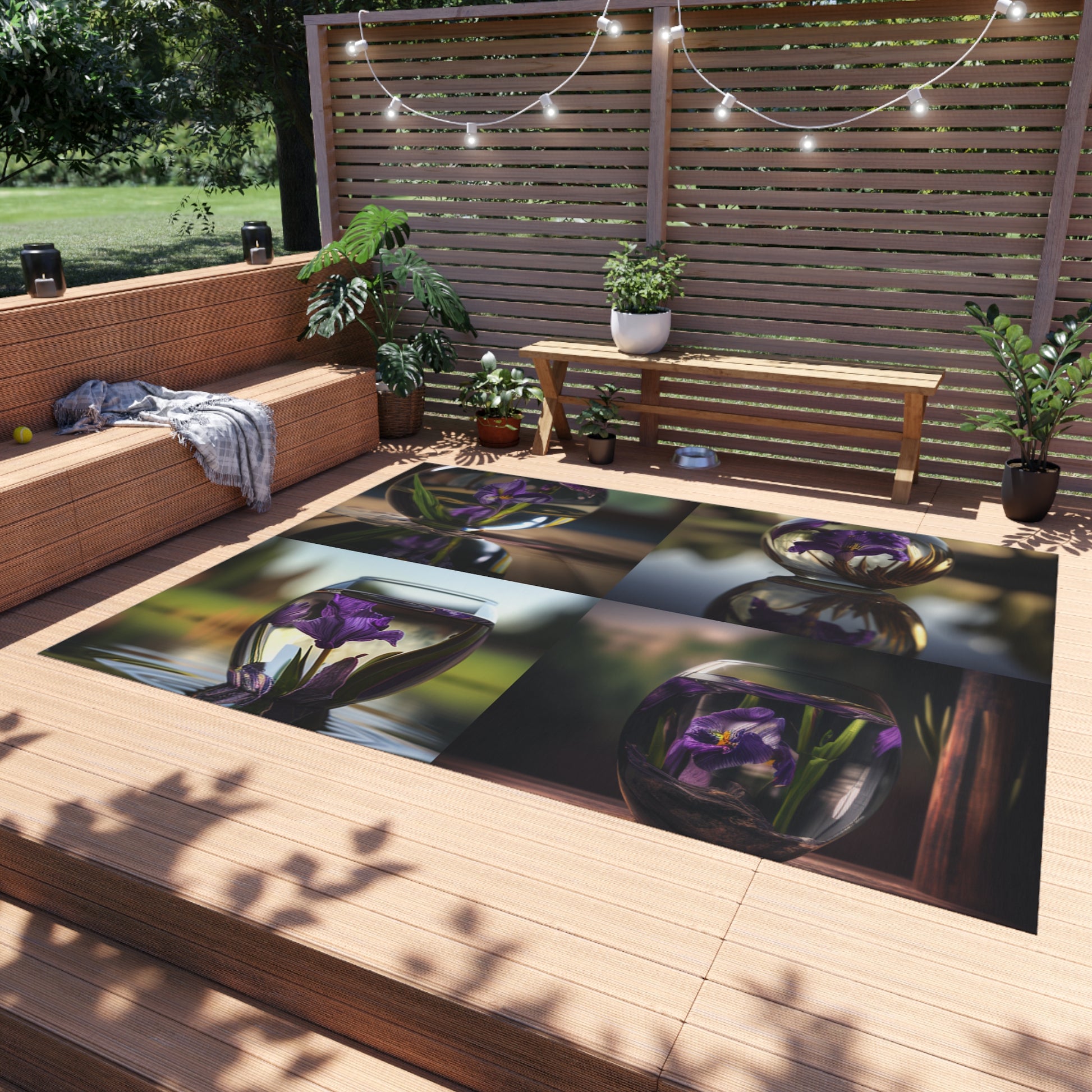 This beautiful outdoor rug features a stunning embroidery of a vibrant Purple Iris in a vase. It's 5' in diameter and made of durable polyester and polypropylene. Easy to clean and resistant the sun's UV rays, this rug will be the perfect compliment to your outdoor decor. #shopyourstyle #outdoorrug #outdoordecor #backyardstyle #patiofurniture #gardenstyle #outdoorstyle #backyarddecor #sunresistant #purpleiris #outdooraccessories #durable