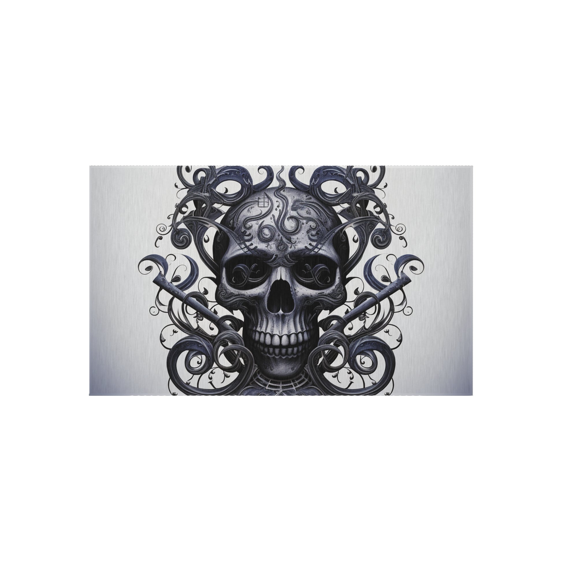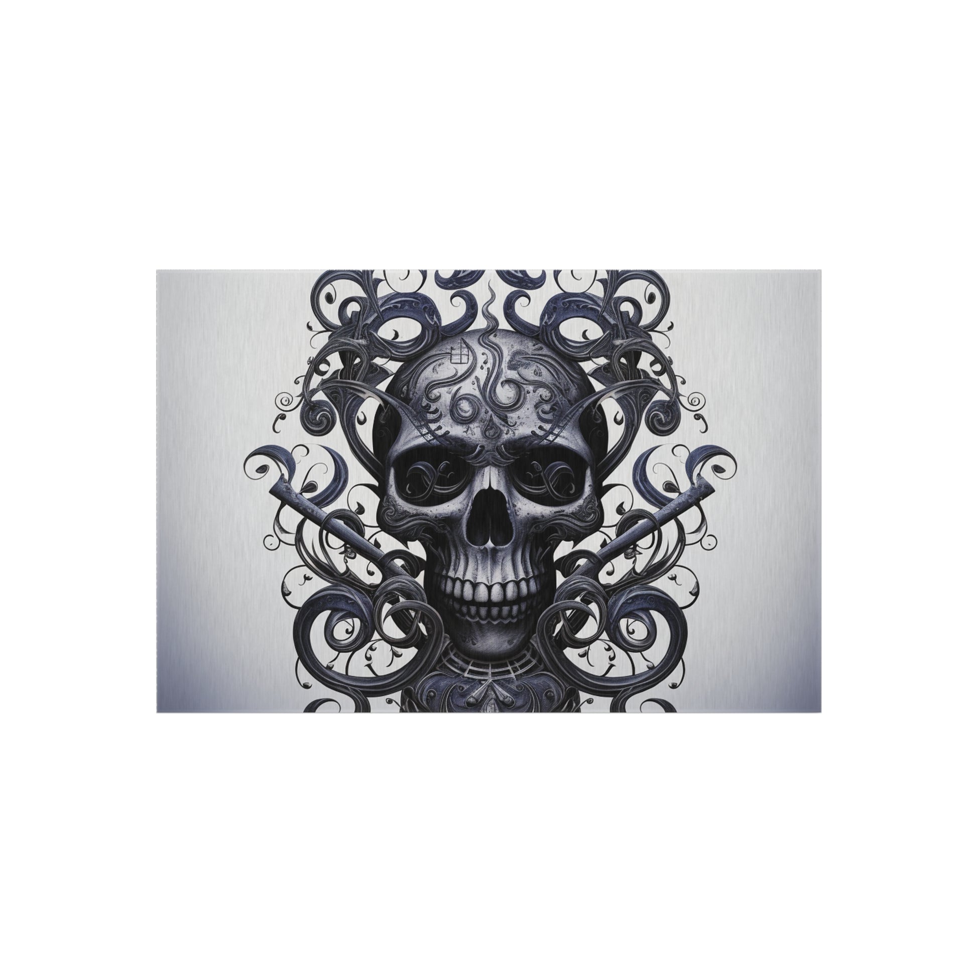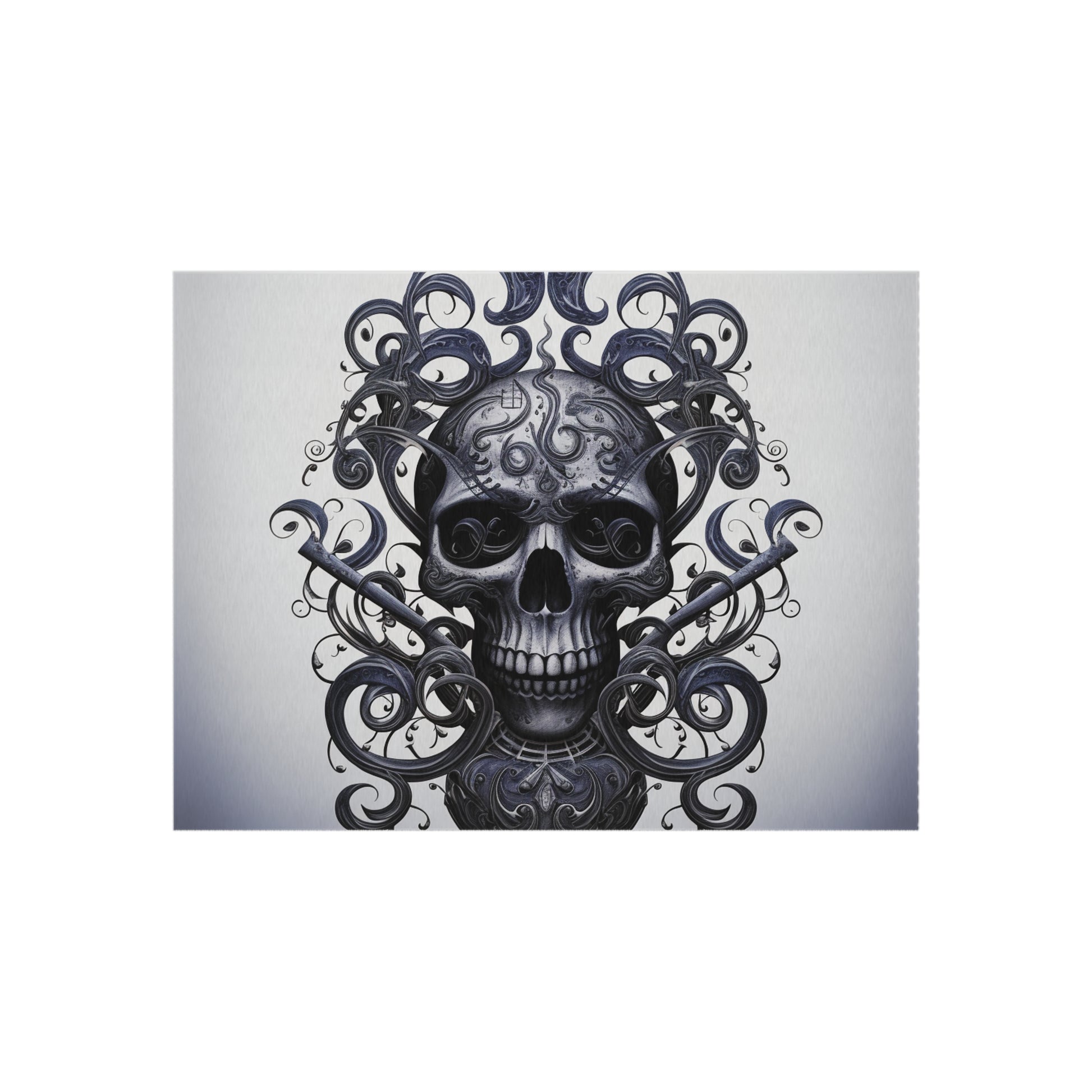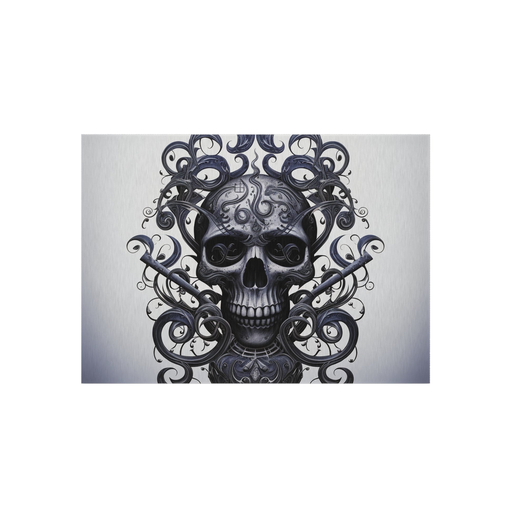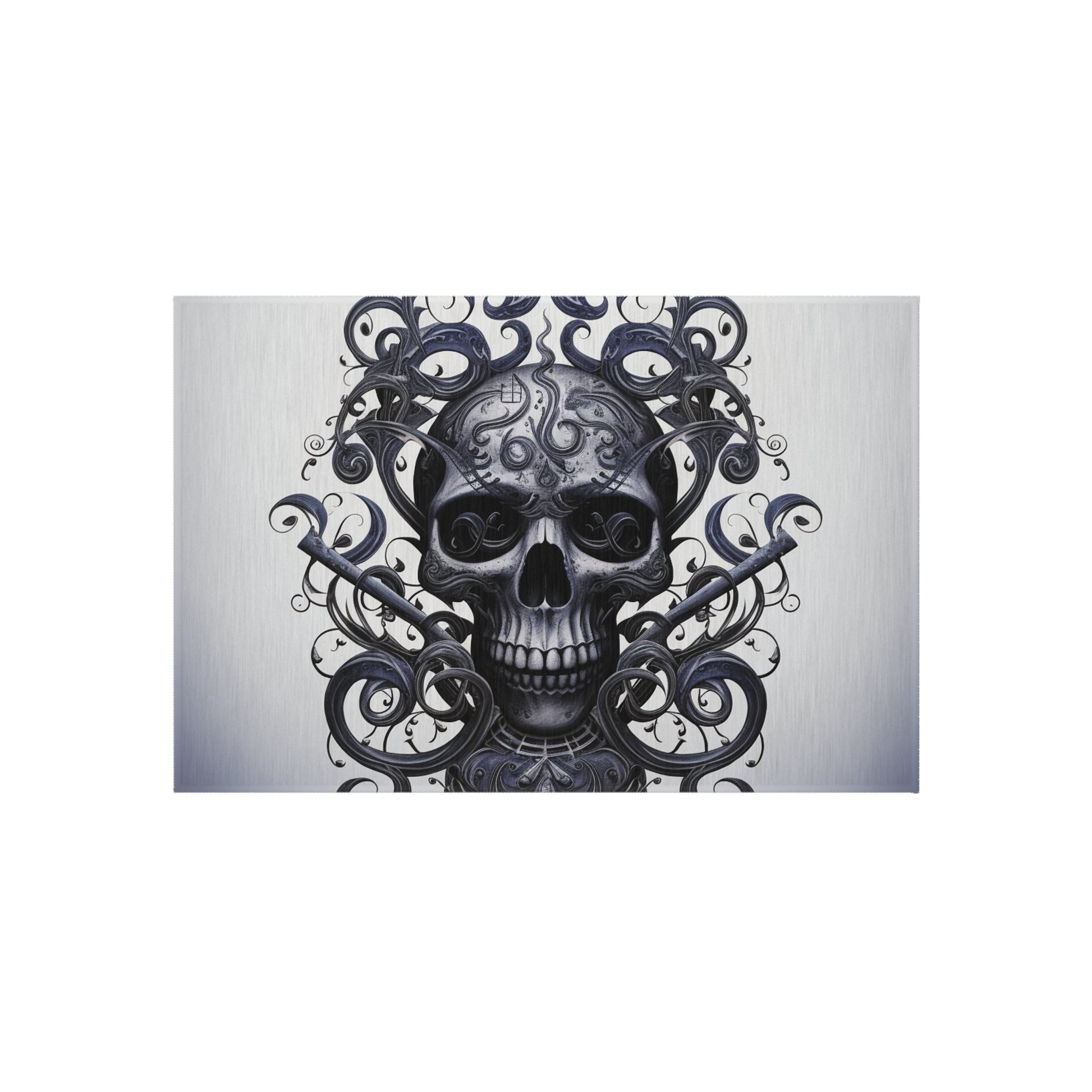 This fun but stylish outdoor rug is perfect for any outdoor area. The Skull Treble Clef 1 features a black and white pattern on the exterior that is eye-catching and edgy. The quality materials and construction make this rug weather resistant and durable. Best of all, the easy-to-clean design makes it perfect for busy summer days. Add a cool music-inspired touch to your patio, deck, or backyard! #outdoorrug #rugged #skull #trebleclef #blackandwhite #outdoordesign #edgystyle #durable #weatherresistant #funandstylish #easytoclean #busysummerdays