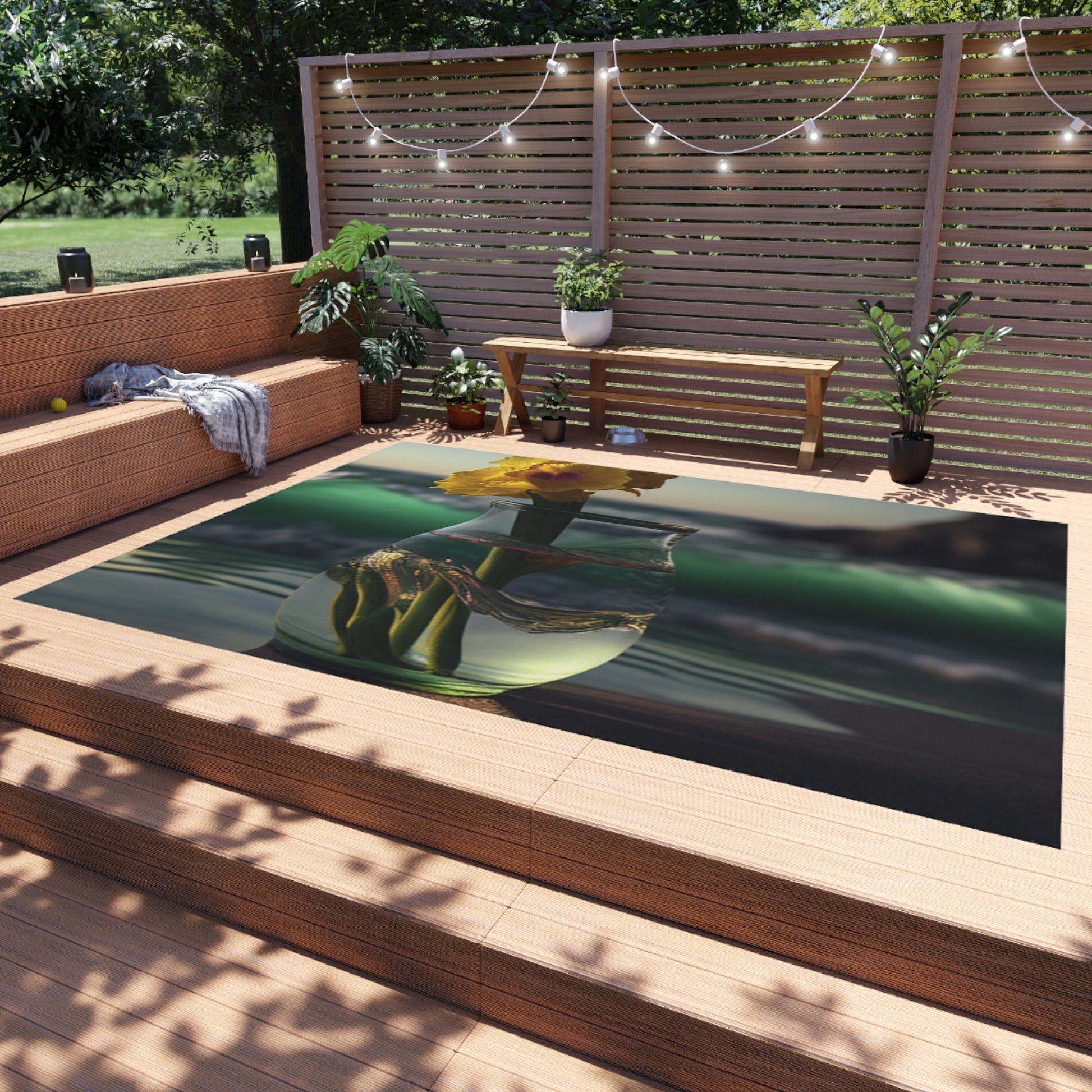 This cheerful Yellow Gladiolus Glass outdoor rug is designed to bring a warm, inviting atmosphere outdoors. Its fabric is made with high-grade polyester for a perfect combination of comfort and durability. It is reversible, fade-resistant and stain-resistant. Its elegant, plush texture enriches the outdoor experience. #outdoorstyle #yellowgladiolusglass #outdoordecor #outdoorrug #outdoorliving #gardendecor #homedecor #durablefabric #stainresistant #faderesistant #reversible