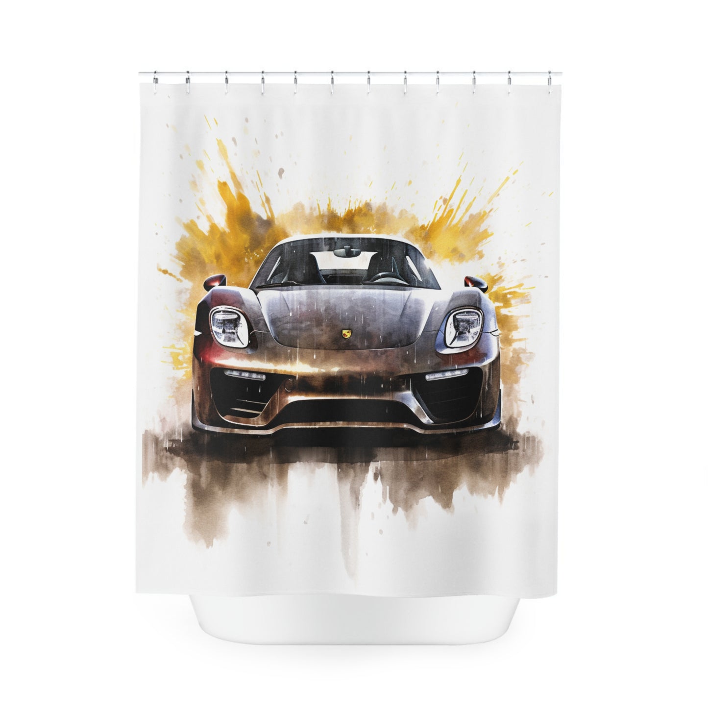 A luxurious experience awaits with the 918 Spyder White Shower Curtain. With a background featuring a race car cruising fast, you can transport yourself to the racetrack in luxury with the waterproof splashing effect. Enjoy the ease and comfort of 100% polyester, complete with 12 reinforced grommets for strength and durability. #luxury #bathroomdesign #918spyder #polyestershower #showercurtain #racing #waterproof #comfort #style #reinforcedgrommets #durability #luxurious