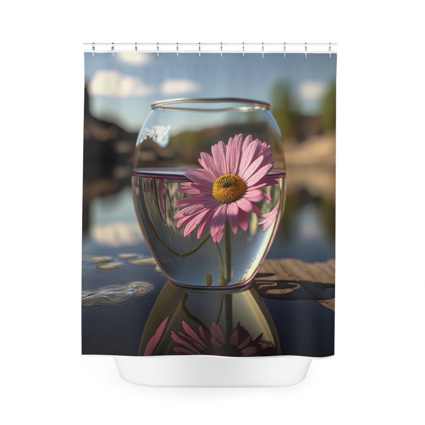 Polyester Shower Curtain Daisy in a vase 1