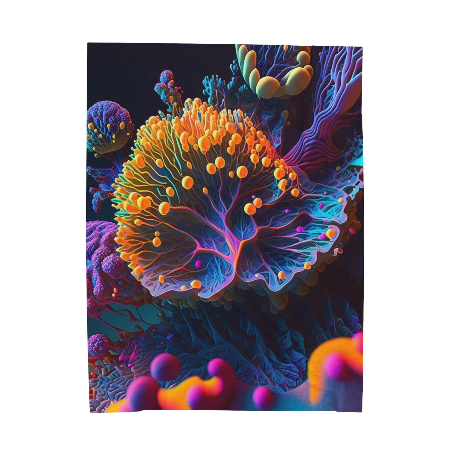 This luxuriously soft Velveteen Plush Blanket features an intricately detailed Ocean Life Macro design. The bold colors draw you into a magical oceanic world. Enjoy pure relaxation while wrapped up in this velveteen blanket. #plushblanket #vibranthues #velvetteen #comfort #oceanview #homecomfort #beddingessential #snugglyblanket #blanketseason #oceanlife #macrodesign